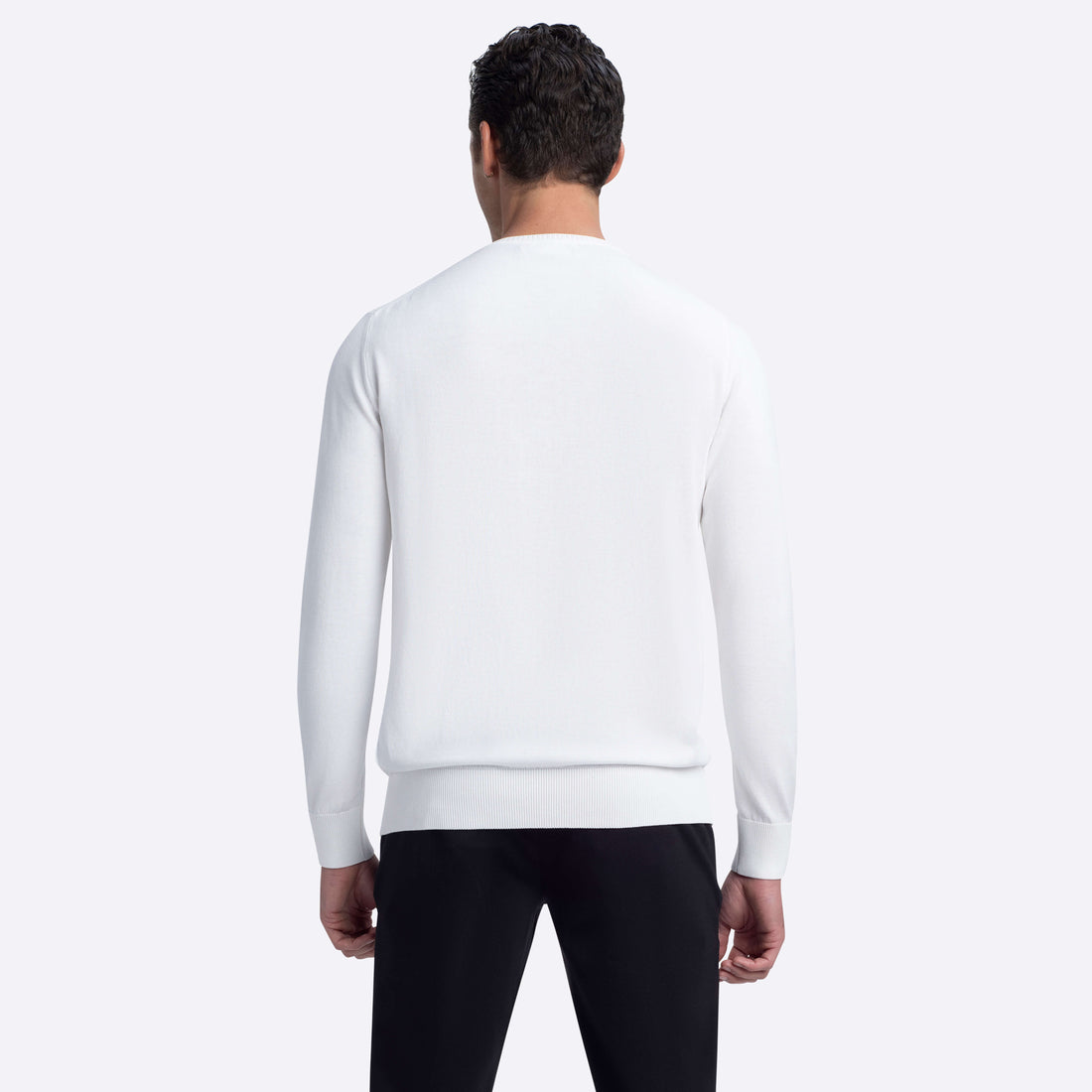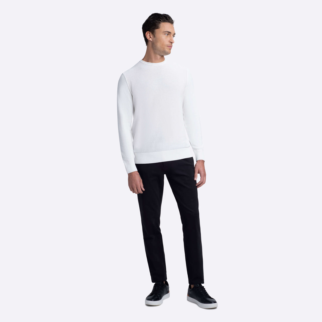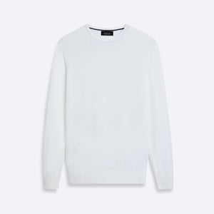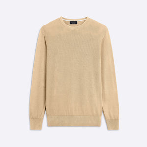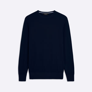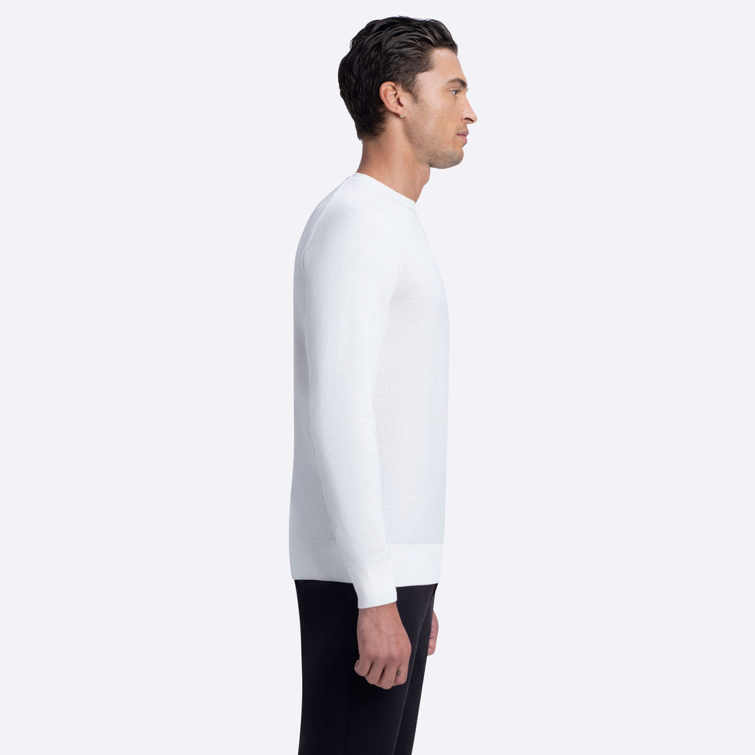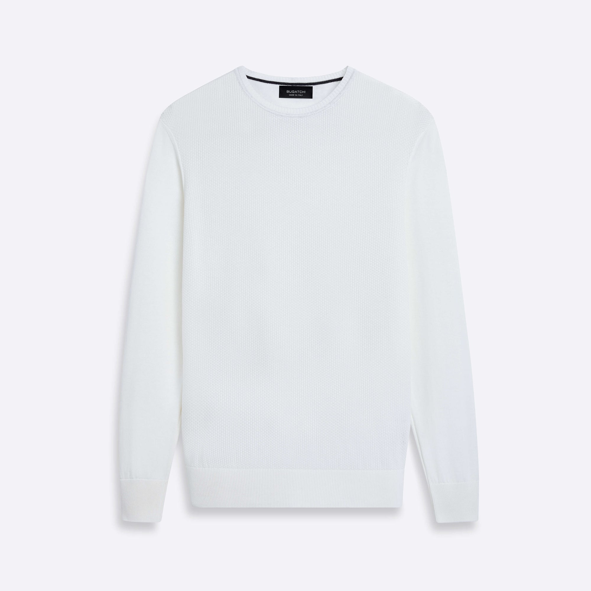 Bird's Eye knit long sleeve crew neck sweater in 100% cotton with solid rib knit cuffs and waistband. Made in Italy.