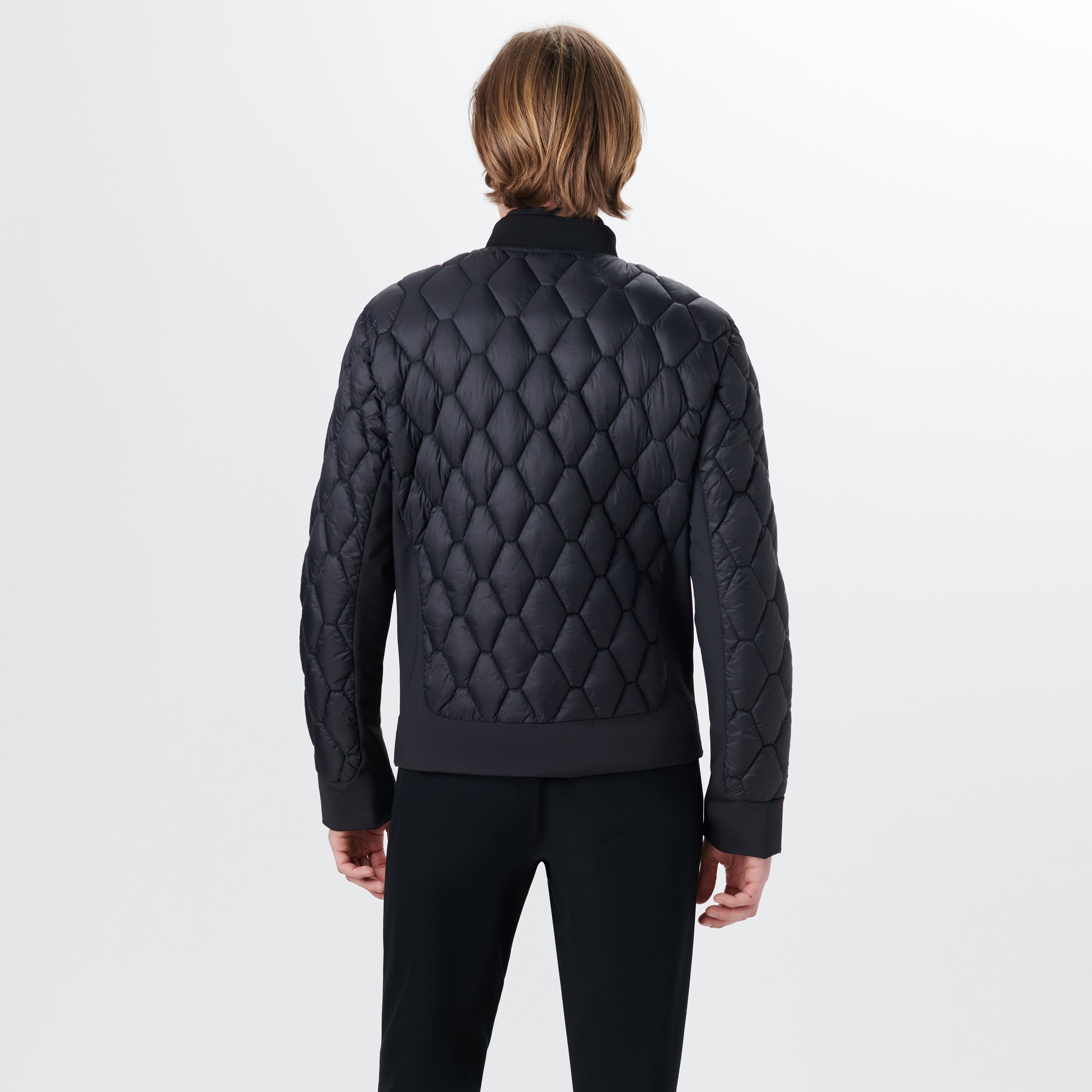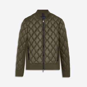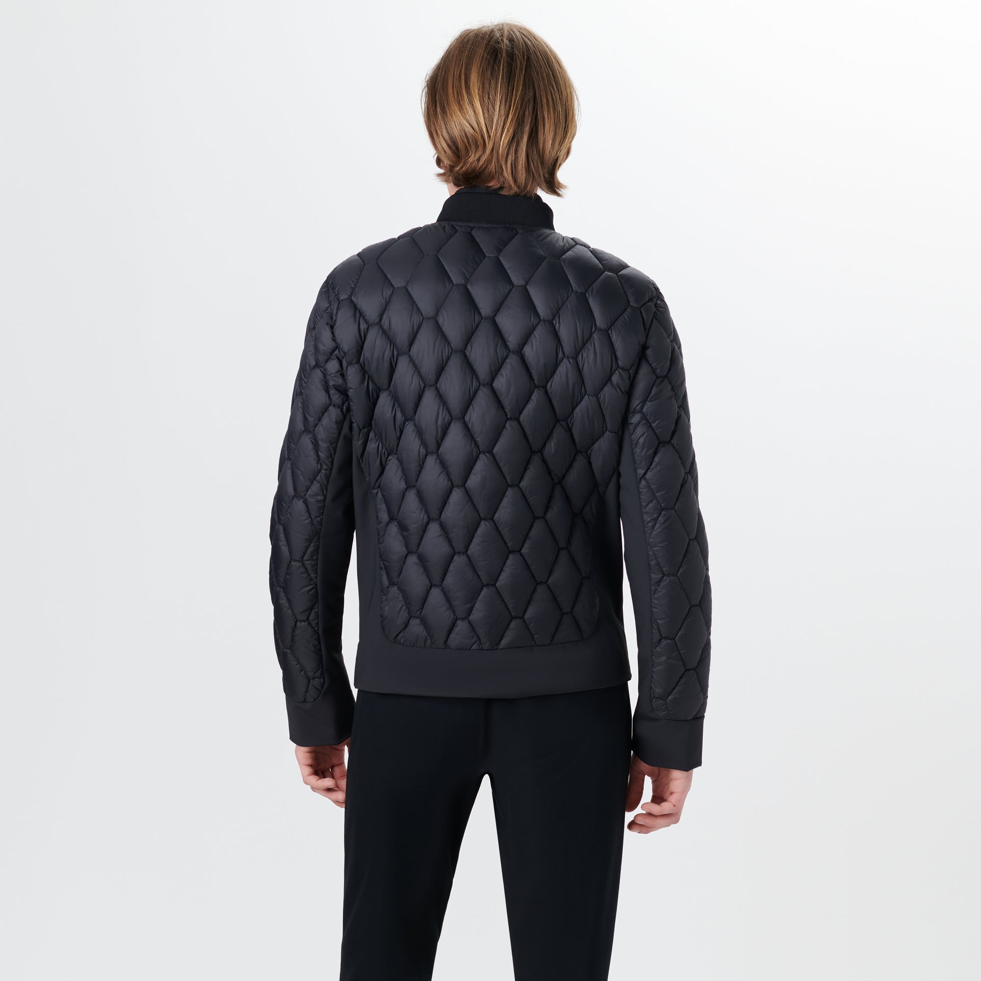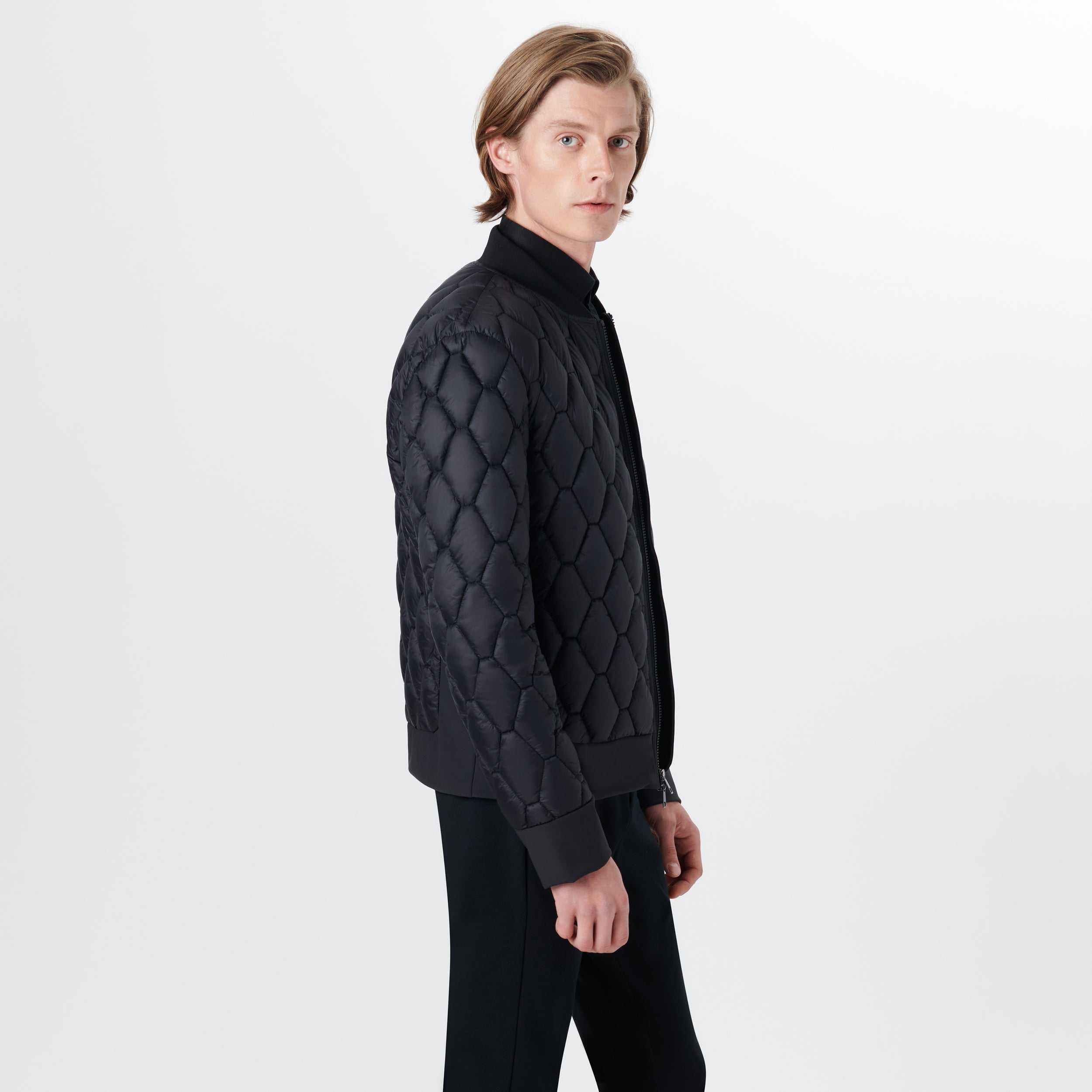 Water repellent, honeycomb quilted bomber jacket with certified Sorona Aura filling, baseball collar, two-way zipper closure and side zip pockets. Sorona Aura is a lightweight and breathable insulation with long-lasting shape retention and warmth. Outerwear made from this innovative and partially plant-based insulation benefit from exceptional breathability and comfort, at a lower environmental footprint.
