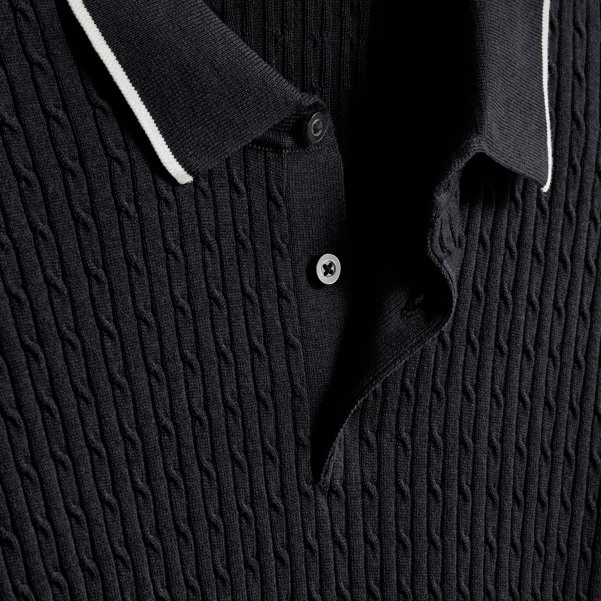Cable Stitch Short Sleeve Polo Sweater