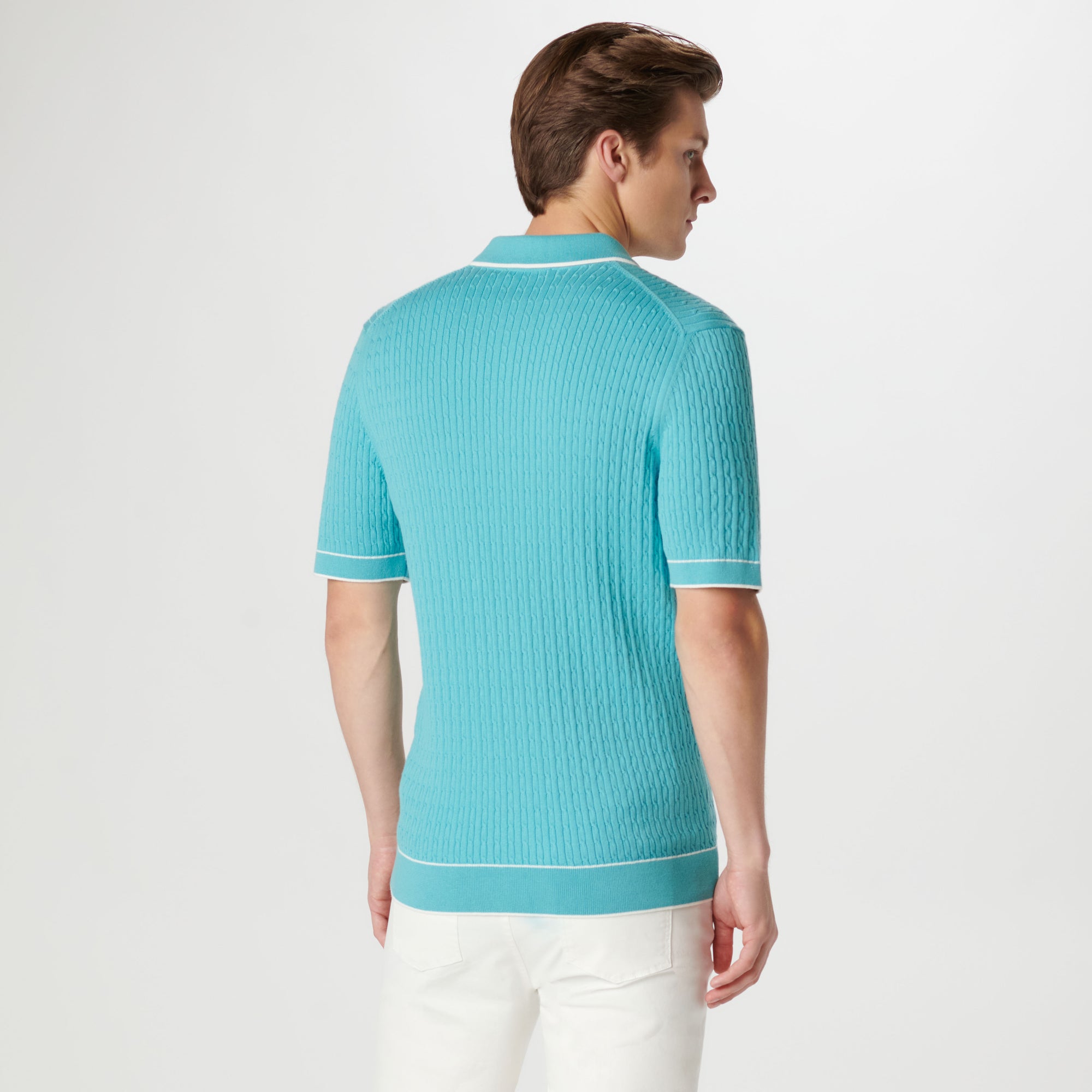 Cable Stitch Short Sleeve Polo Sweater