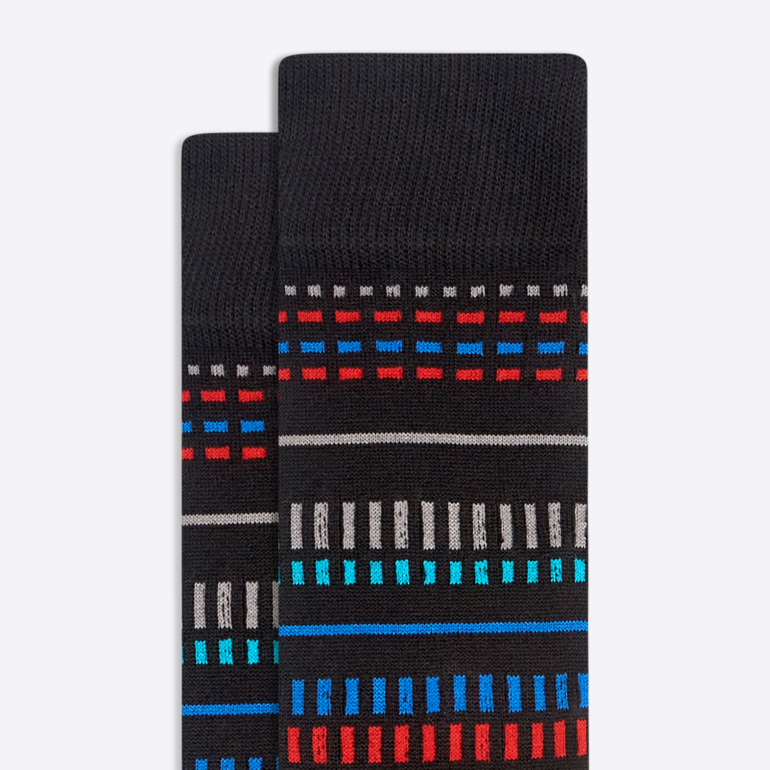Chalk stripe mid-calf socks in fine cotton and cashmere blend with rib knit cuff band, hand linked toe and reinforced heel seams. Made in Italy.
