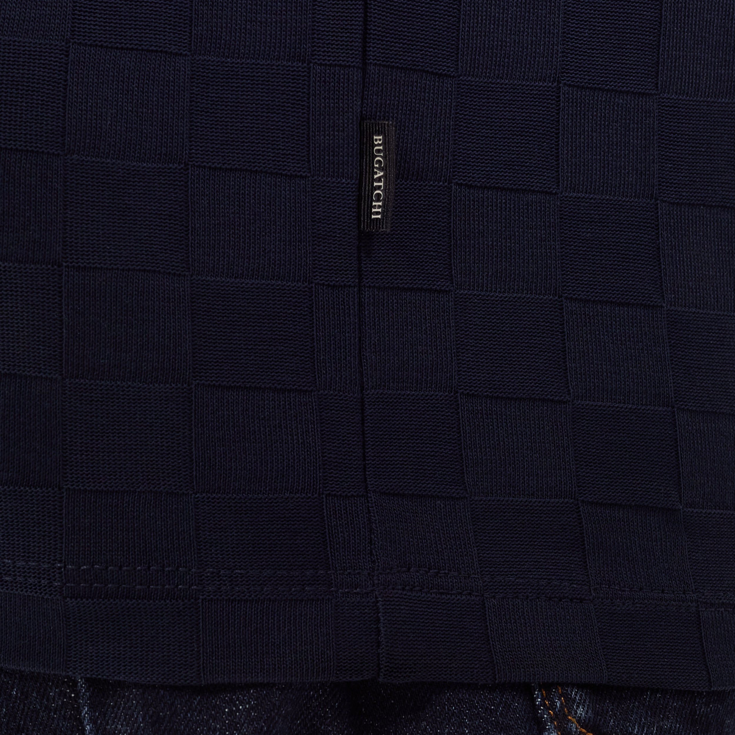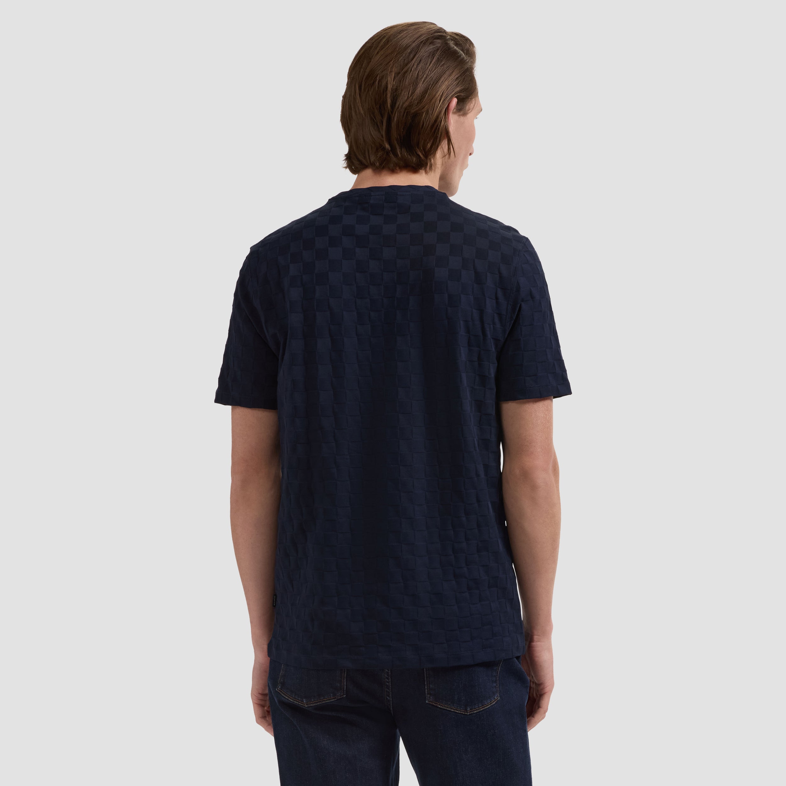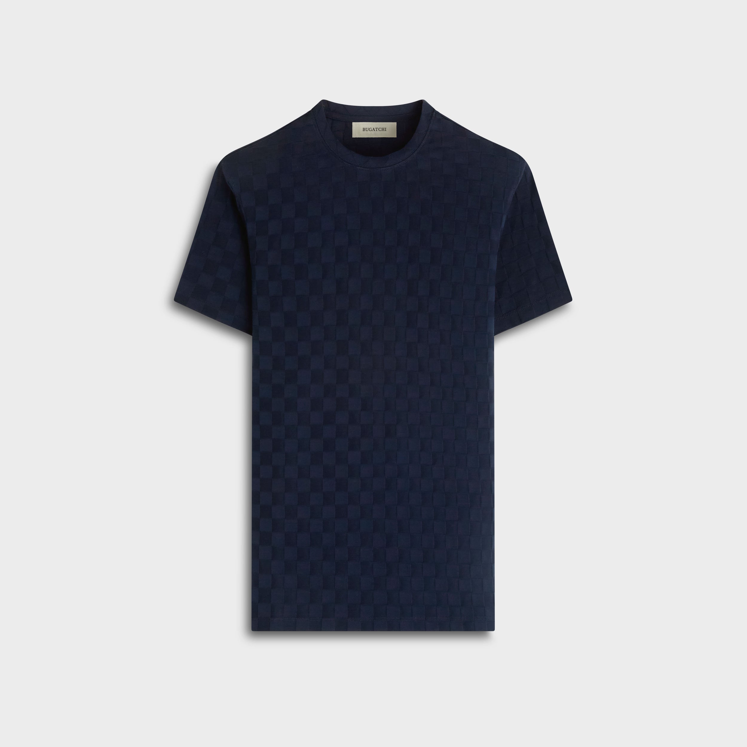 Crafted from 100% mercerized cotton for a smooth, lustrous hand feel, this T-shirt is defined by a tonal jacquard checkerboard pattern that adds subtle depth and visual interest. Designed with a classic crew neckline and straight cuffs, it offers a clean, polished silhouette that transitions effortlessly from casual occasions to more refined settings.