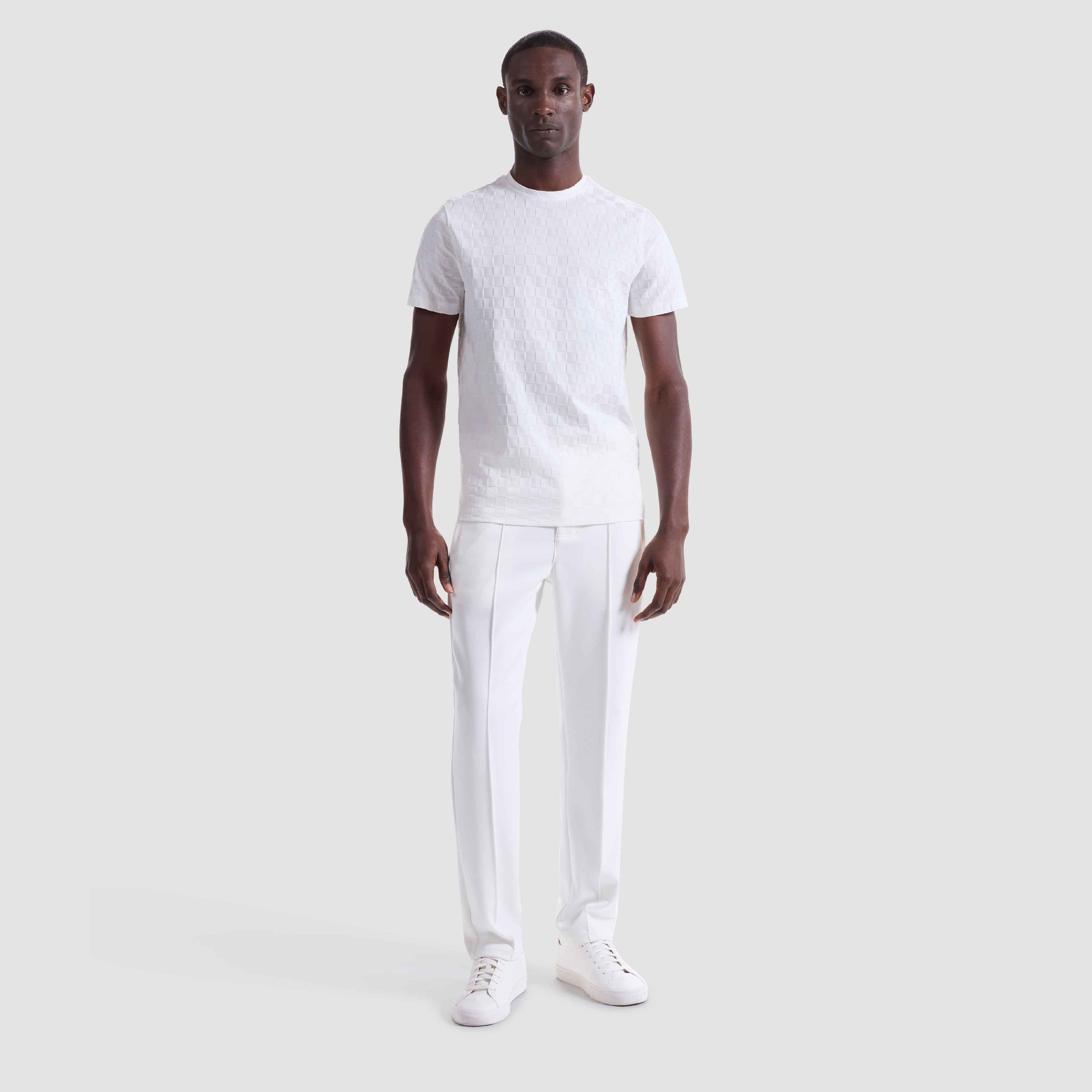 Crafted from 100% premium cotton, this short-sleeve T-shirt features an all-over tonal checkerboard knit for a refined take on casual wear. Lightweight, breathable, and ultra-soft, it's finished with a classic crewneck and clean hems, offering elevated texture in a comfortable everyday silhouette.