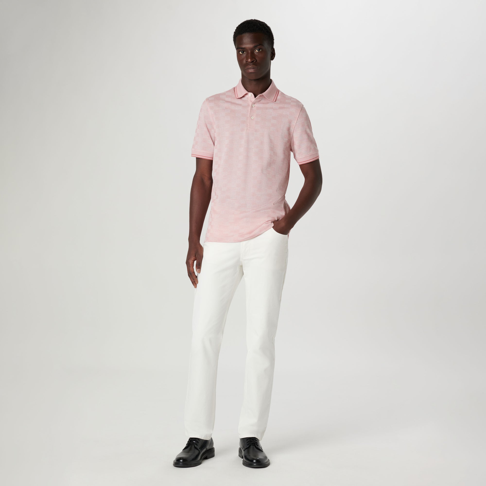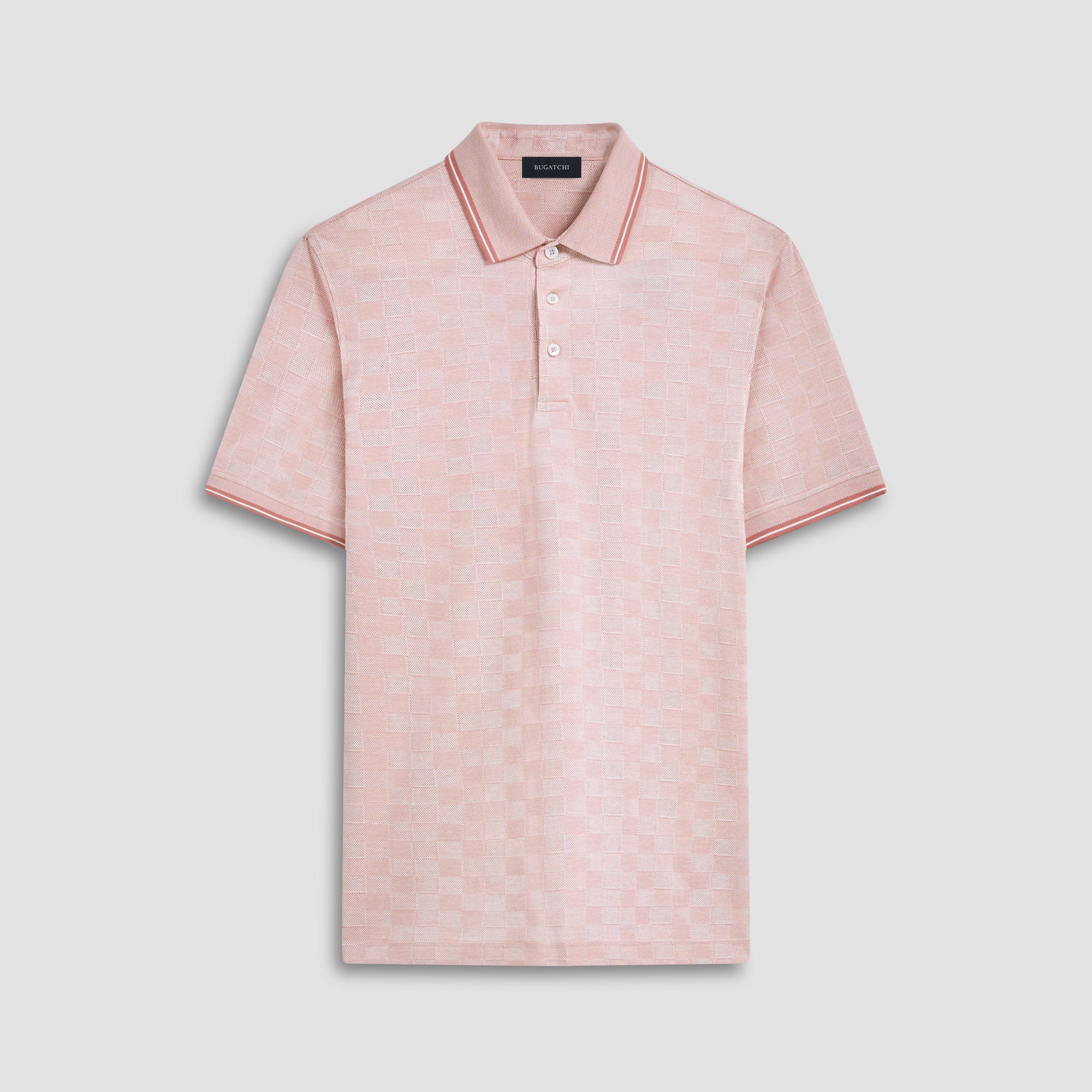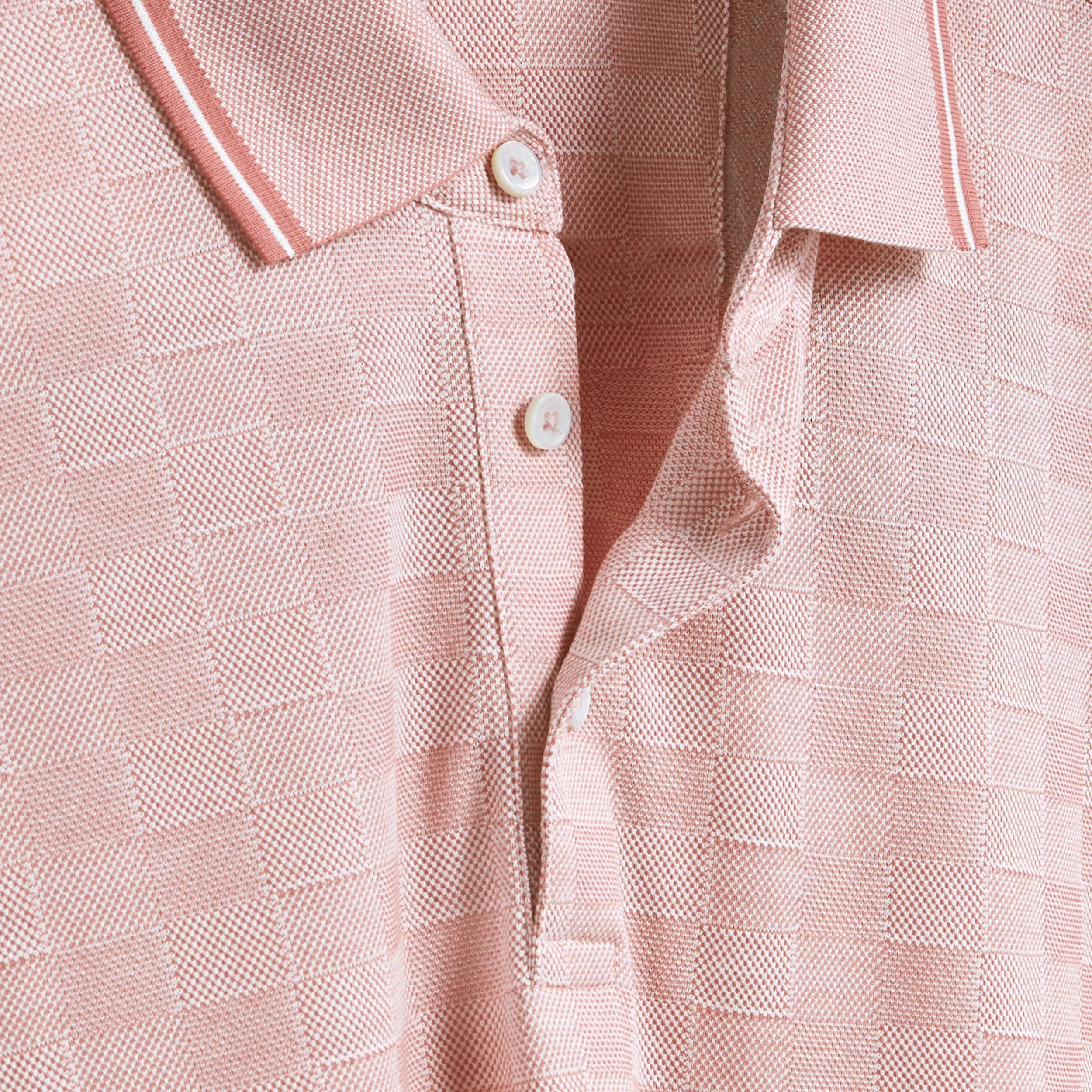 This short-sleeved polo shirt in 100% mercerized cotton features a checkerboard pattern, a three button placket and contrast double tipping detail around a two-tone bird's eye collar and armbands. Versatile and refined, this polo shirt balances casual and elegant and is perfect for any occasion.