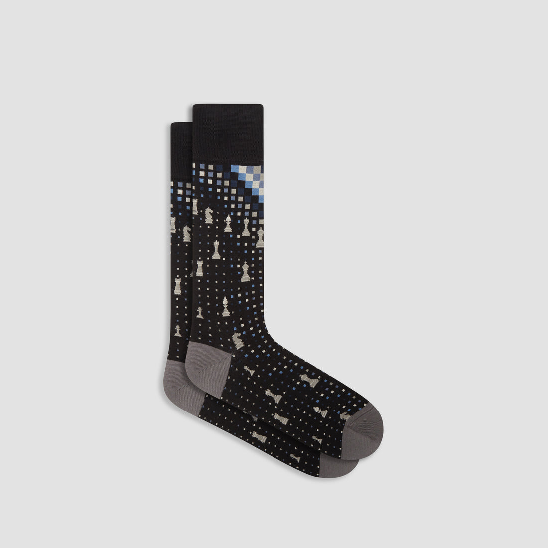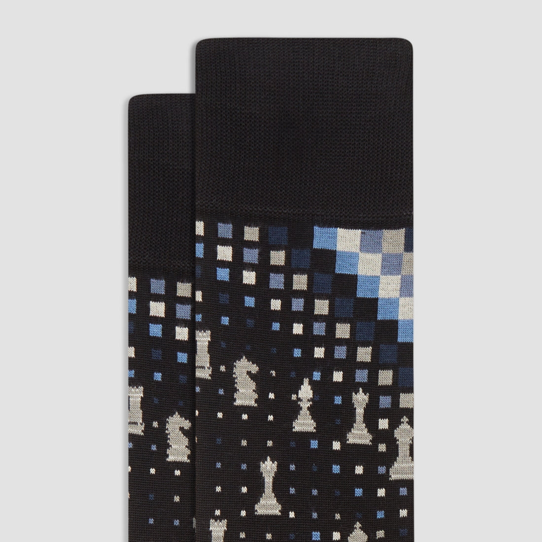 Chess mid-calf socks in fine gauge mercerized cotton blend with rib knit cuff band, hand linked toe and reinforced heel seams. Made in Italy.