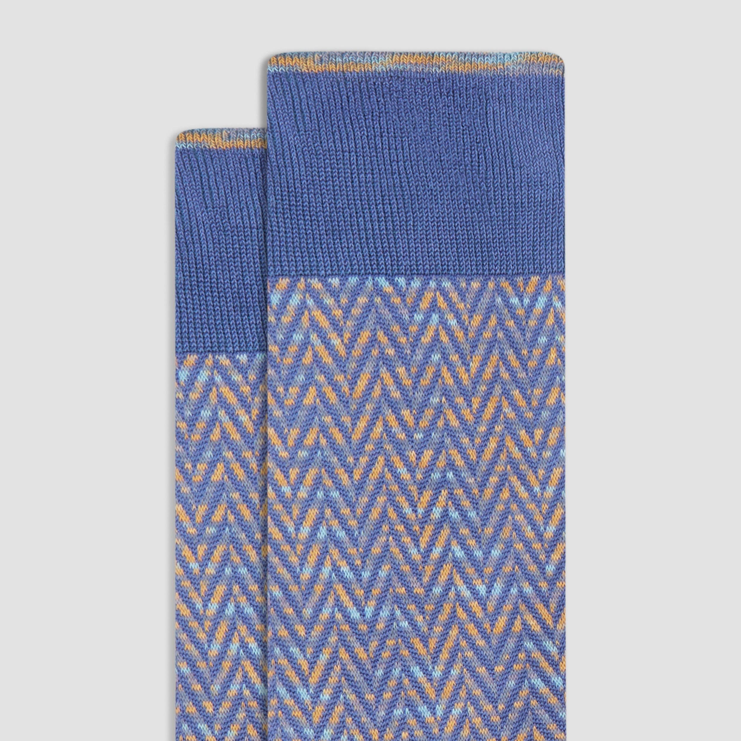 Chevron mid-calf socks in fine gauge mercerized cotton blend with rib knit cuff band, hand linked toe and reinforced heel seams. Made in Italy.
