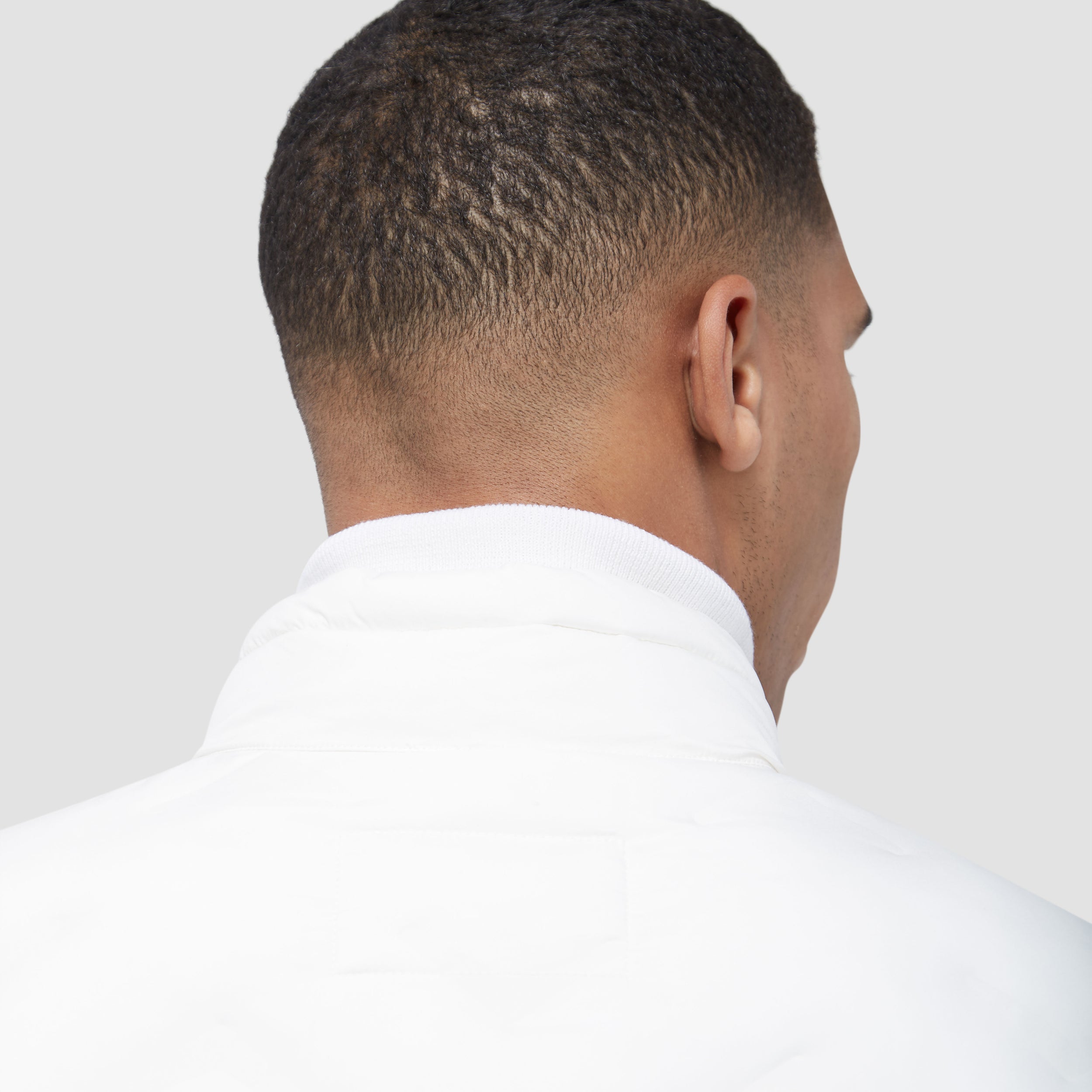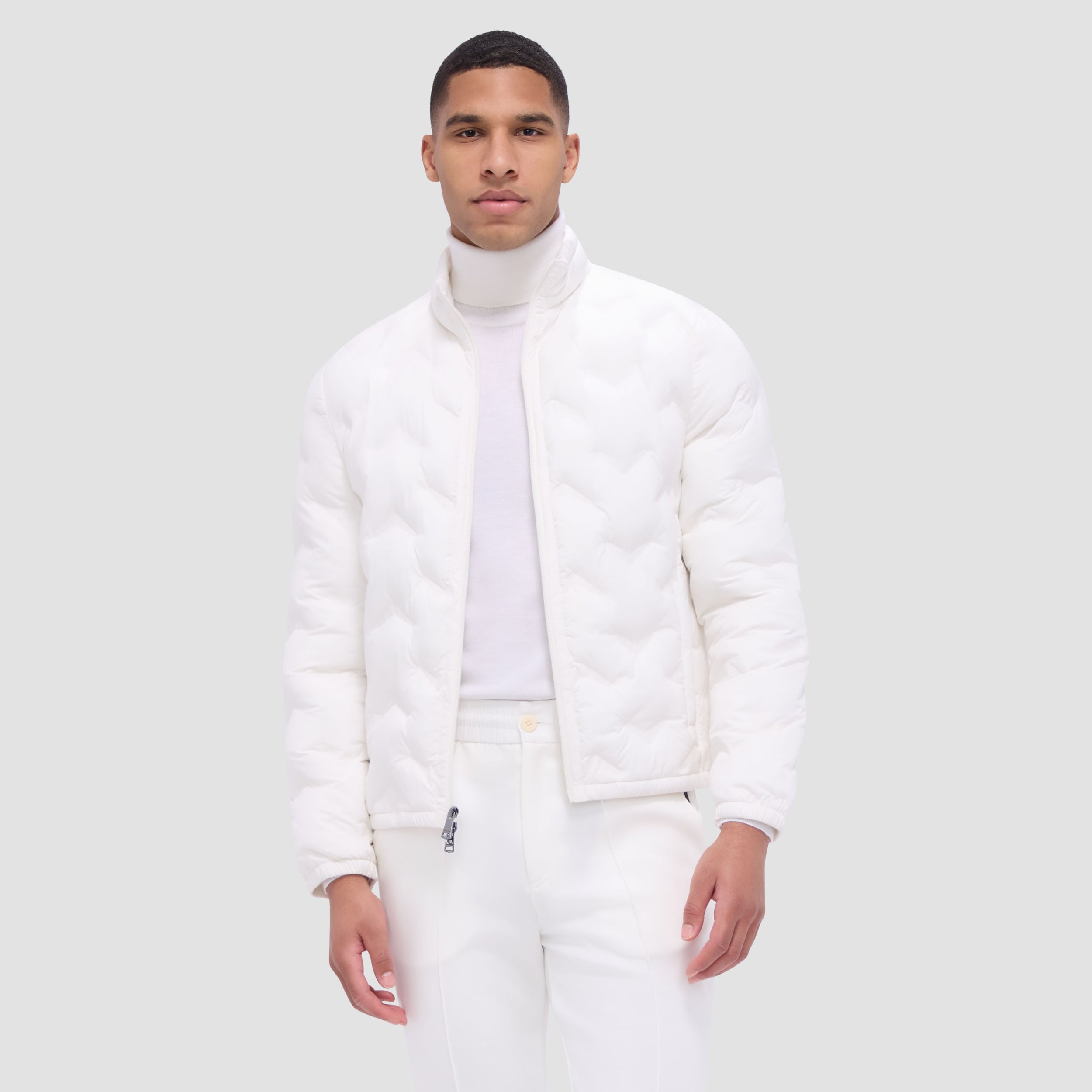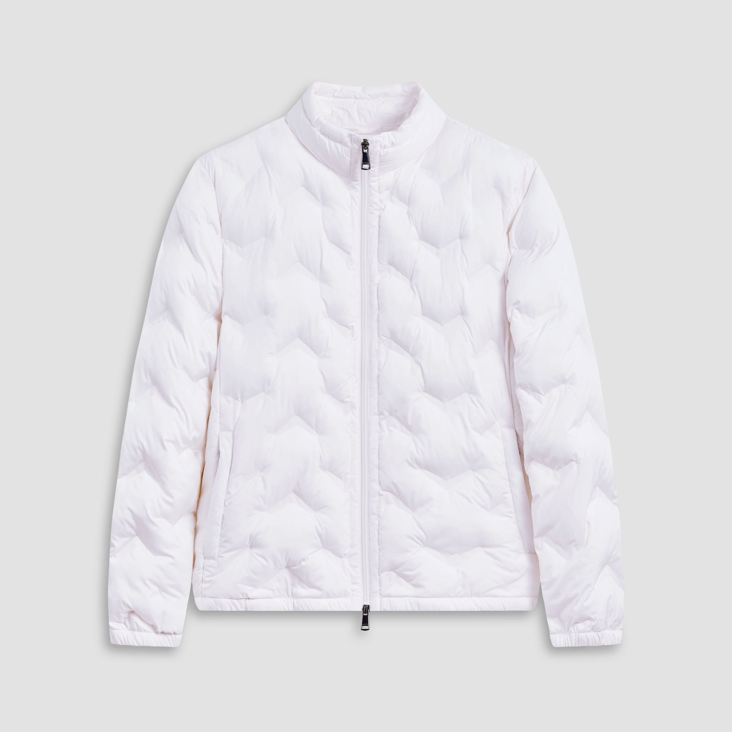 Stay warm in style with our chevron-quilted puffer jacket, crafted from durable, water-repellent nylon with superior insulation. Its quilted stand-up collar and two-way zipper ensure comfort and flexibility. Elasticized cuffs and waistband provide a snug fit, while vertical seam pockets with covered zippers offer secure storage. Inside, find 2x2 patch pockets-one with an extra zippered compartment, and the other with a snap closure.
