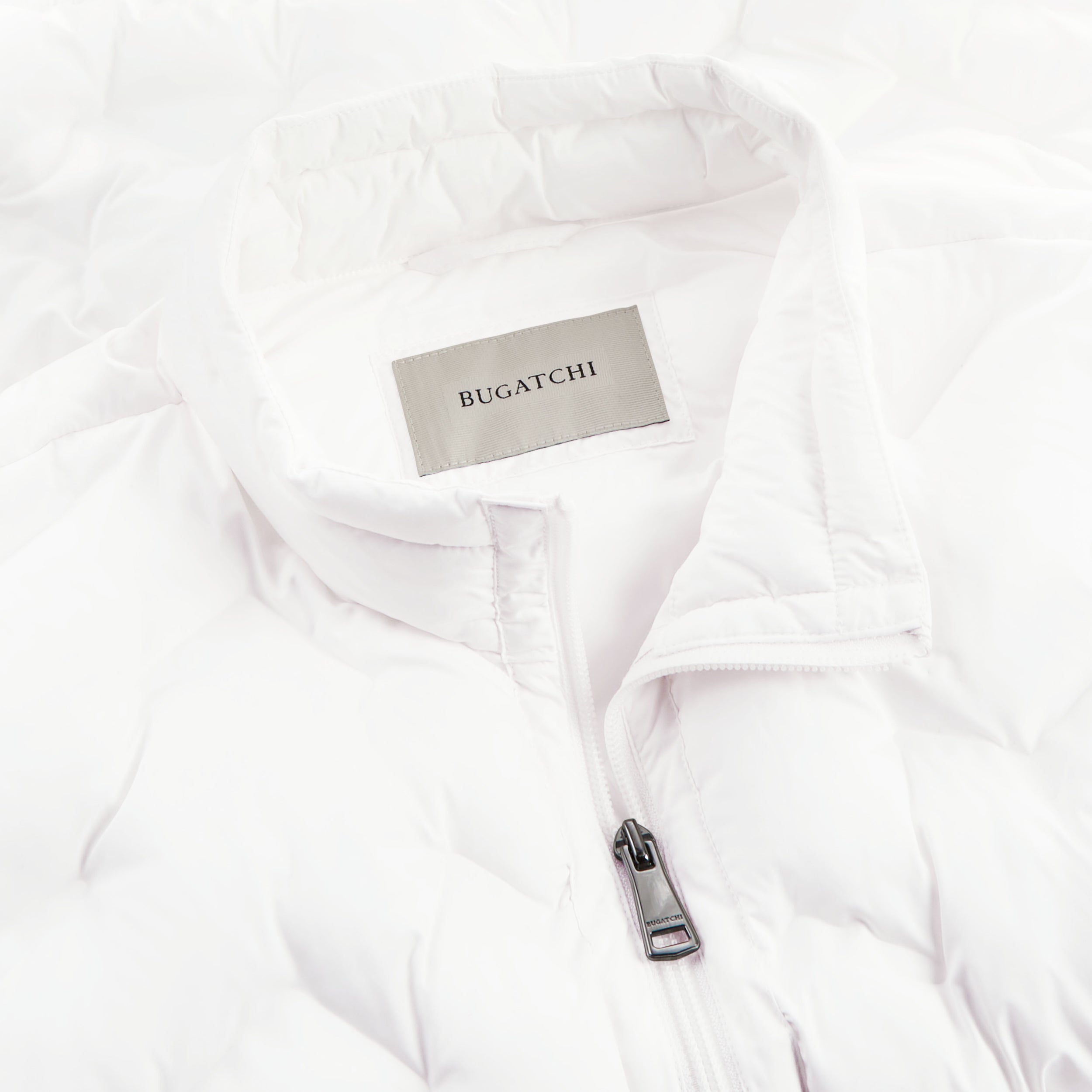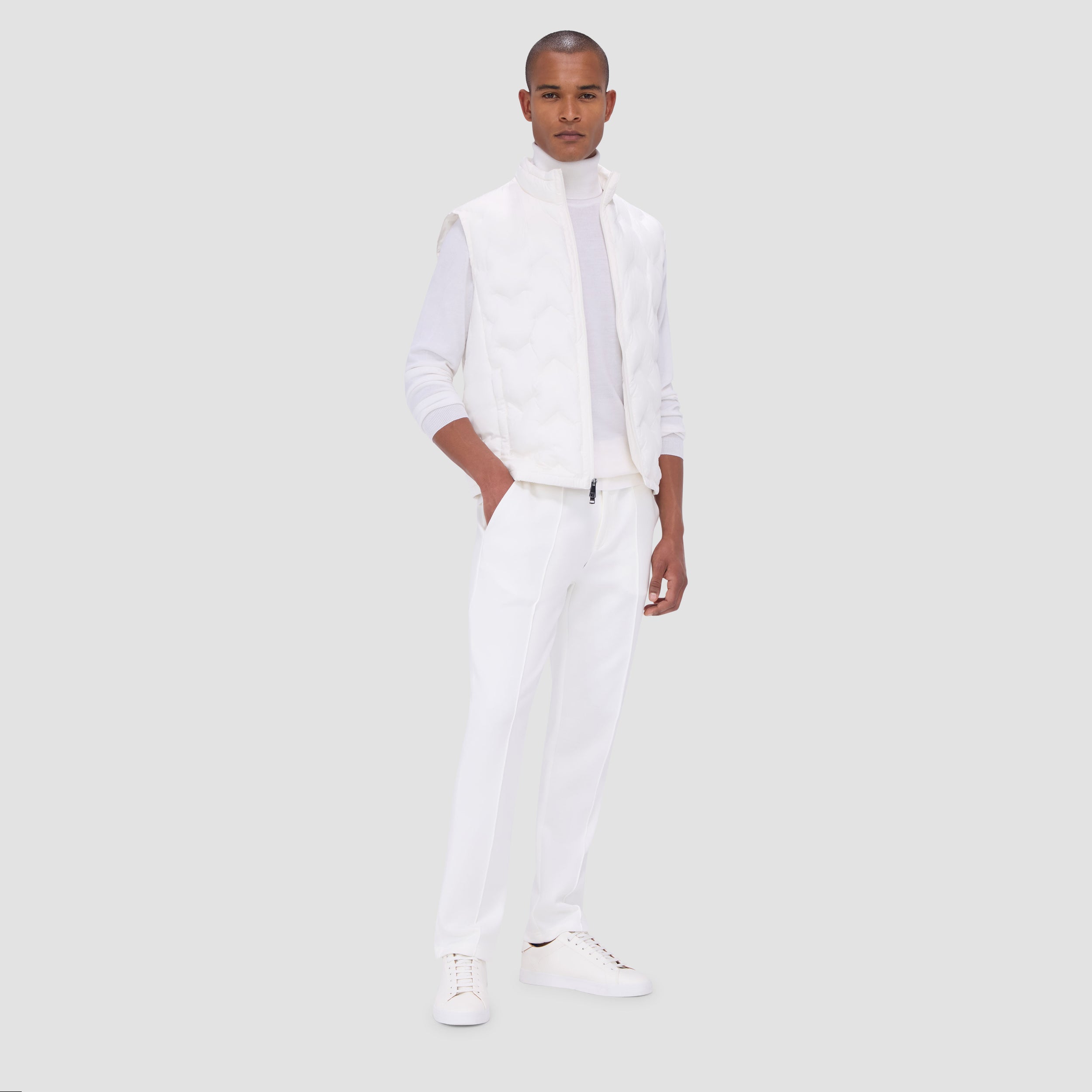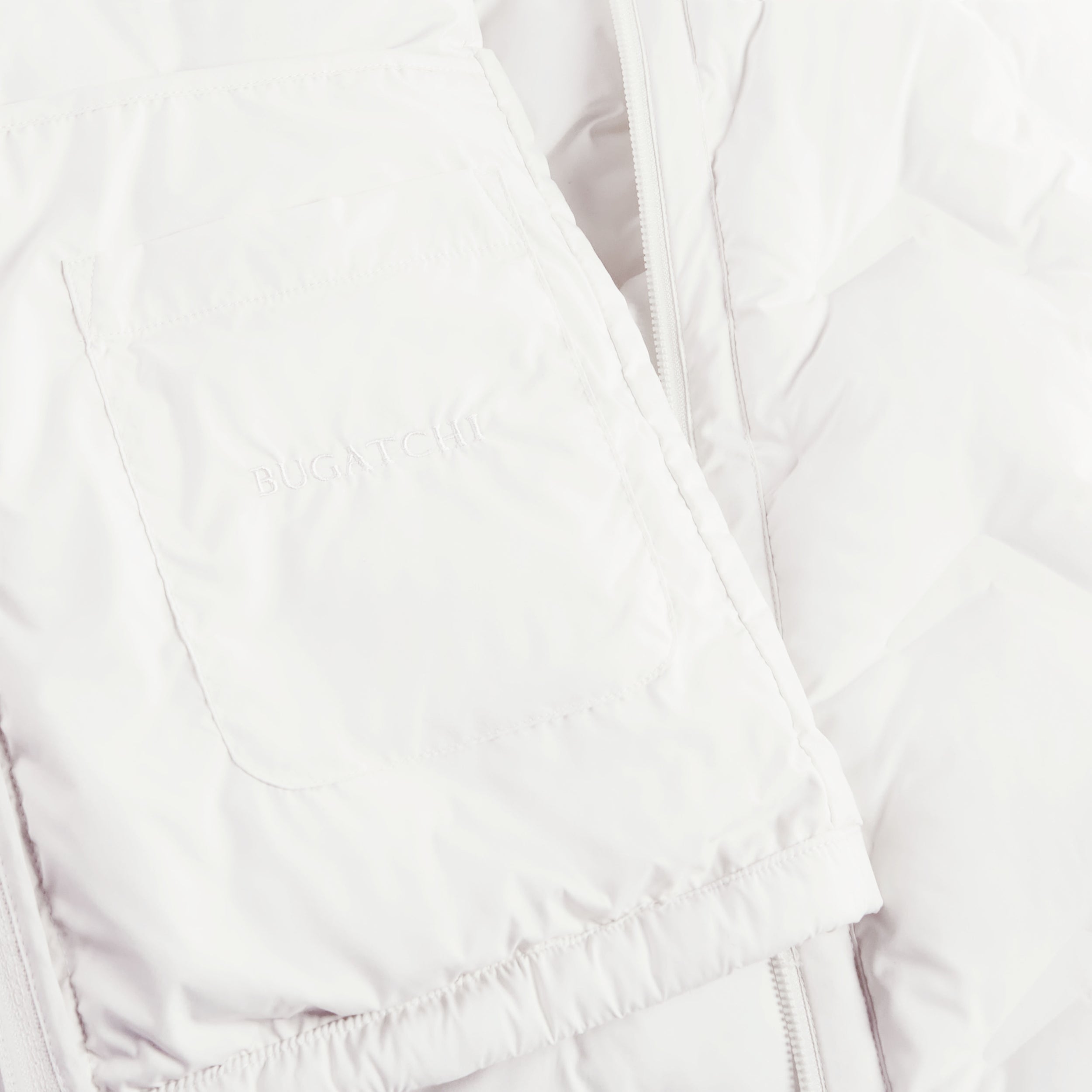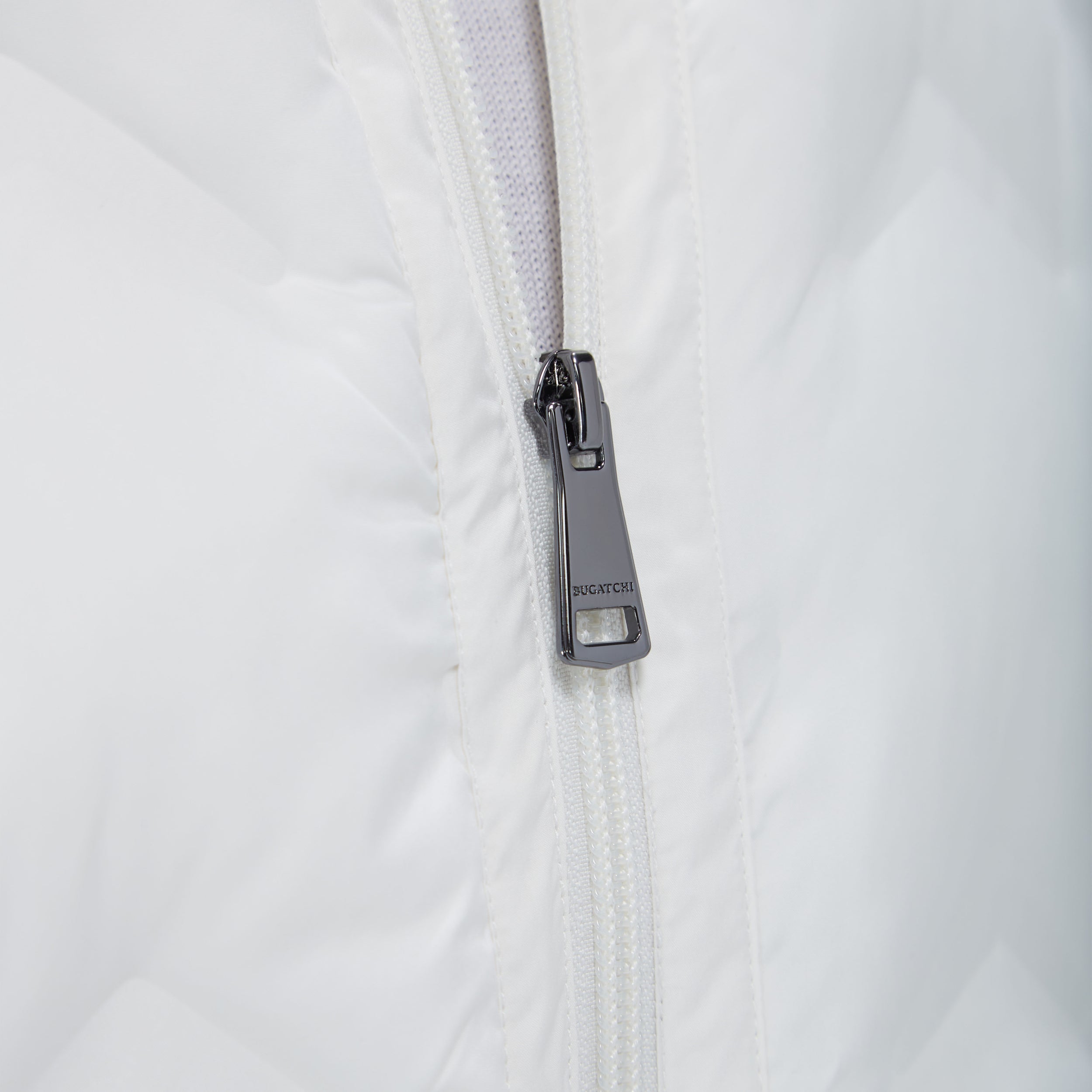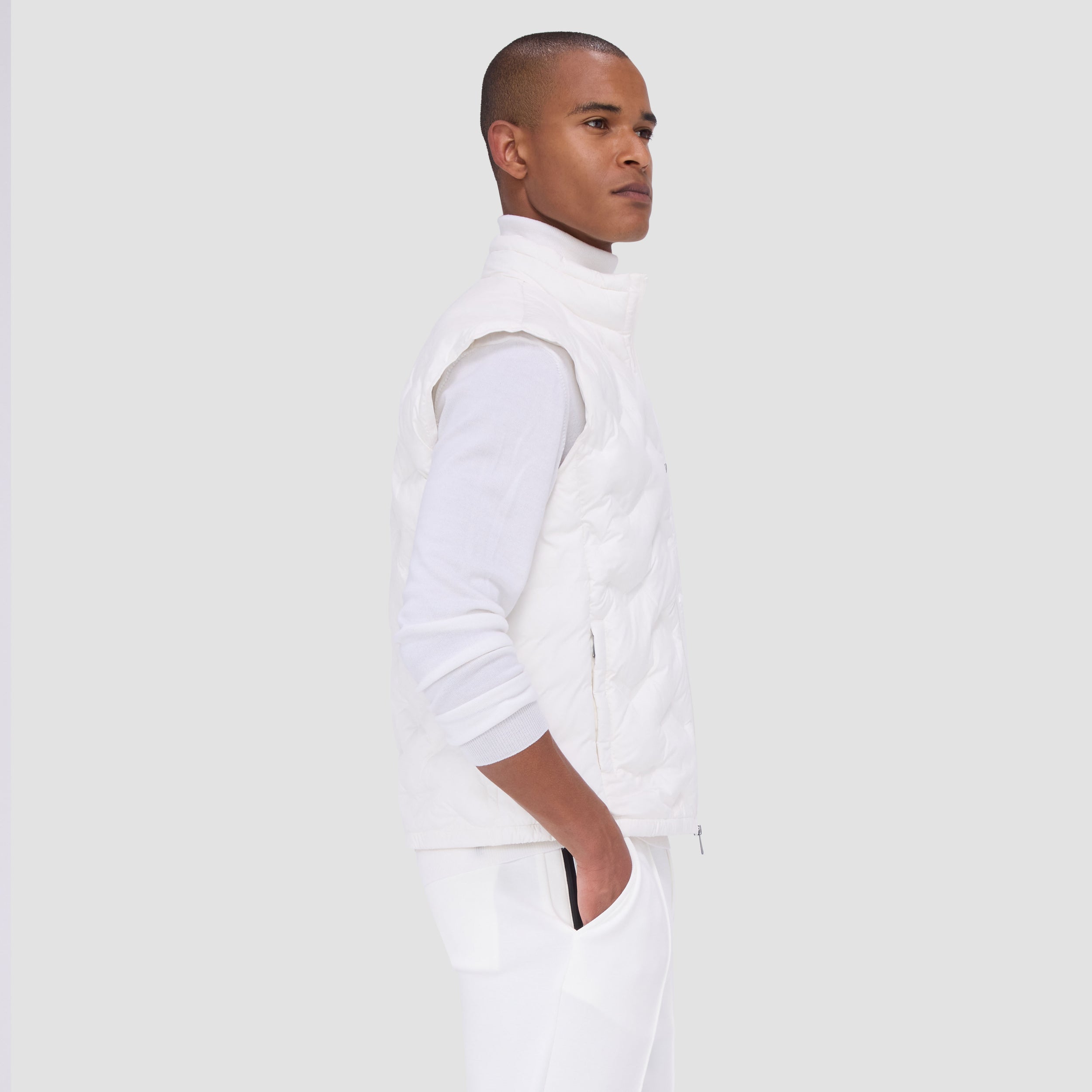 Stay warm and stylish with our chevron-quilted puffer vest. Constructed from durable nylon with a water-repellent finish, it offers superior insulation. Features a quilted stand-up collar, two-way zipper closure, and elasticized waistband for comfort. Vertical seam pockets with covered zippers provide secure storage, while inside, discover 2x2 patch pockets with additional zippered compartments and snap closure.