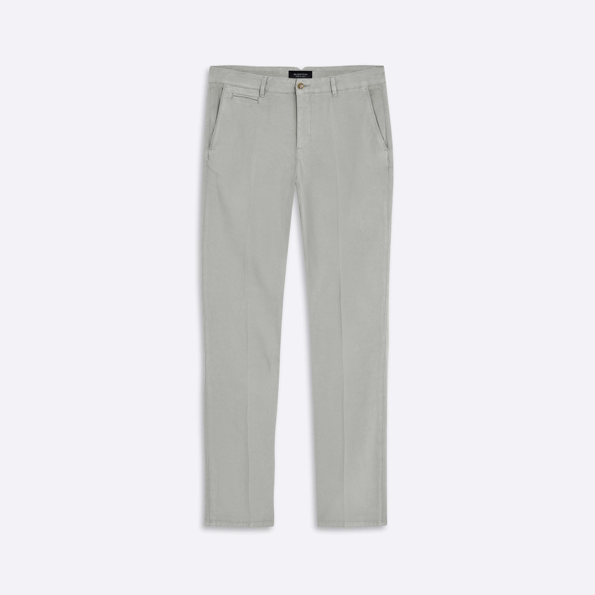 Slim Fit Chino pants in stretch cotton feature a waistband with loops, a button and zip fly, angled side pockets, a coin pocket and buttoned jetted back pockets. Made in Italy
