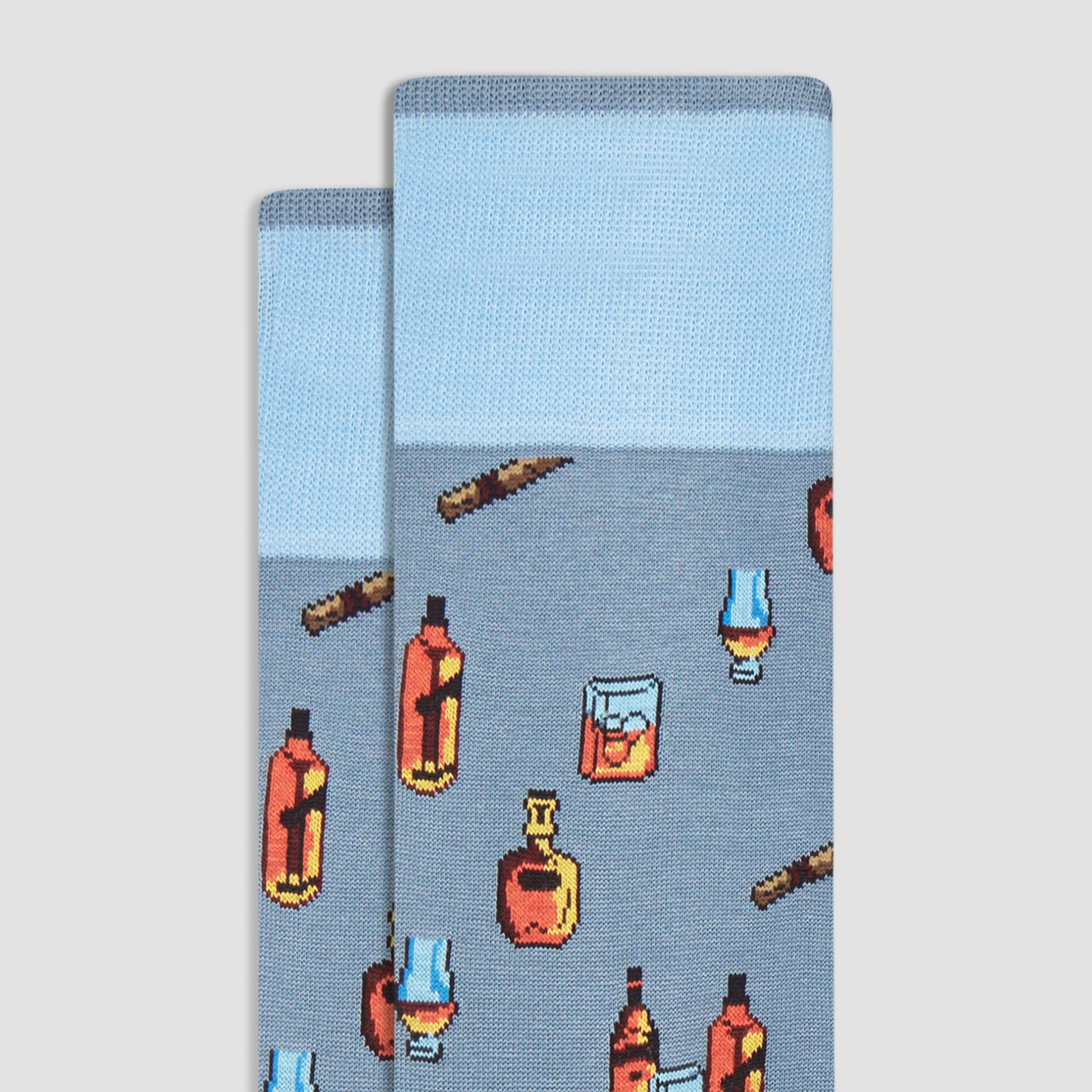 Cigar Bar mid-calf socks in fine gauge mercerized cotton blend with rib knit cuff band, hand linked toe and reinforced heel seams. Made in Italy.
