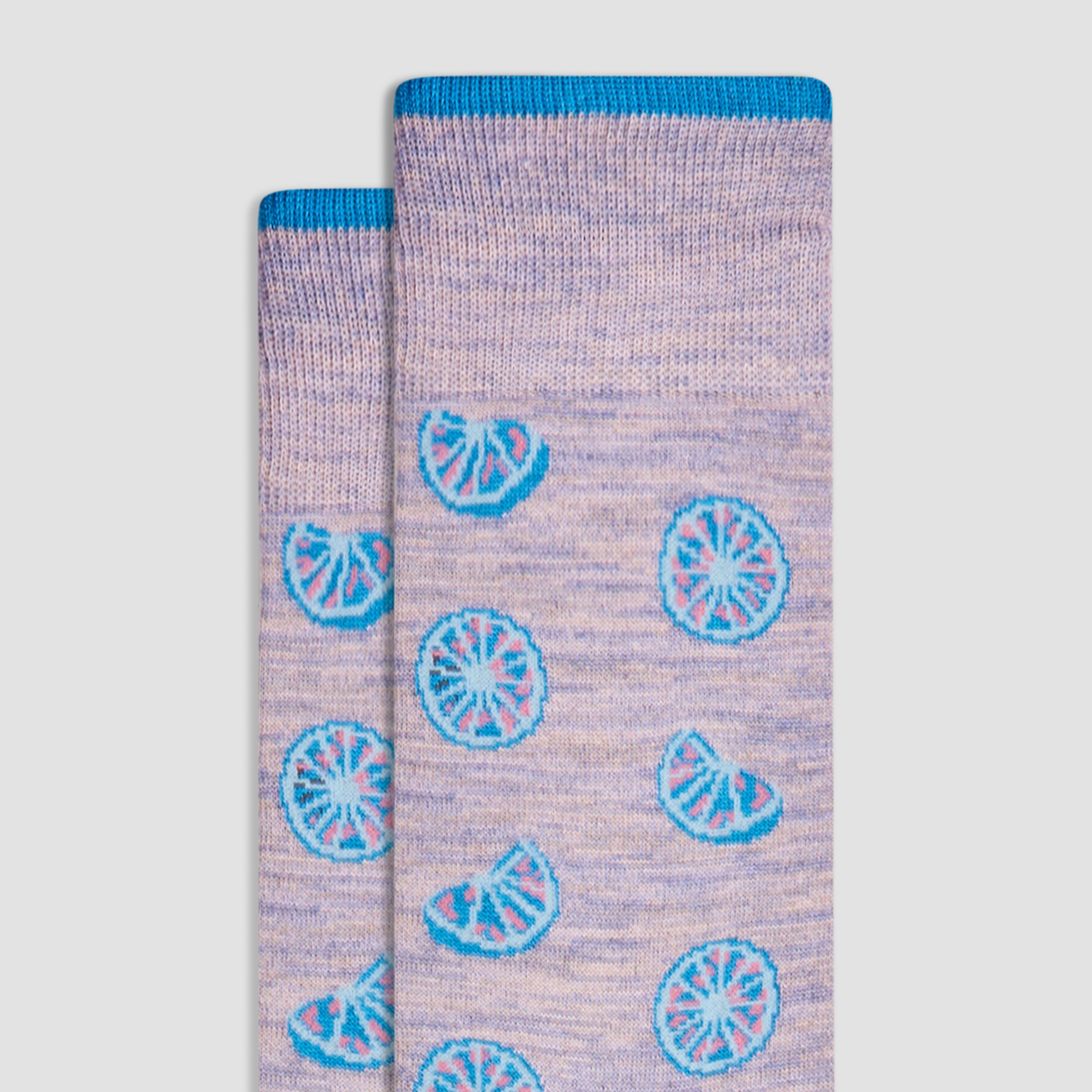 Combining exclusive novelty patterns with Italian craftsmanship, these citrus fruit socks are made from a fine gauge soft cotton with ribbed cuff band, hand linked toe and reinforced heel seams to complement any wardrobe as a statement piece.