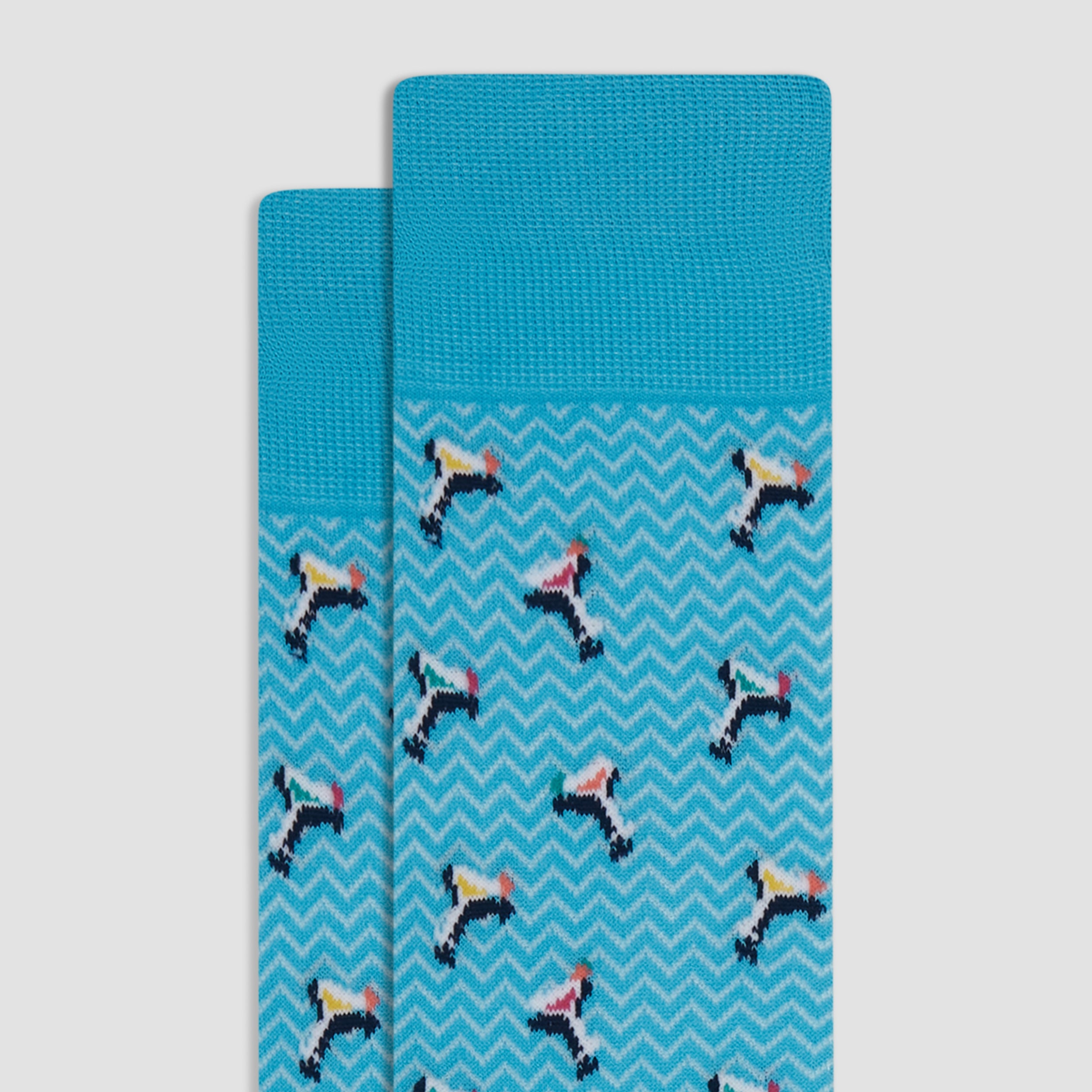 Cocktails mid-calf socks in fine gauge mercerized cotton blend with rib knit cuff band, hand linked toe and reinforced heel seams. Made in Italy.