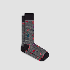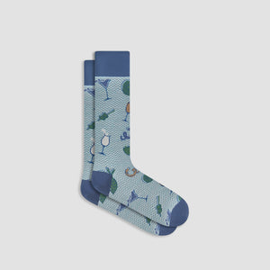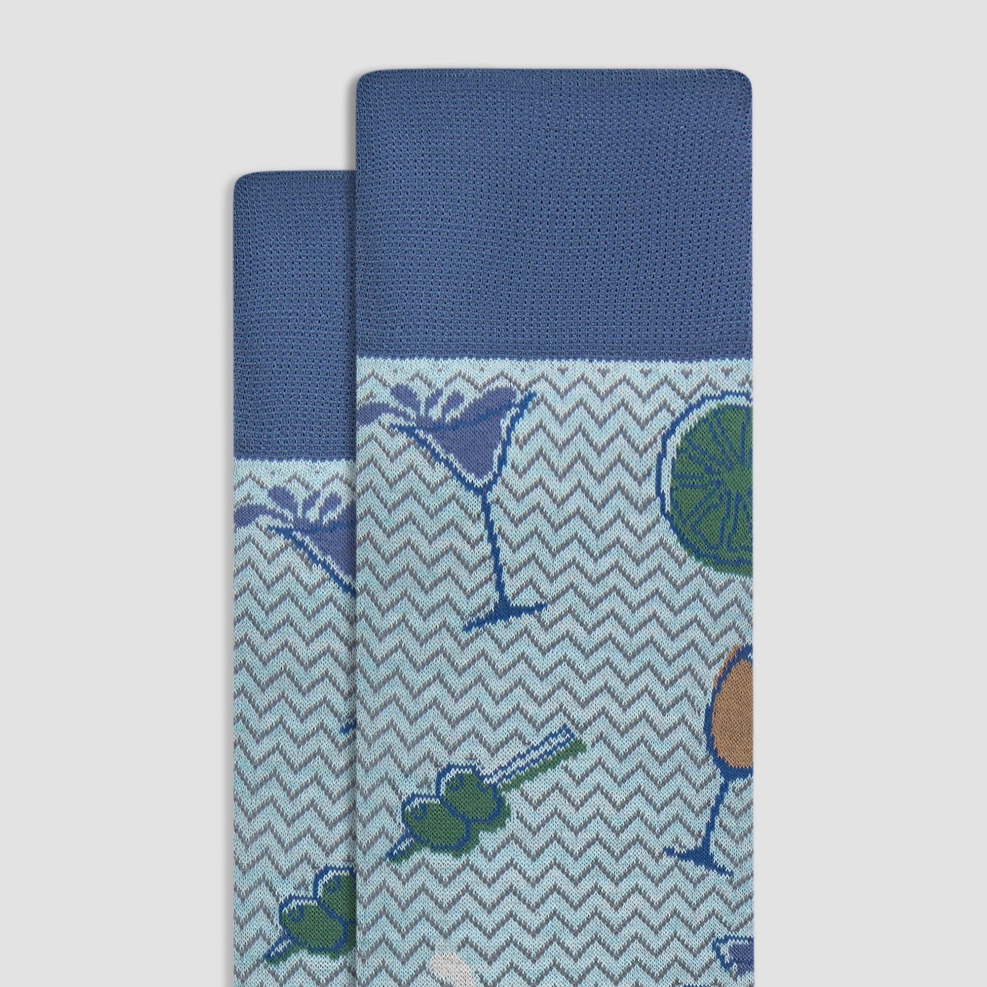 Add some fun to your sock collection with our chevron-striped conversational socks featuring a cocktail theme. Made in Italy from luxurious mercerized cotton, they feature a ribbed cuff for a snug fit, a hand-linked toe for smoothness and reinforced heel seams for added durability. Perfect for adding a splash of personality to your outfit, these socks are sure to spark conversation wherever you go.