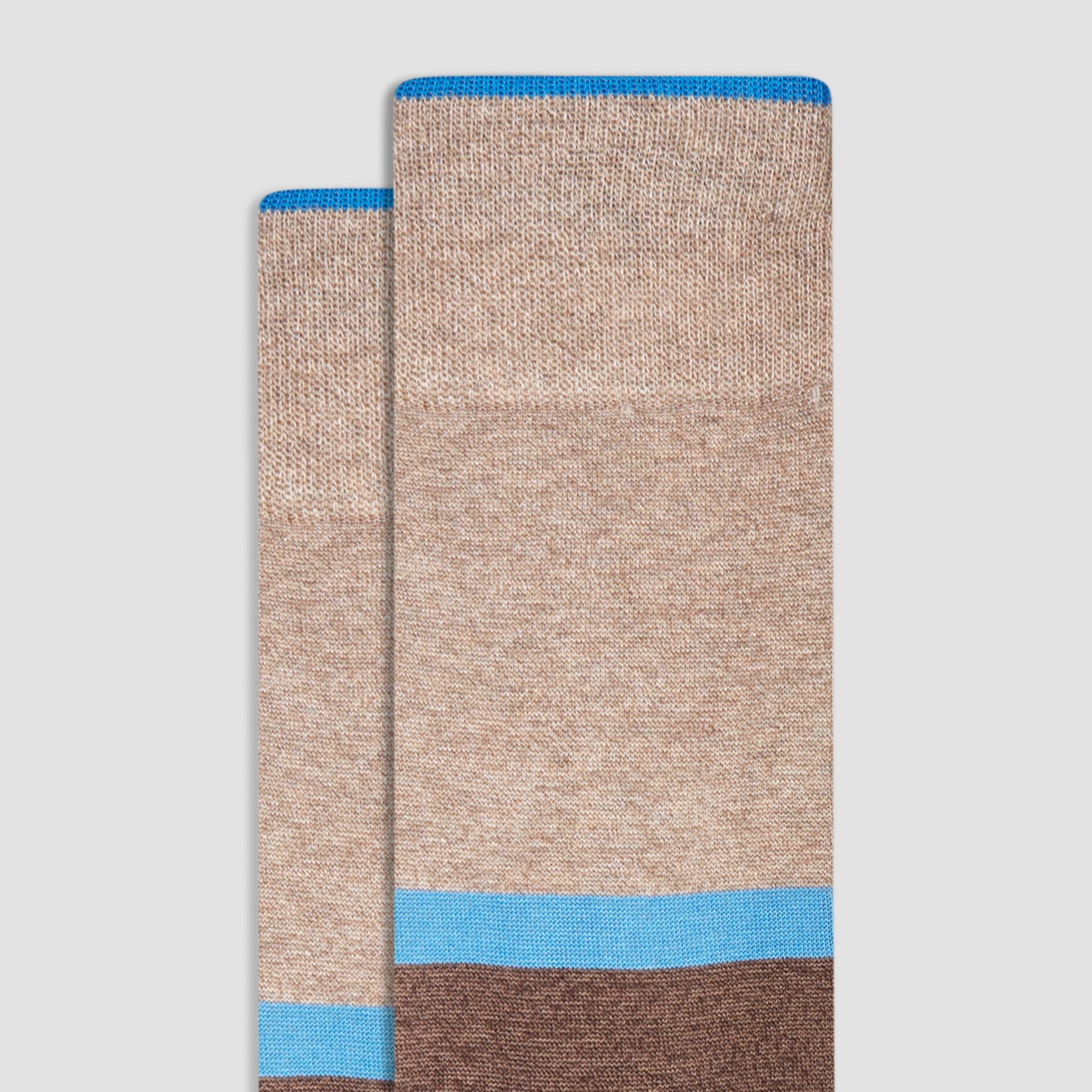 Color Block mid-calf socks in fine gauge mercerized cotton blend with rib knit cuff band, hand linked toe and reinforced heel seams. Made in Italy.