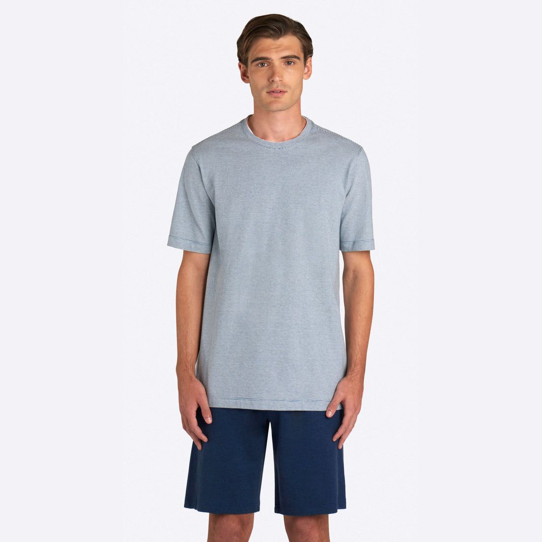 Hairline Stripe short sleeve crew neck t-shirt in COMFORT soft 100% cotton with contrast trimmed neckline.