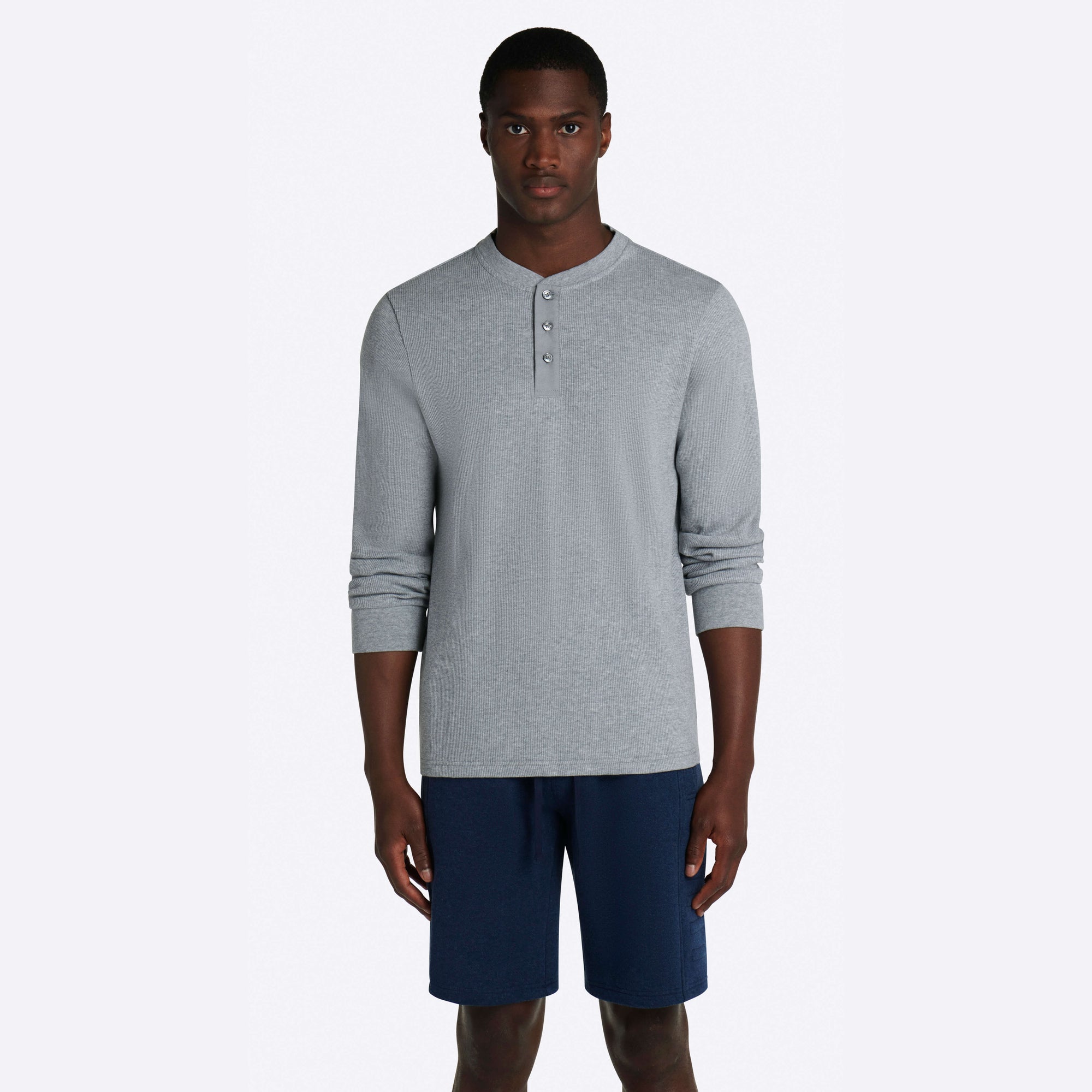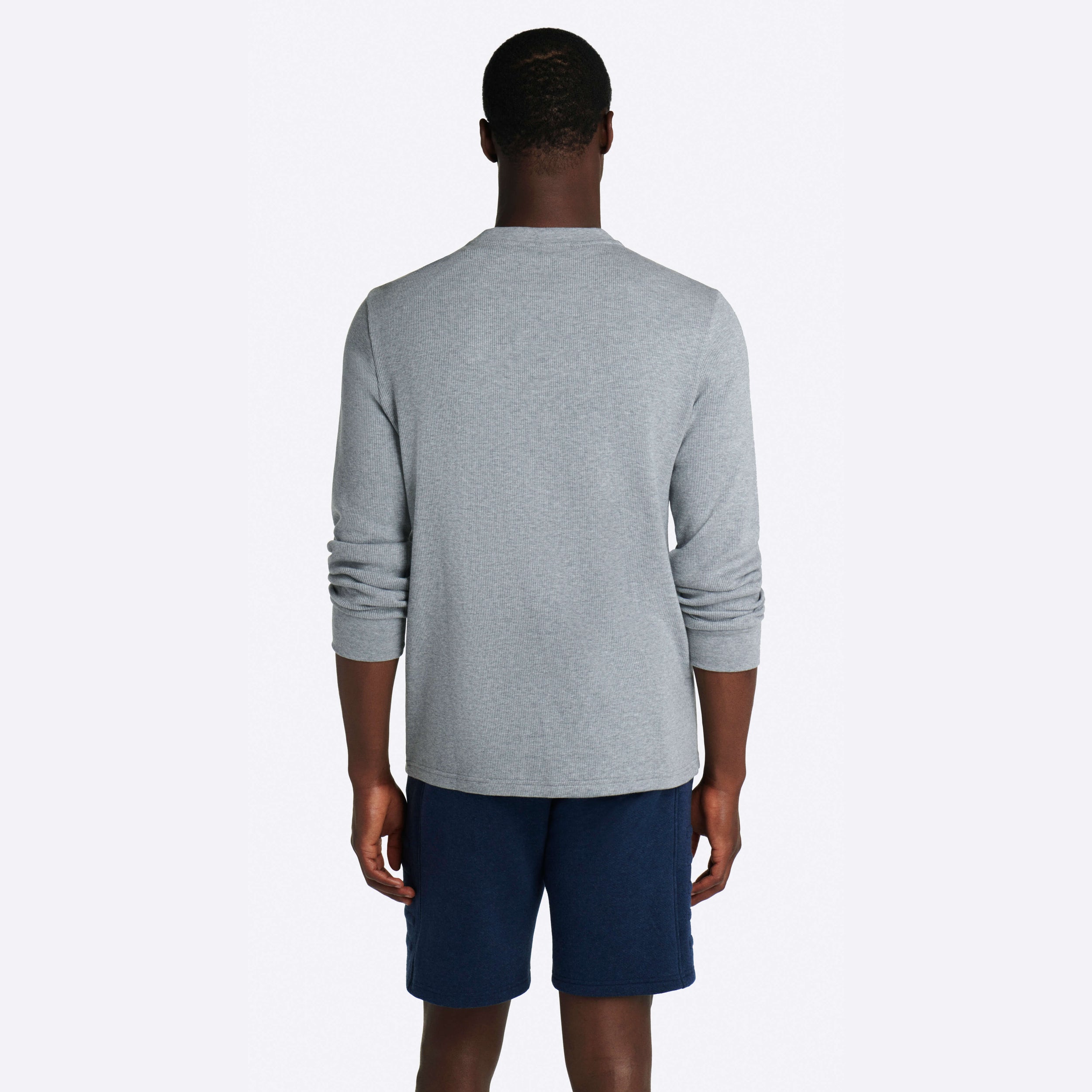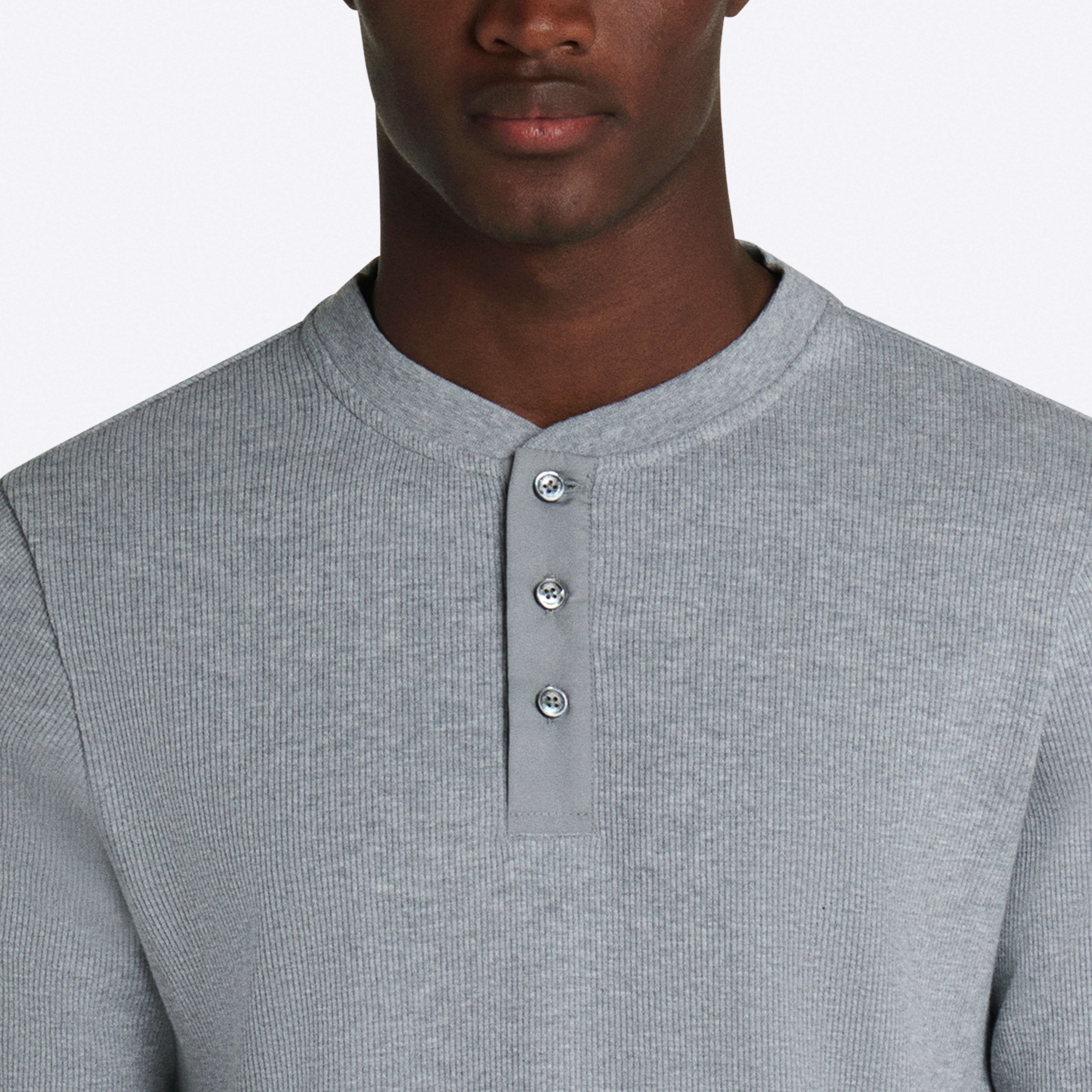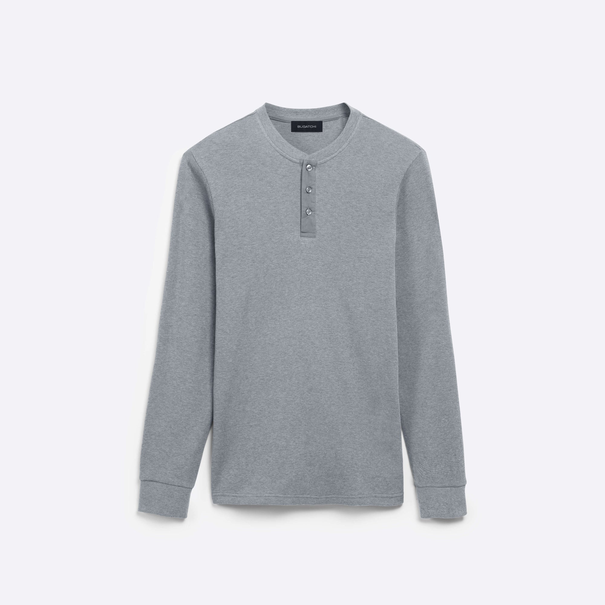 Heather Waffle knit long sleeve three button Henley in COMFORT soft 100% cotton with nylon trim detail.