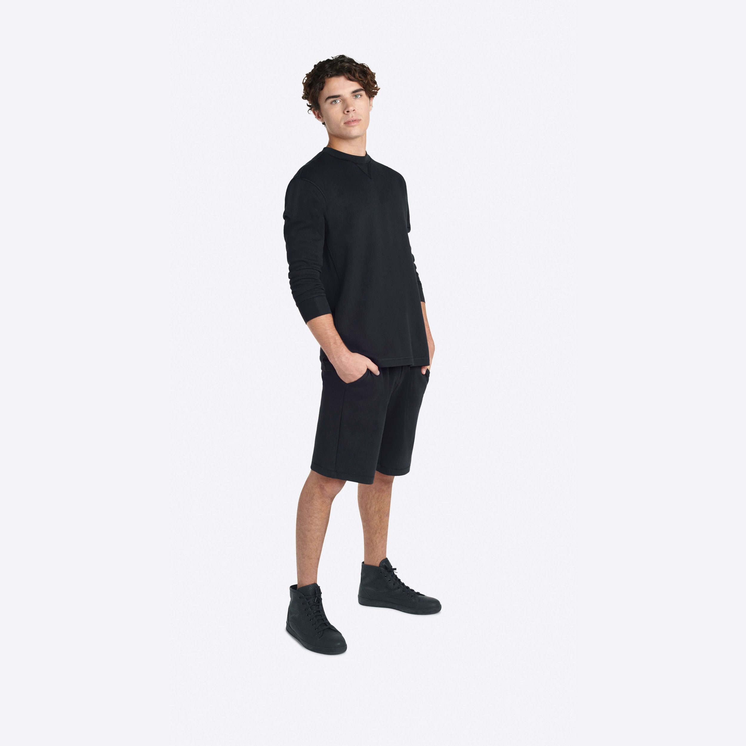 Solid long sleeve crew neck in COMFORT soft stretch cotton.