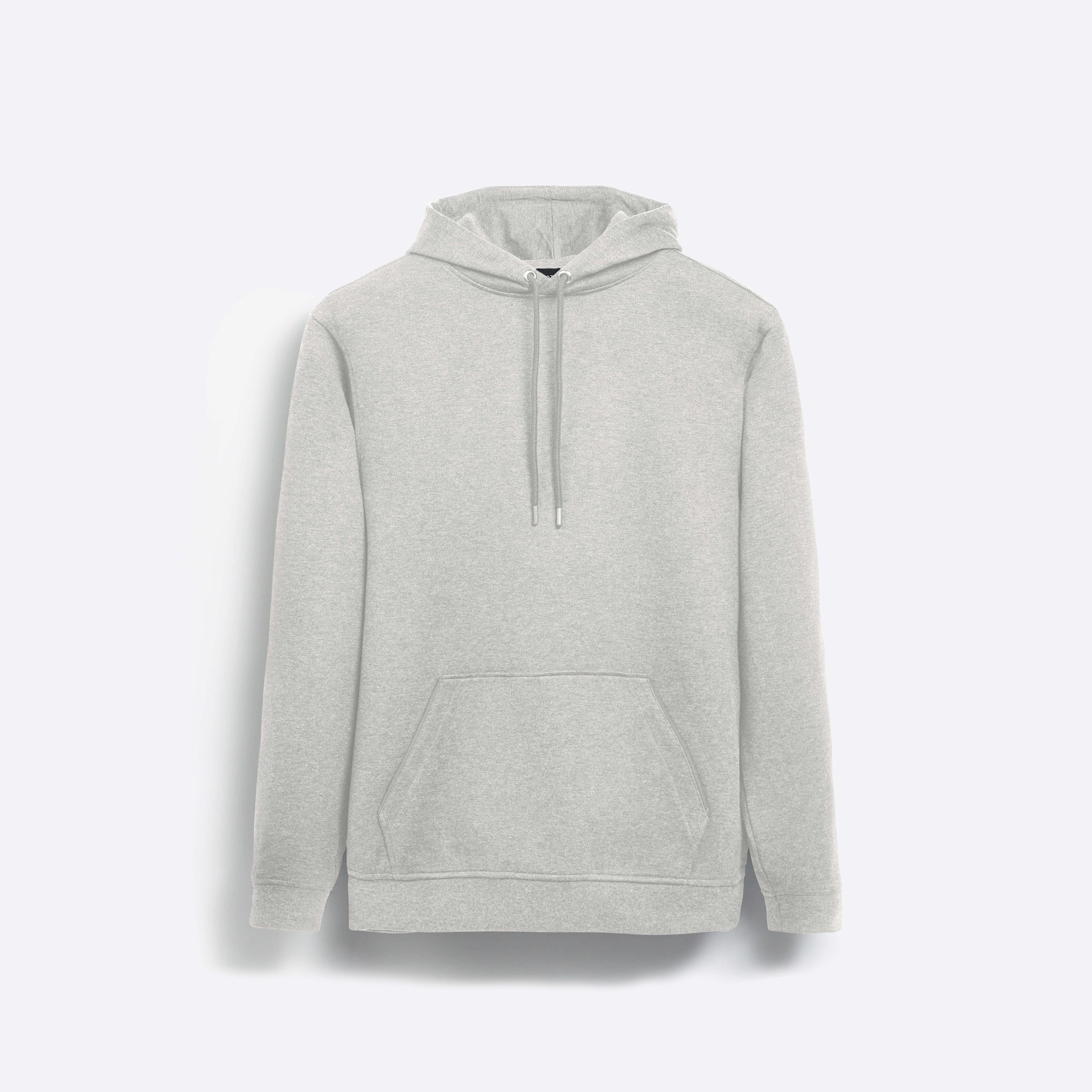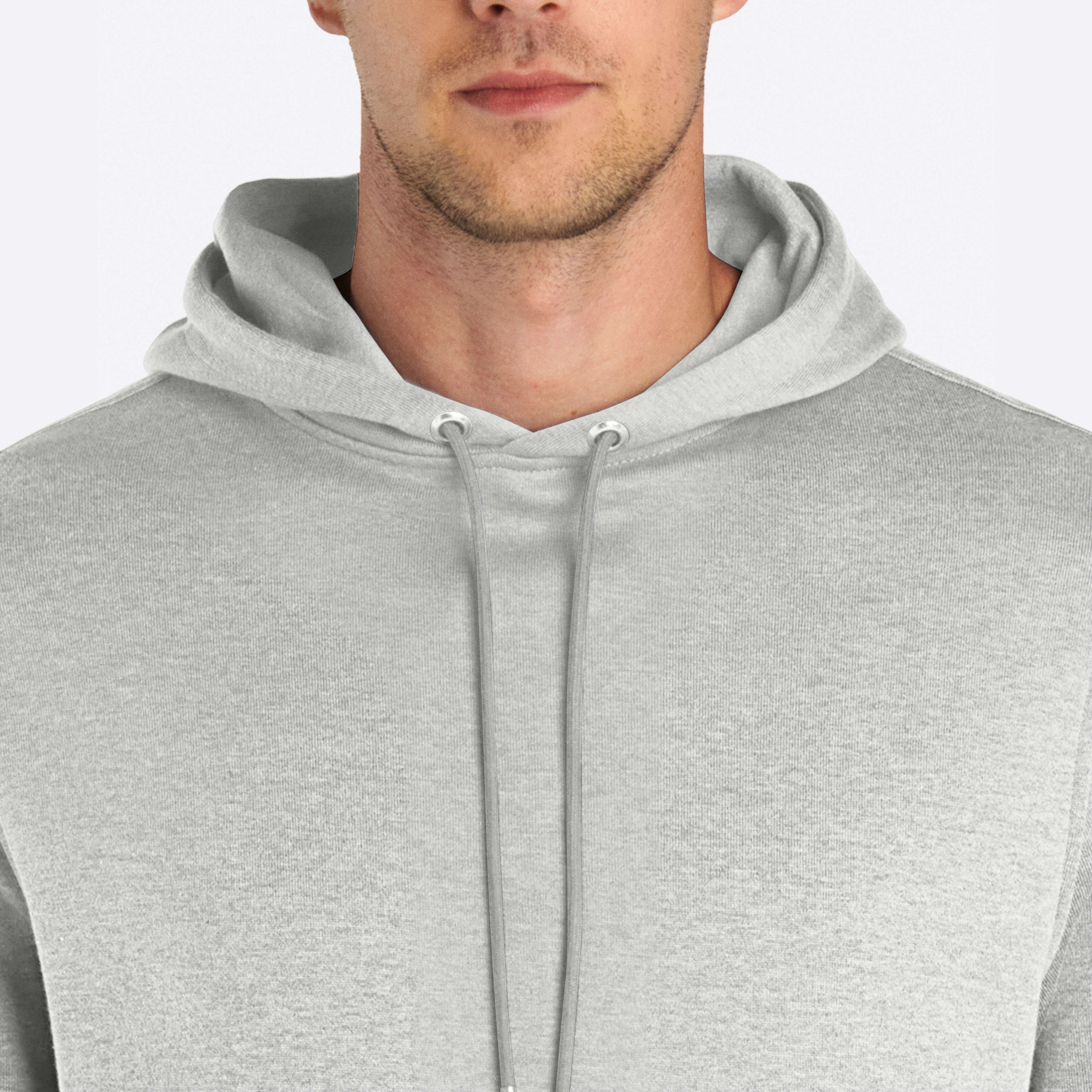 Solid heather sweatshirt in COMFORT soft cotton blend with kangaroo pockets and drawstring hood.