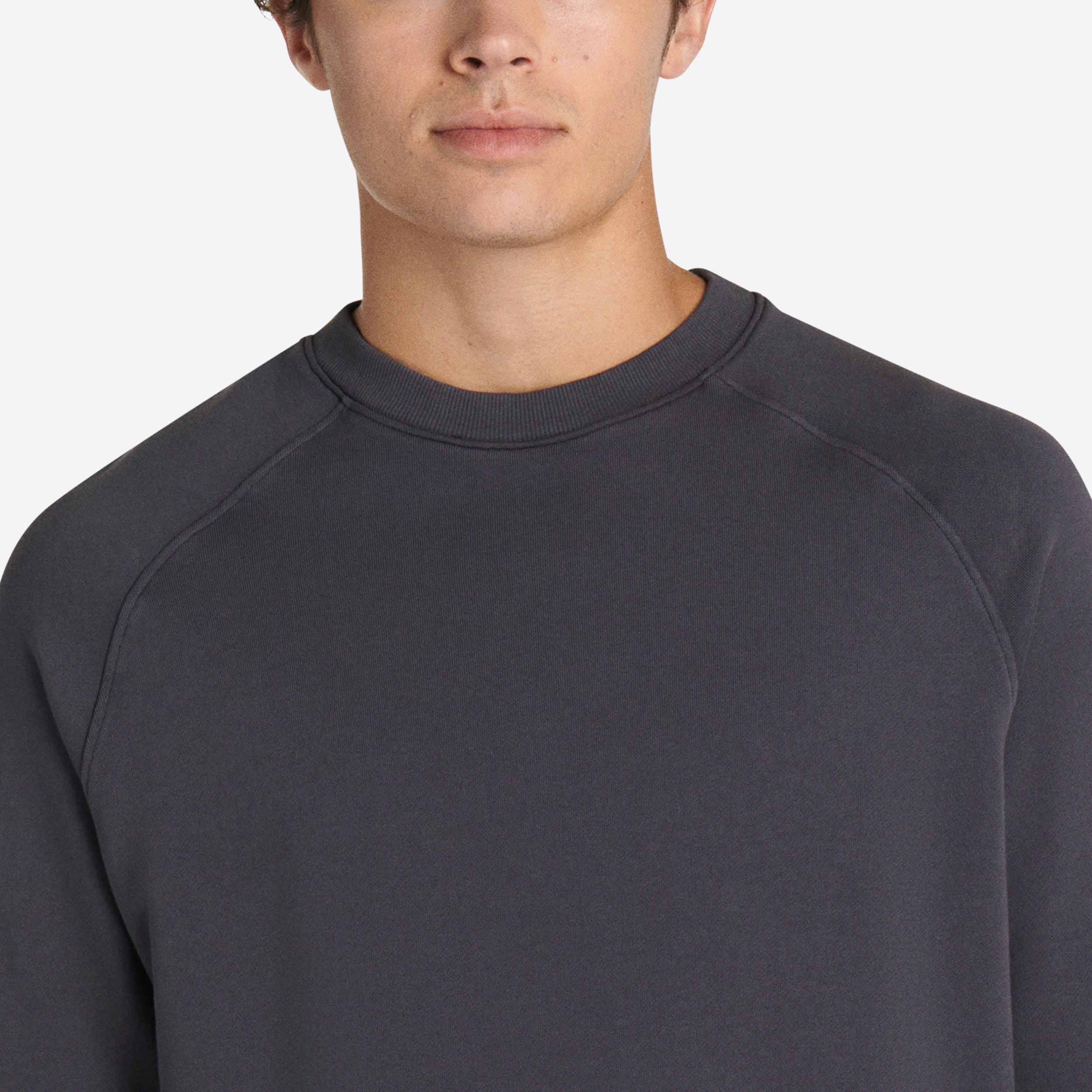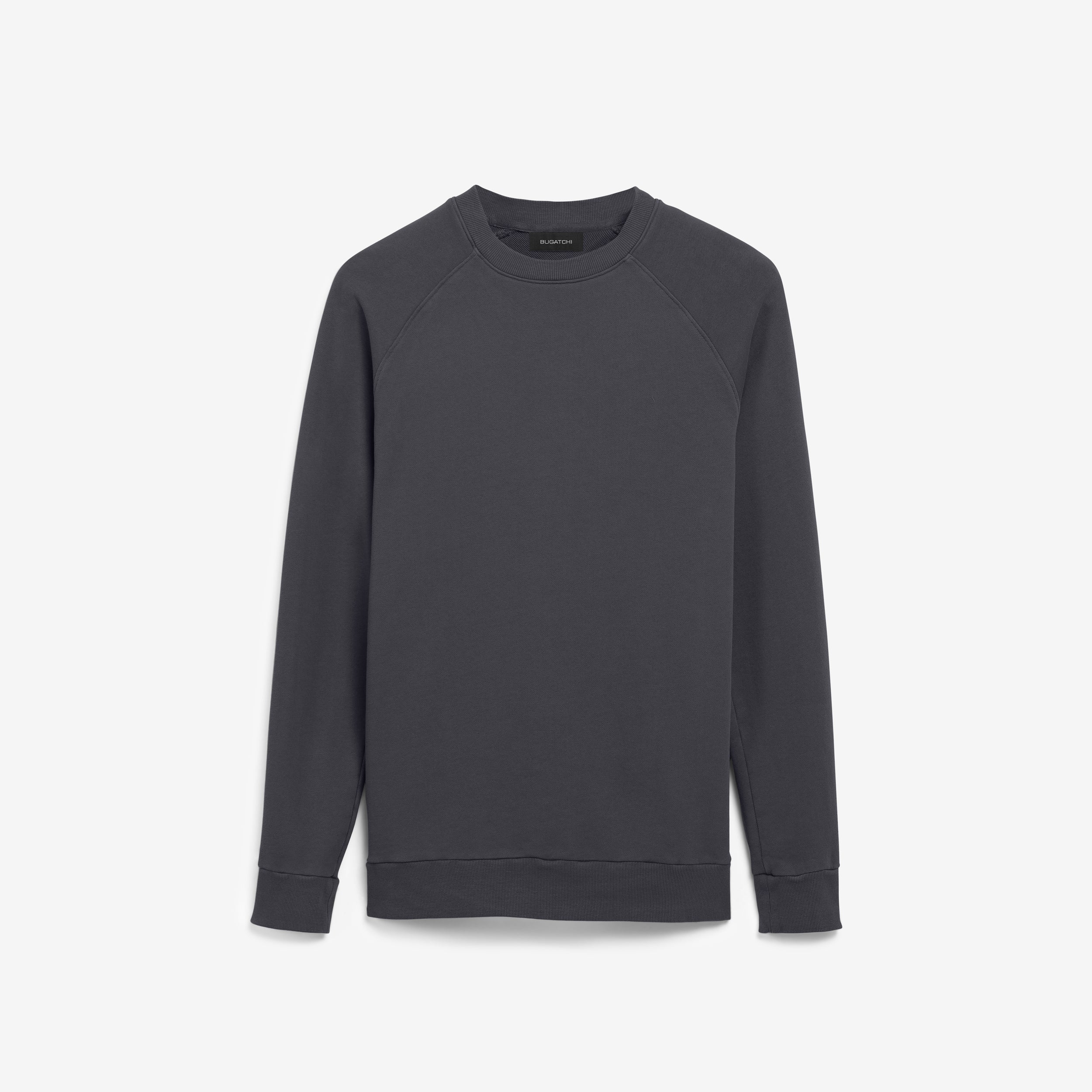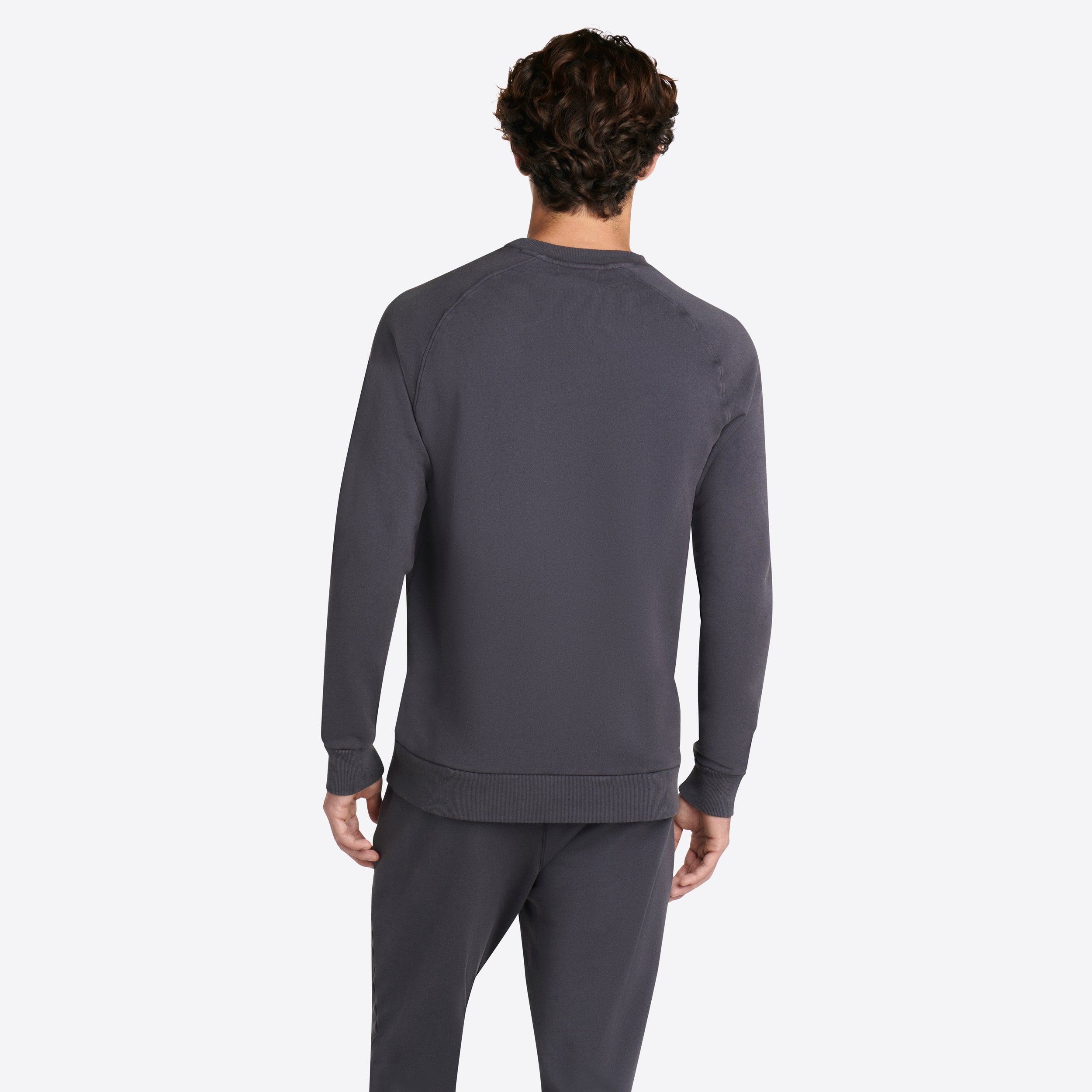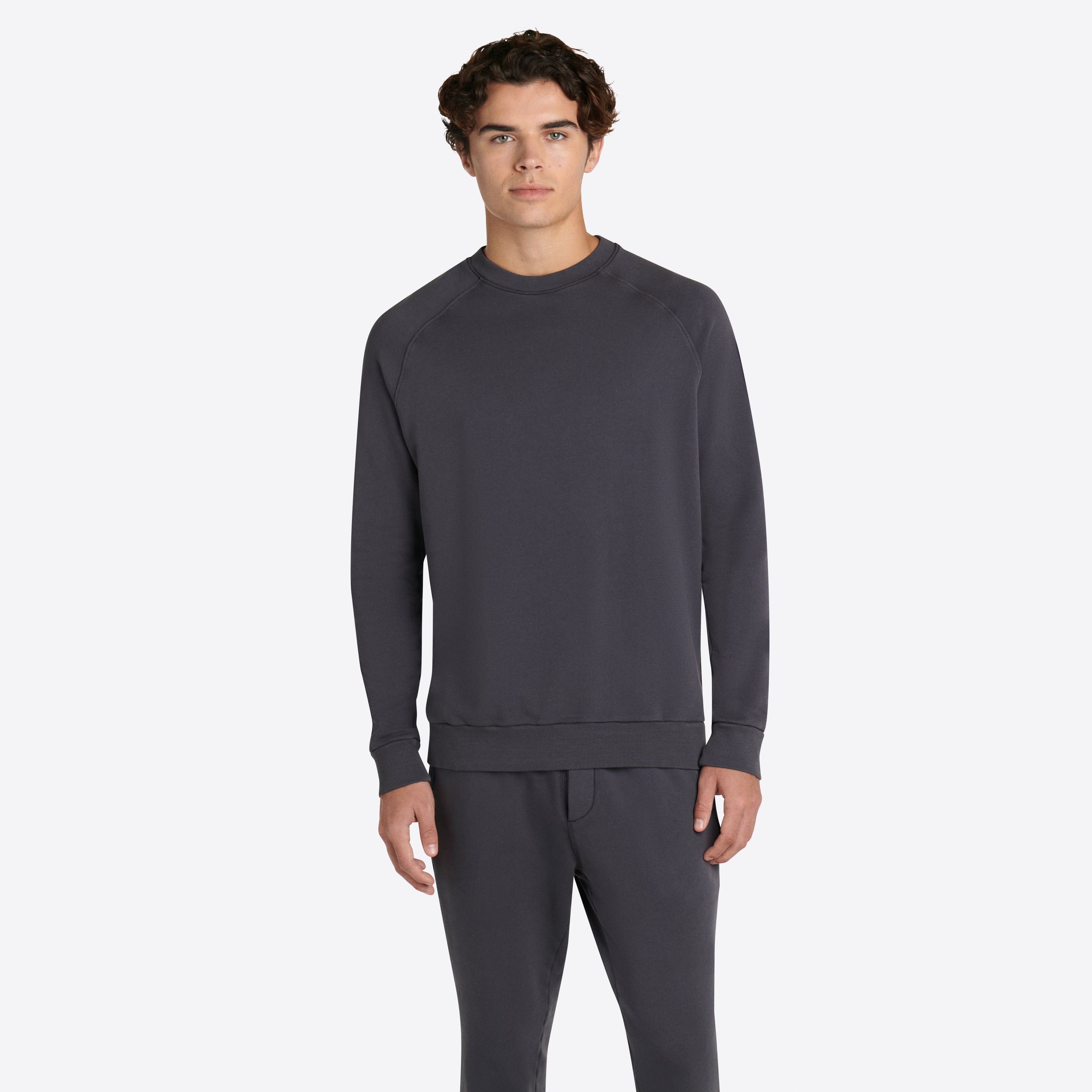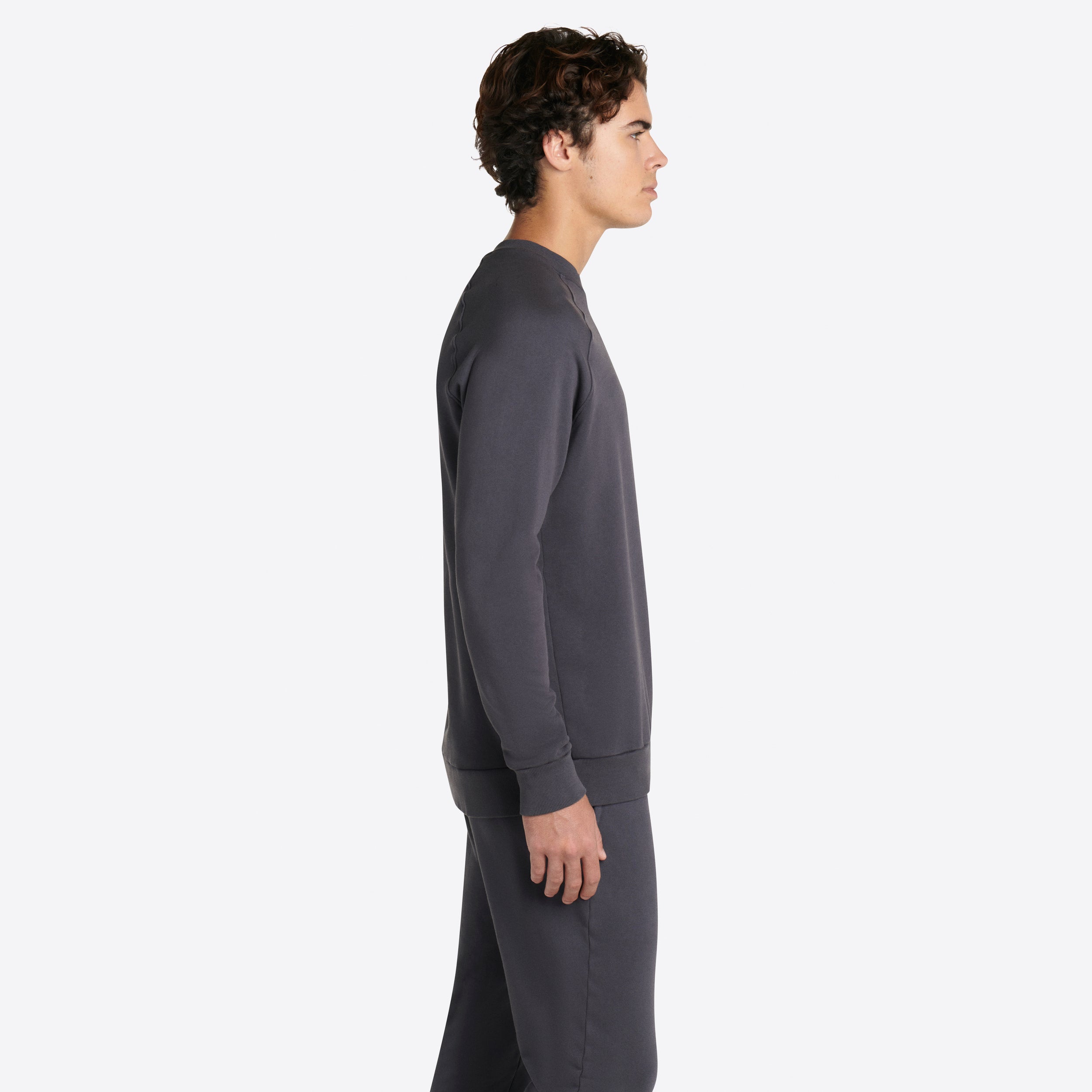 Solid long sleeve crew neck in COMFORT soft 100% cotton with rib knit neckline, cuffs and waistband.