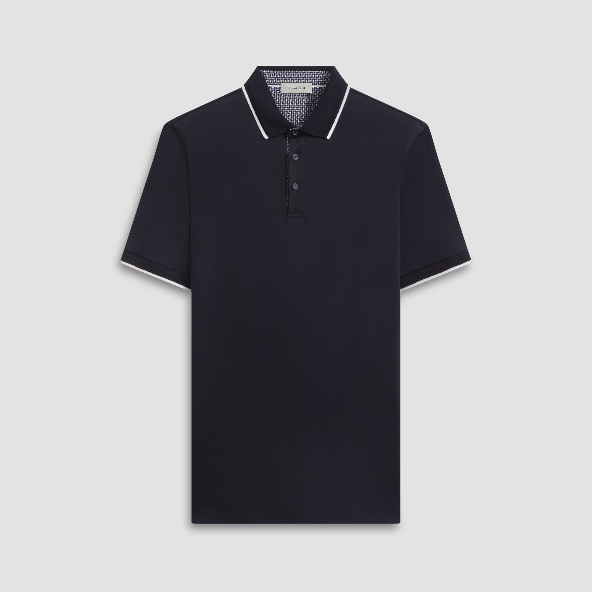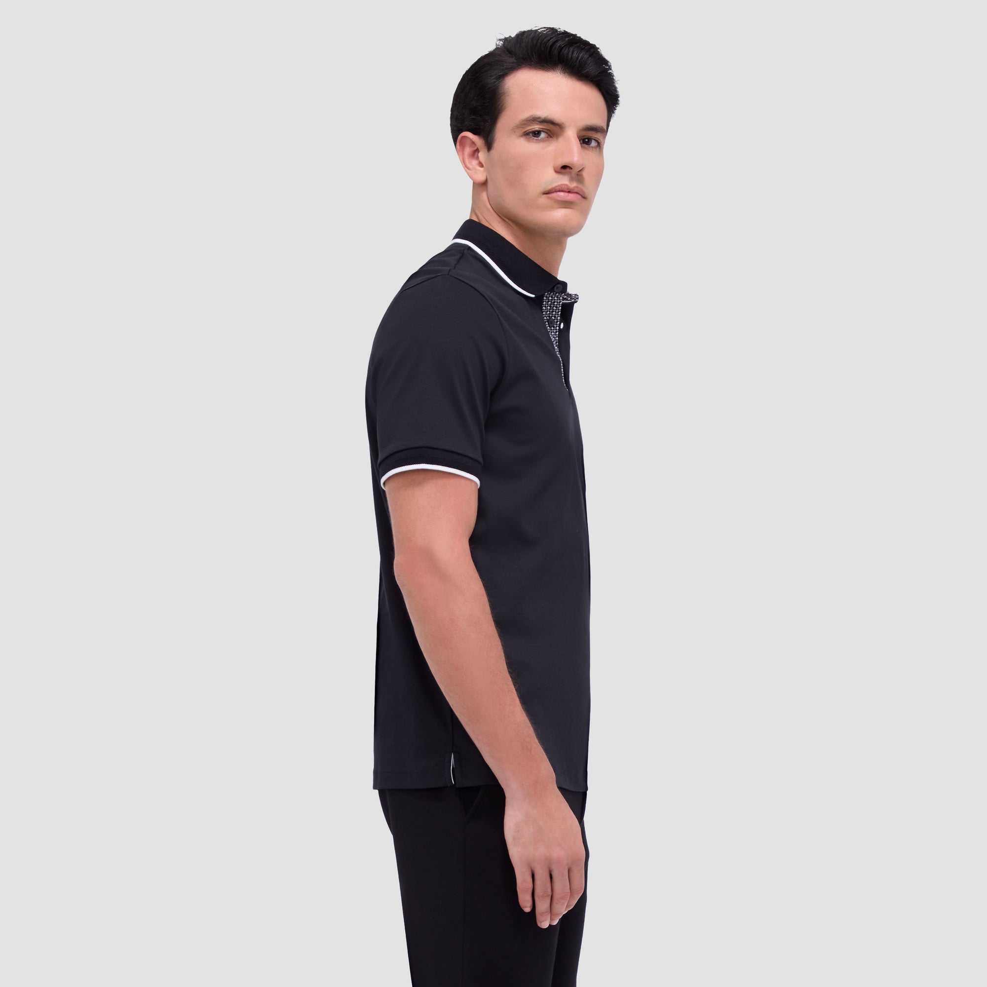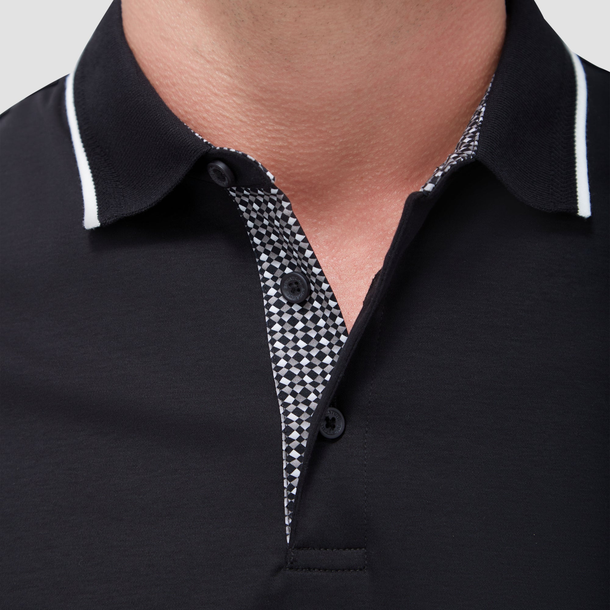 Experience the ultimate in comfort and style with this solid-colored polo, crafted from 100% Pima cotton featuring a striking printed contrast fabric, a classic three-button placket, and ribbed collar and sleeve cuffs accented with chevron knit detail and contrast tipping. For a casual occasion or on the golf course, this polo effortlessly combines comfort and style.