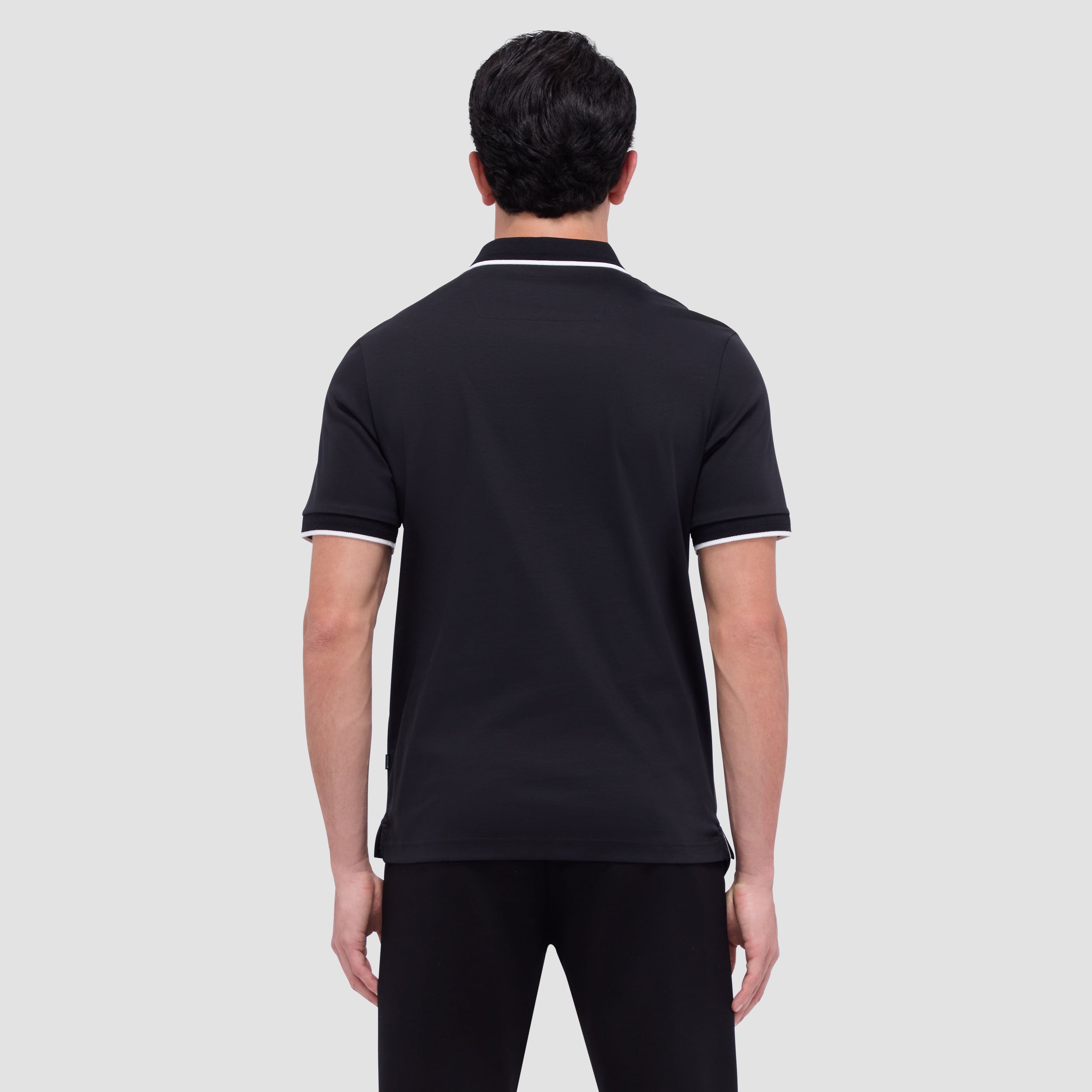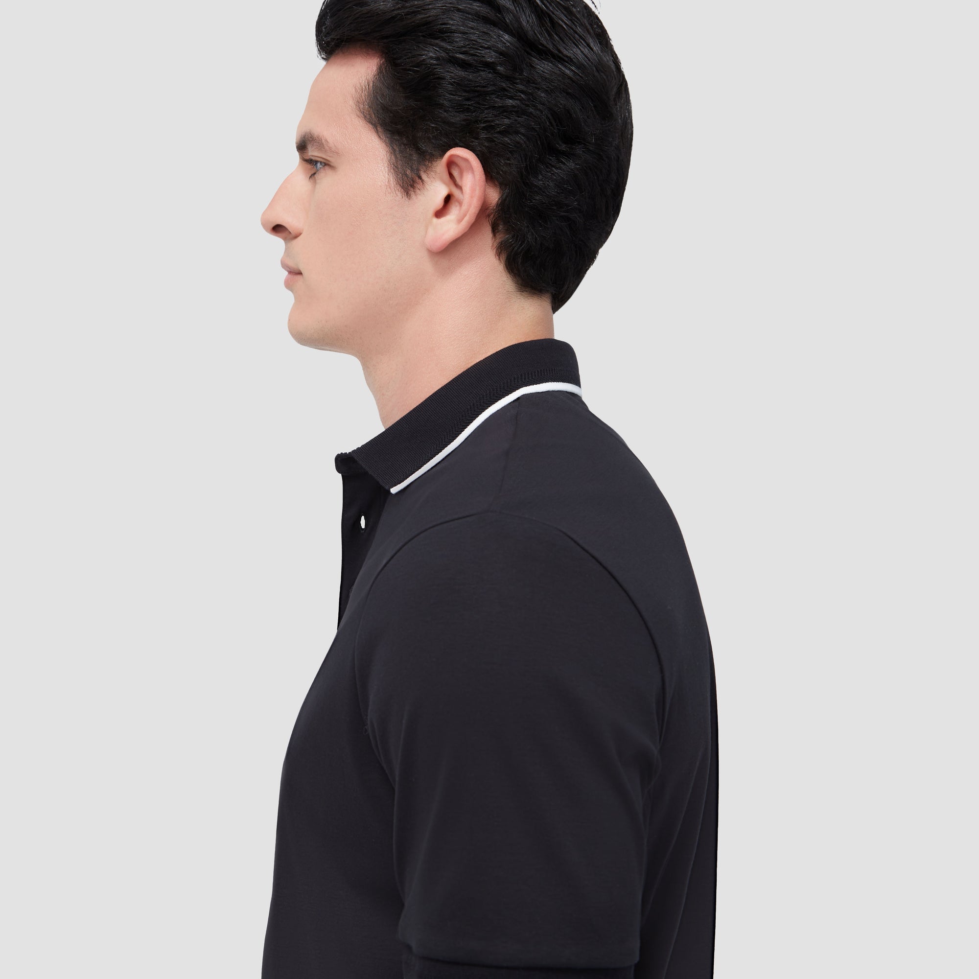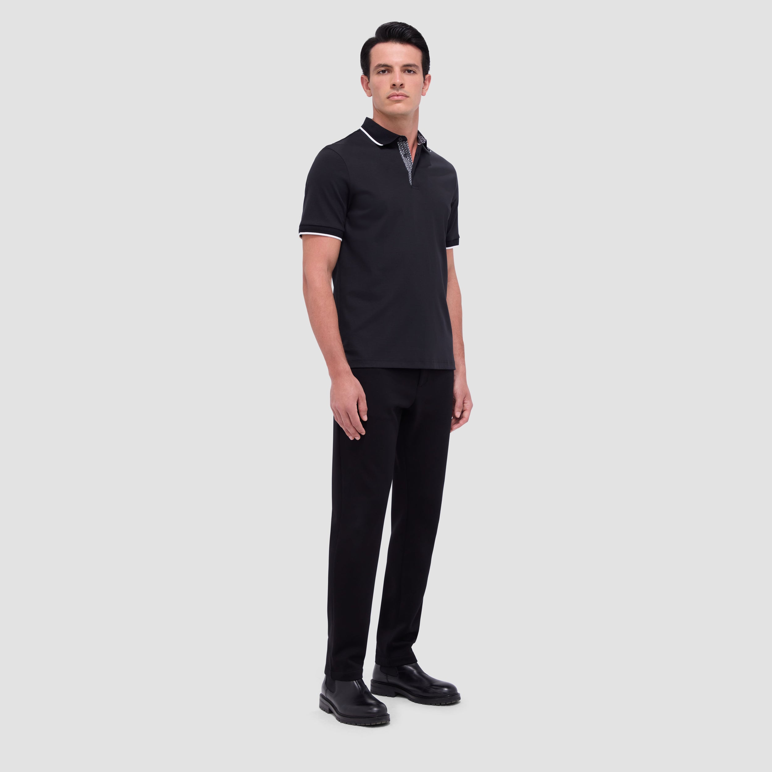 Experience the ultimate in comfort and style with this solid-colored polo, crafted from 100% Pima cotton featuring a striking printed contrast fabric, a classic three-button placket, and ribbed collar and sleeve cuffs accented with chevron knit detail and contrast tipping. For a casual occasion or on the golf course, this polo effortlessly combines comfort and style.
