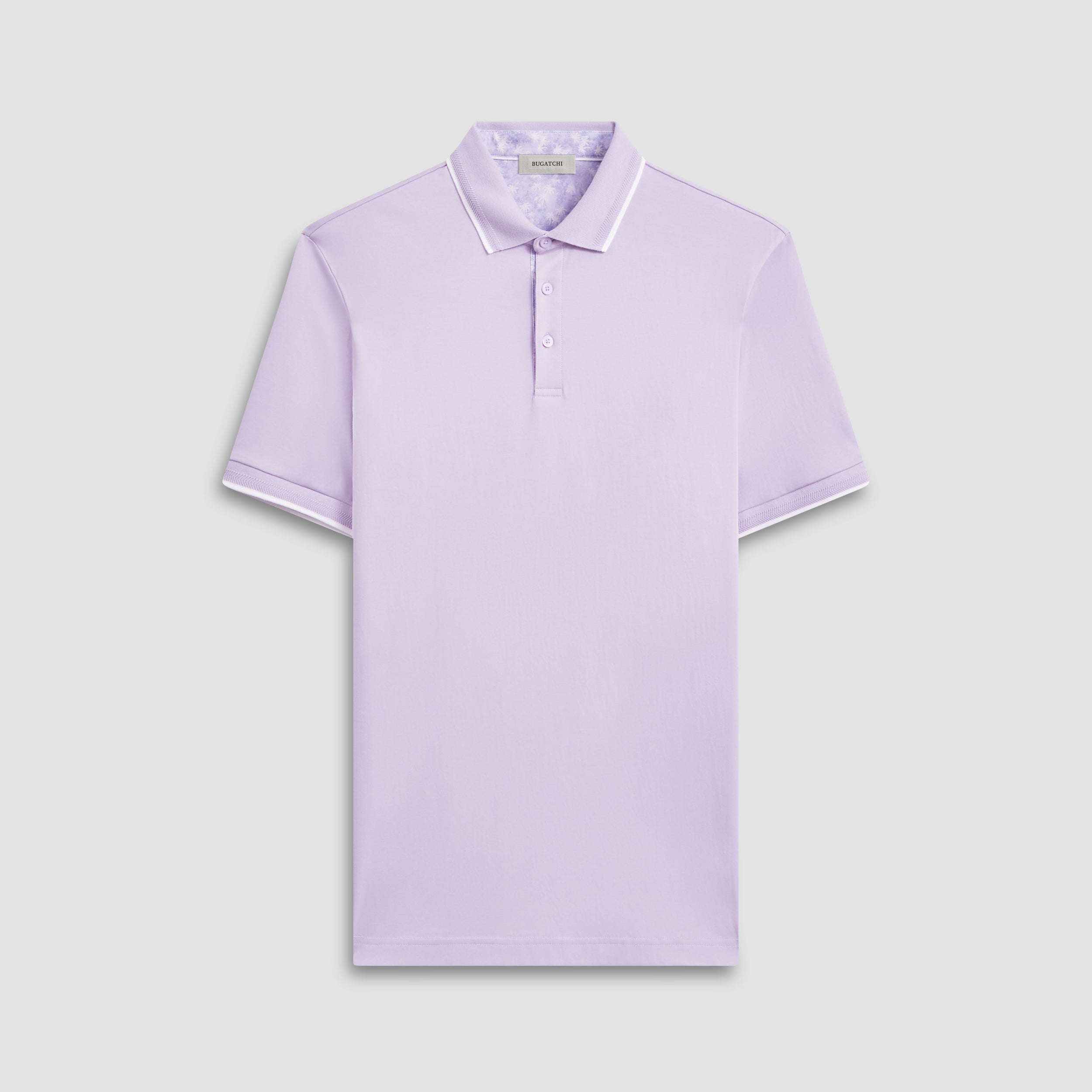 Experience the ultimate in comfort and style with this solid-colored polo, crafted from 100% Pima cotton featuring a striking printed contrast fabric, a classic three-button placket, and ribbed collar and sleeve cuffs accented with chevron knit detail and contrast tipping. For a casual occasion or on the golf course, this polo effortlessly combines comfort and style.