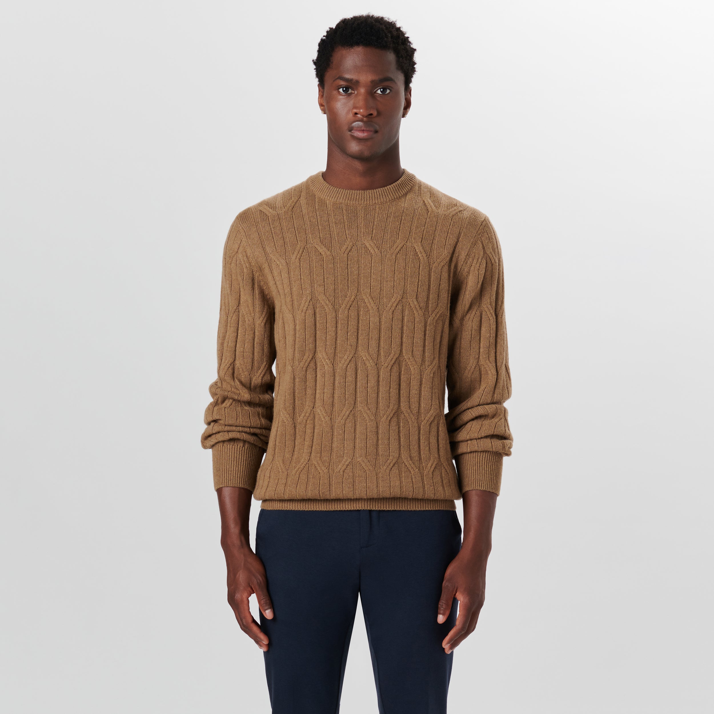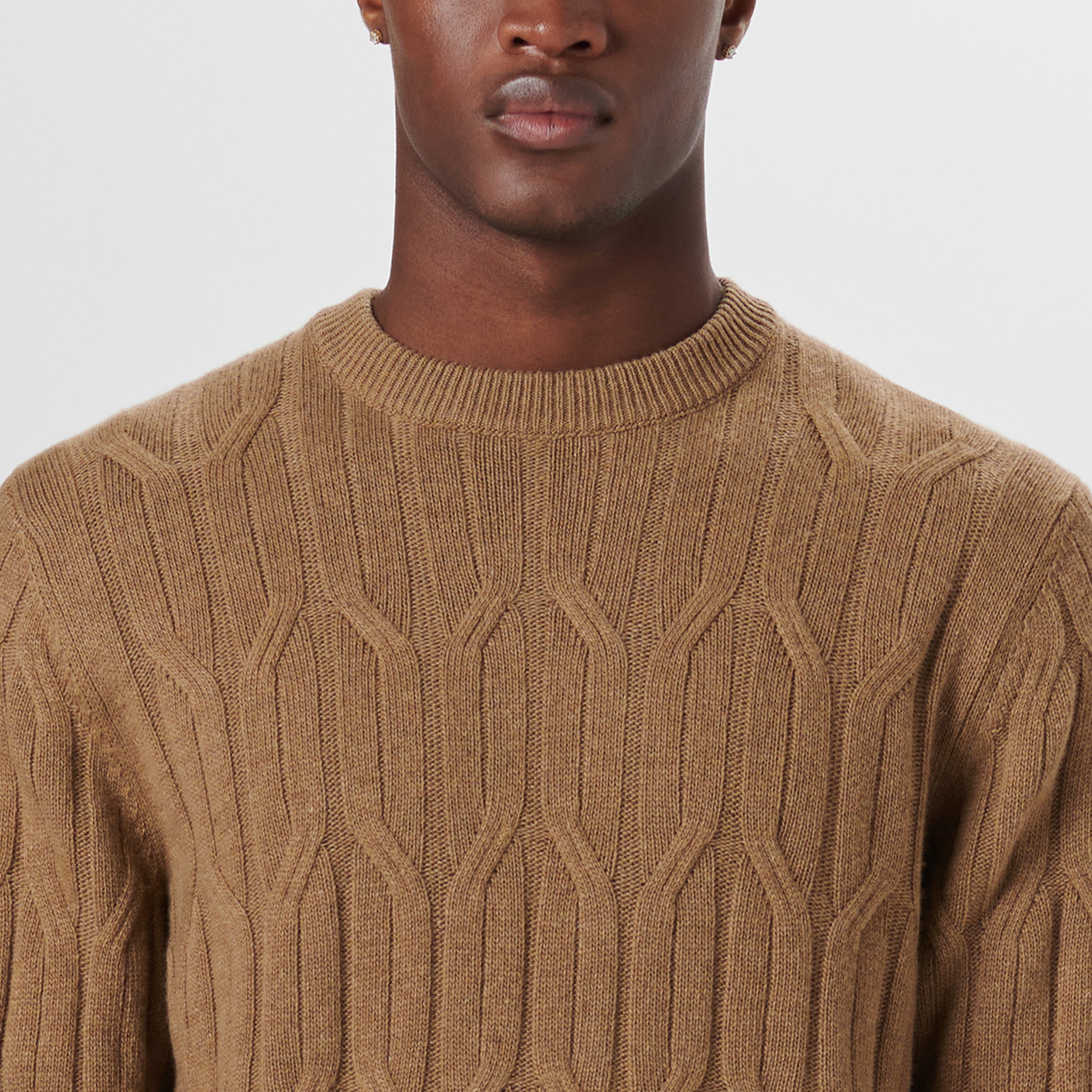 Crew Neck Cable Jacquard Sweater