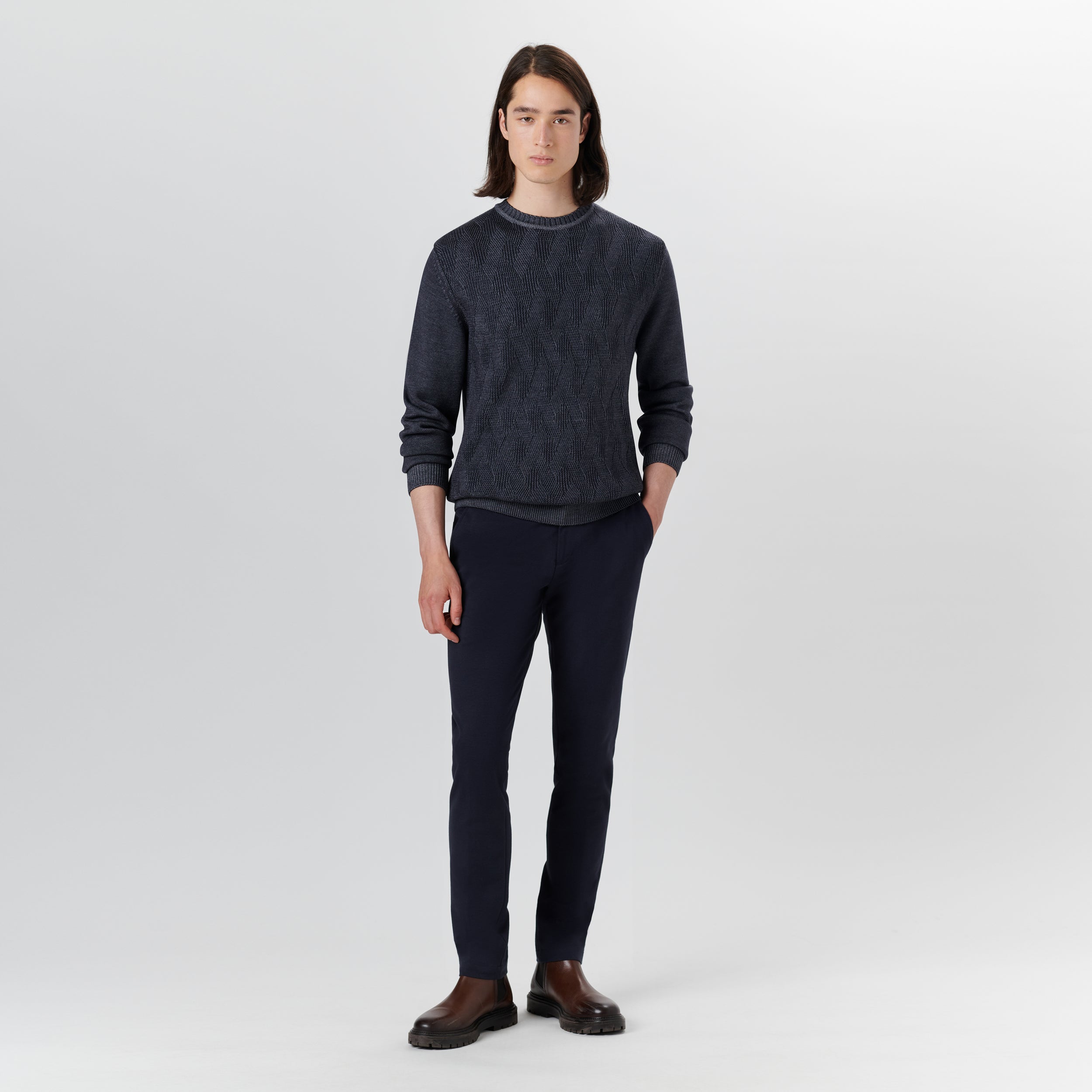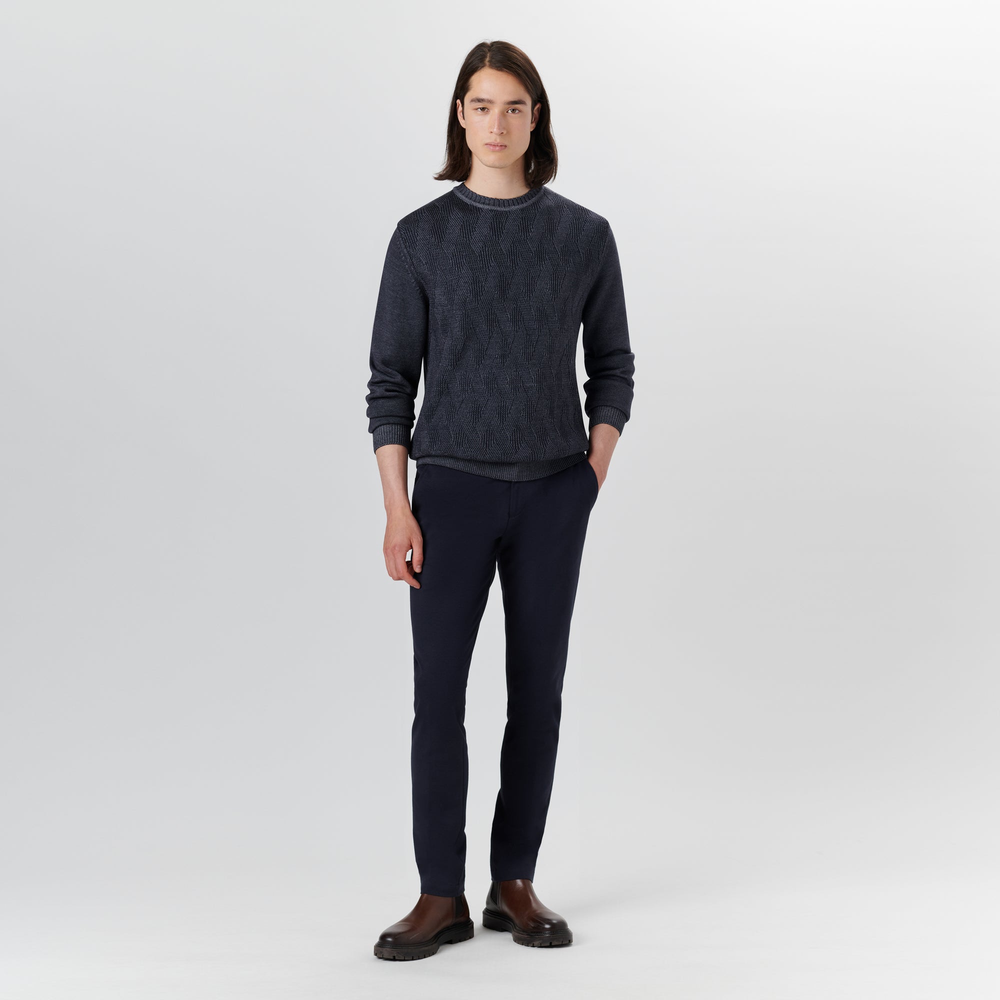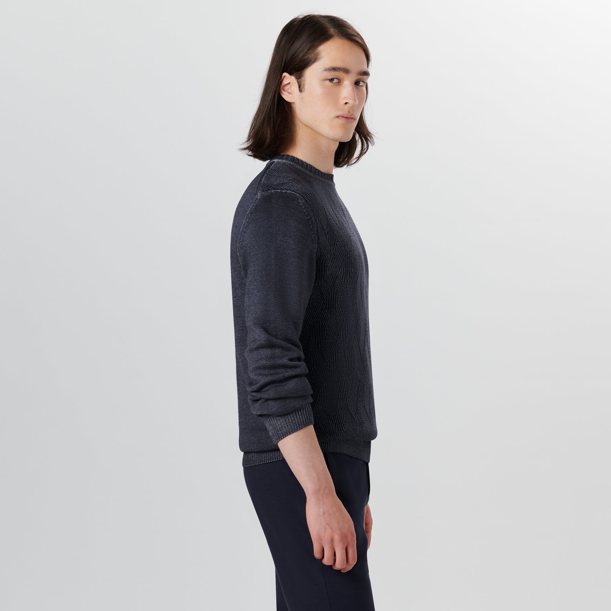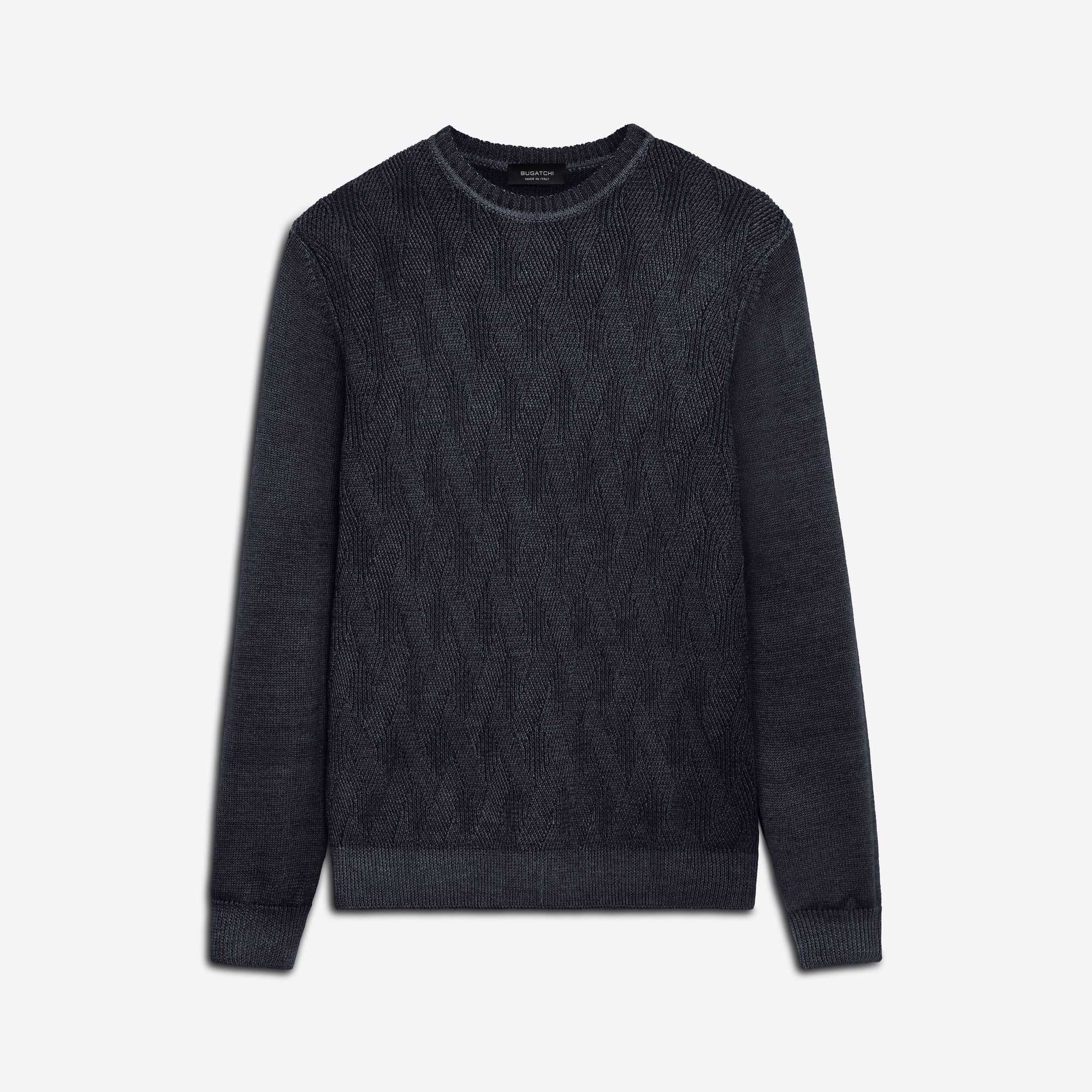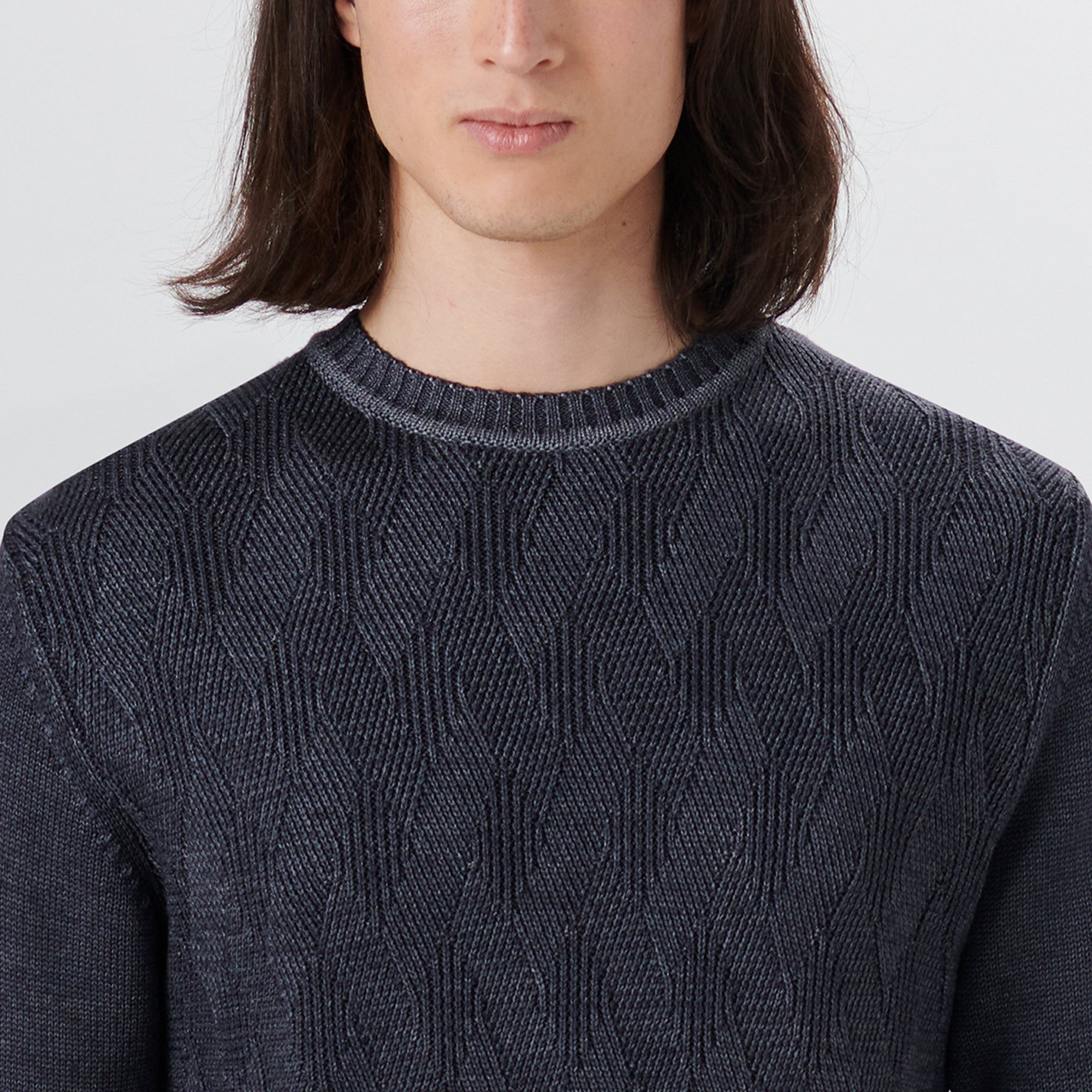 Crew neck sweater in diamond cable 100% extra fine merino wool with Harmony 4.0 special finishing. This sweater is made with a high twist yarn that is breathable, hygroscopic, water repellent, machine washable and crease proof for long lasting performance wash after wash. Made in Italy.