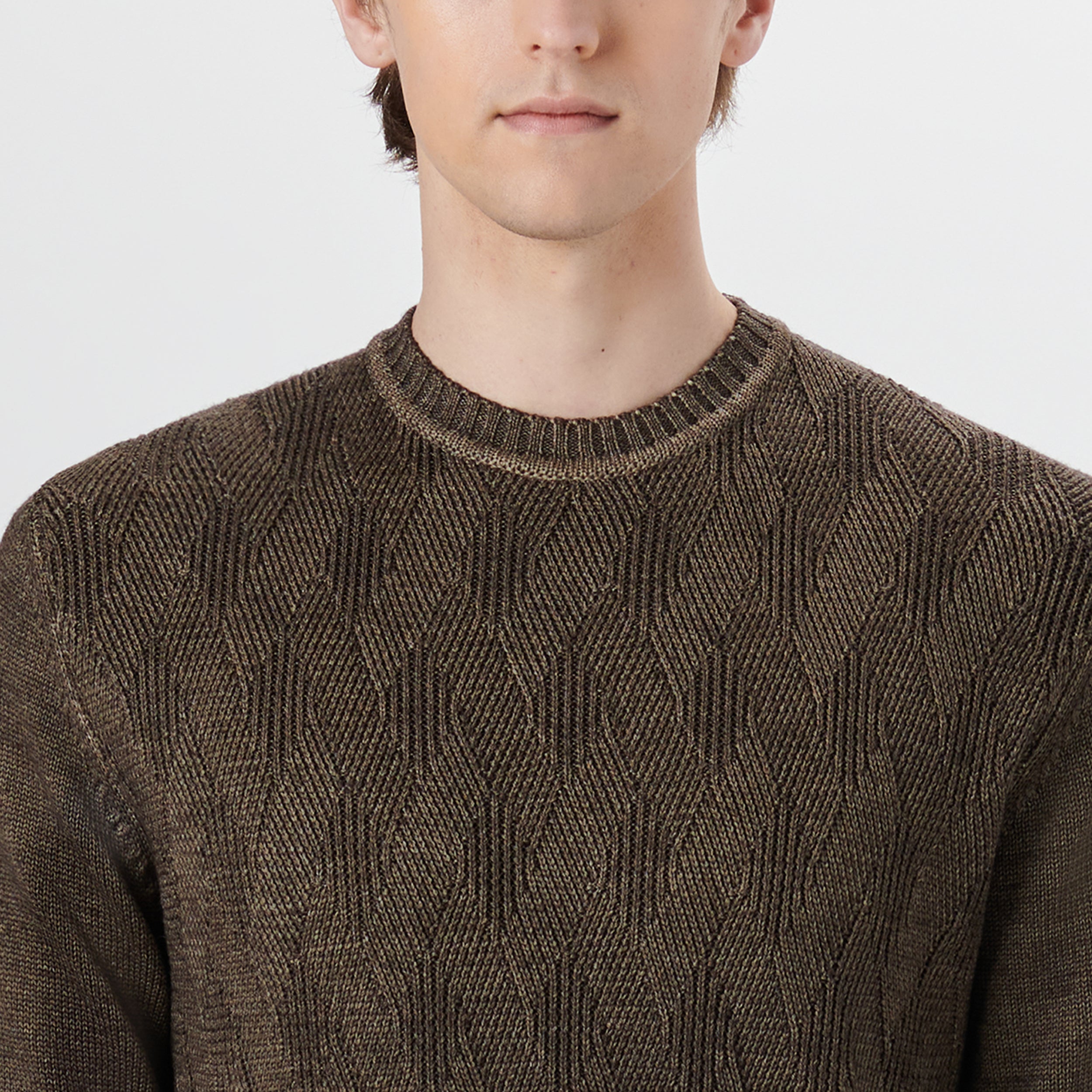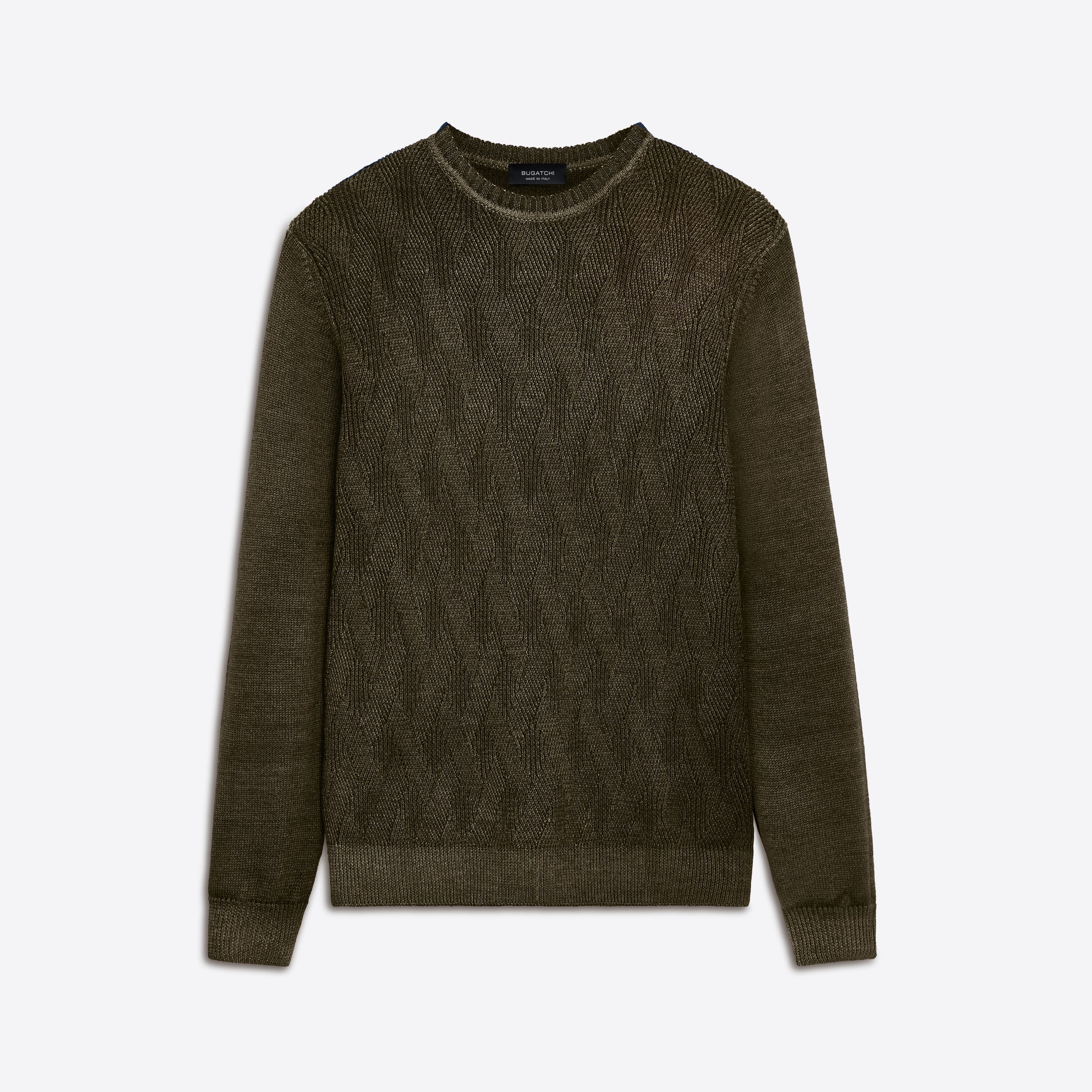 Crew neck sweater in diamond cable 100% extra fine merino wool with Harmony 4.0 special finishing. This sweater is made with a high twist yarn that is breathable, hygroscopic, water repellent, machine washable and crease proof for long lasting performance wash after wash. Made in Italy.