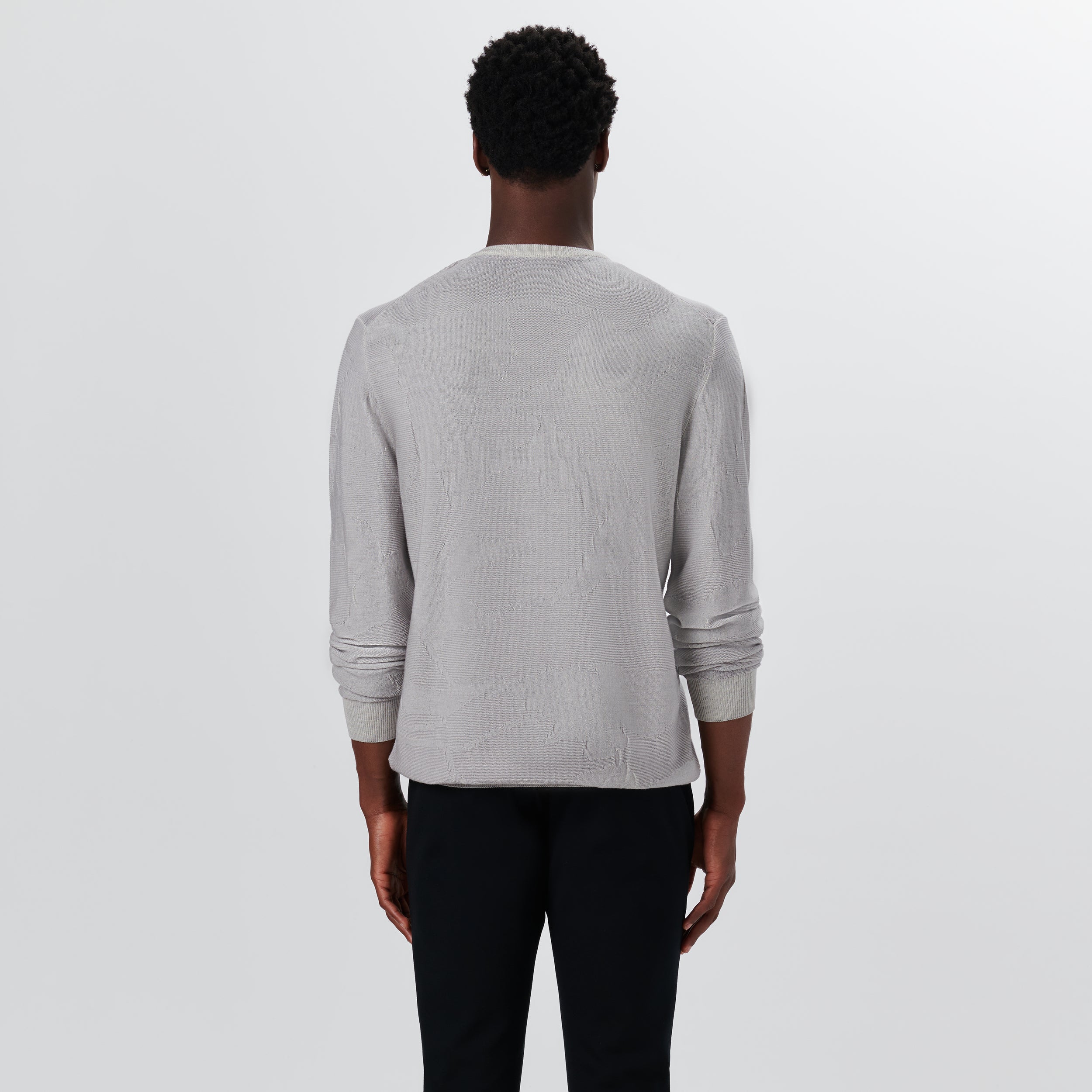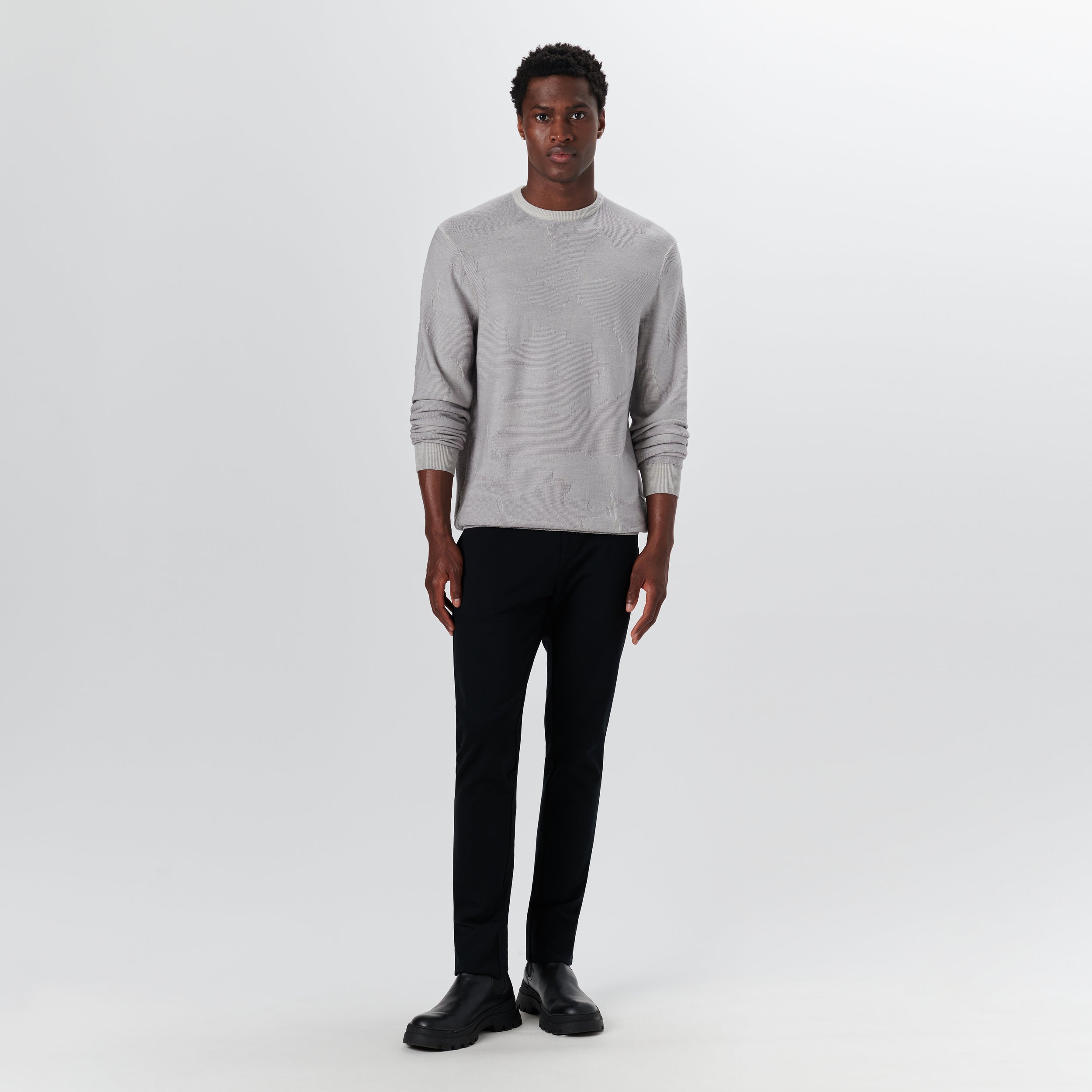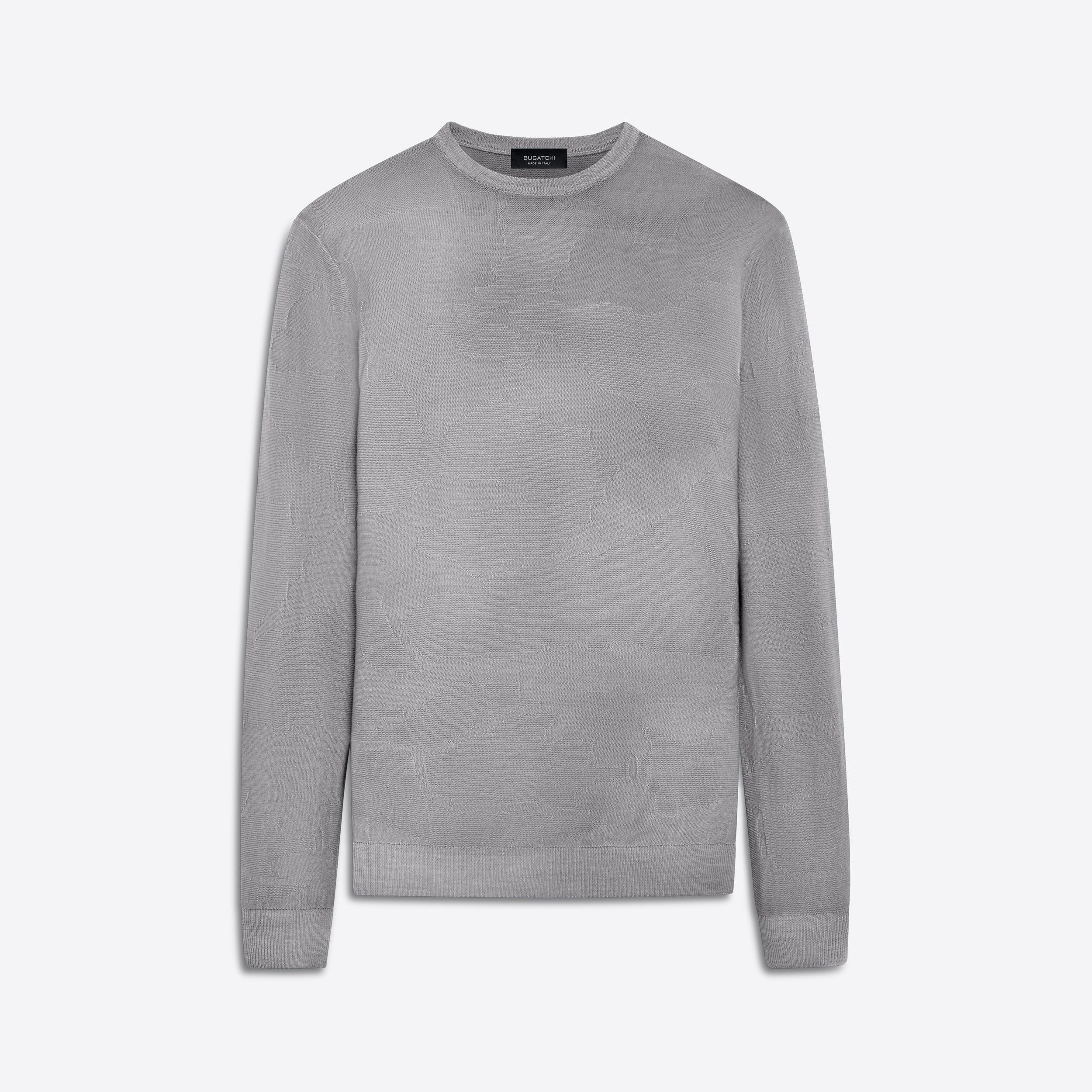Crew neck sweater in jacquard knit 100% extra fine merino wool with Harmony 4.0 special finishing. This sweater is made with a high twist yarn that is breathable, hygroscopic, water repellent, machine washable and crease proof for long lasting performance wash after wash. Made in Italy.