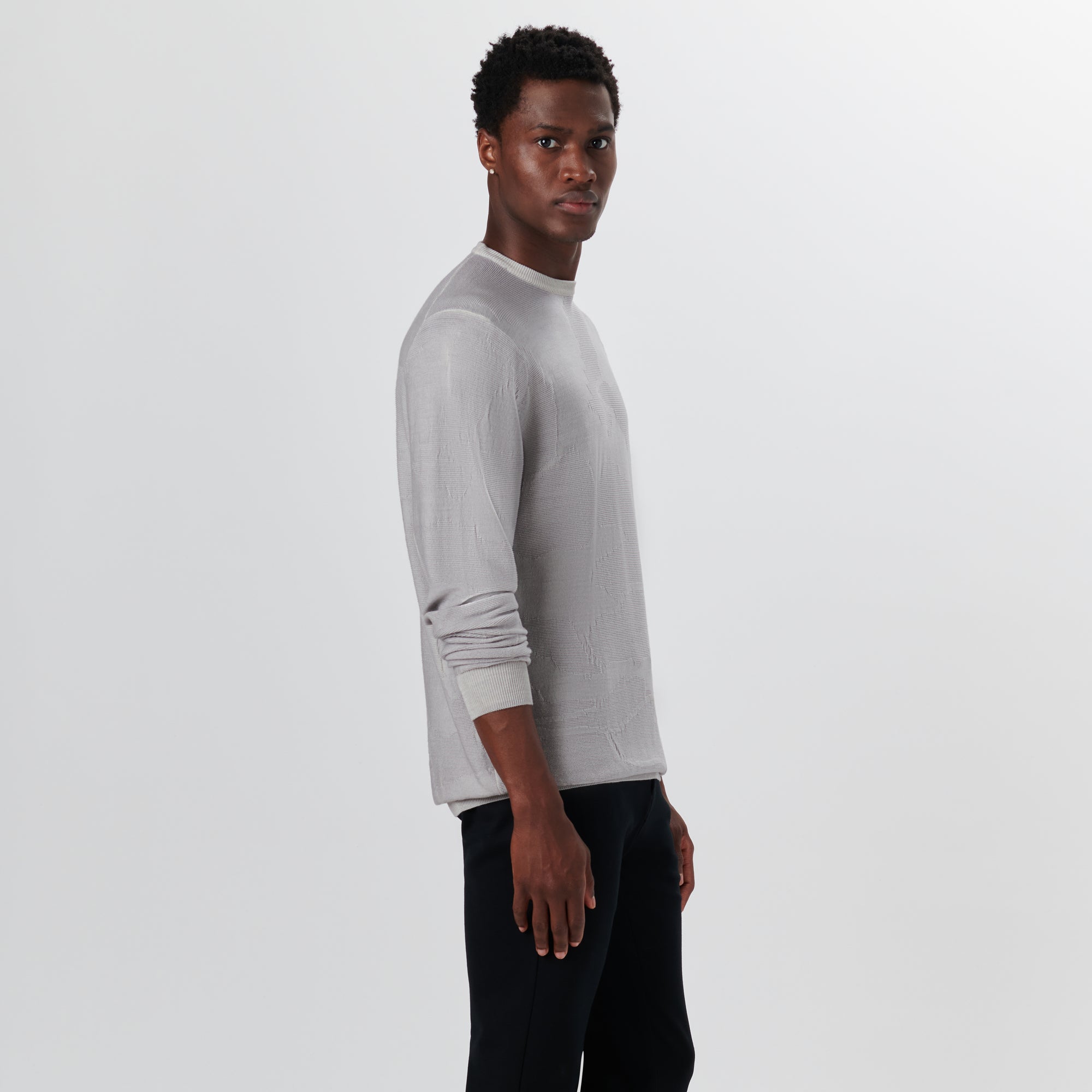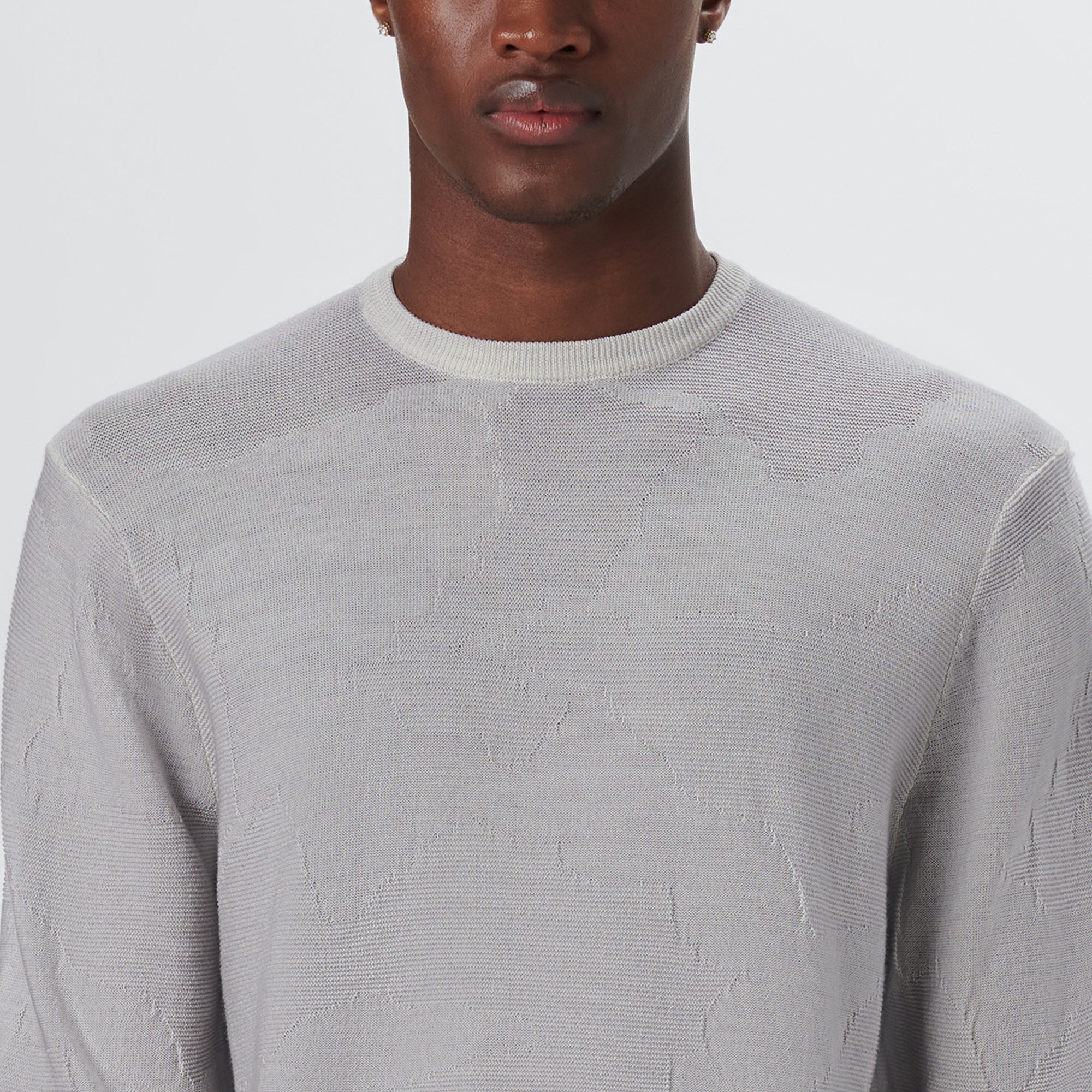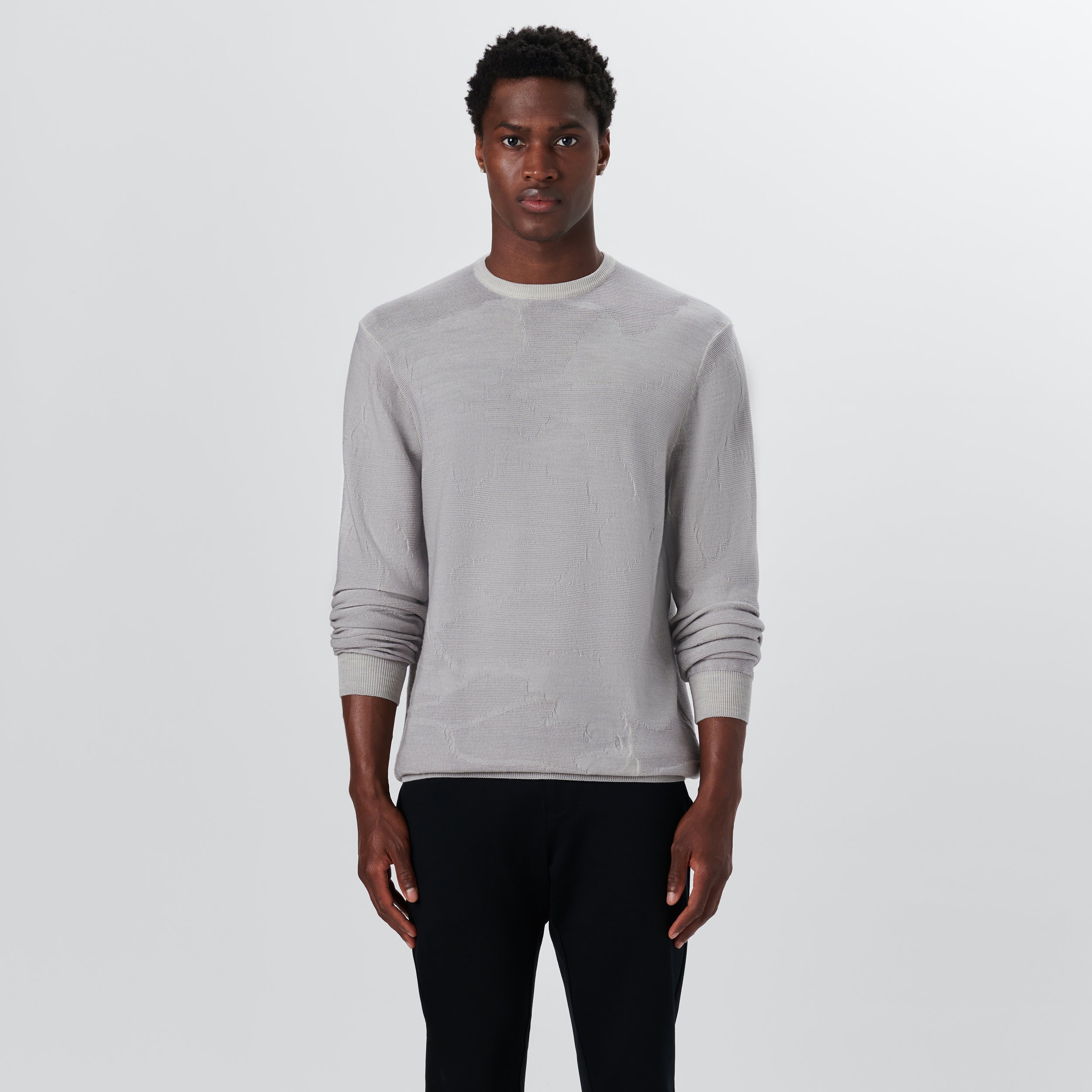 Crew neck sweater in jacquard knit 100% extra fine merino wool with Harmony 4.0 special finishing. This sweater is made with a high twist yarn that is breathable, hygroscopic, water repellent, machine washable and crease proof for long lasting performance wash after wash. Made in Italy.