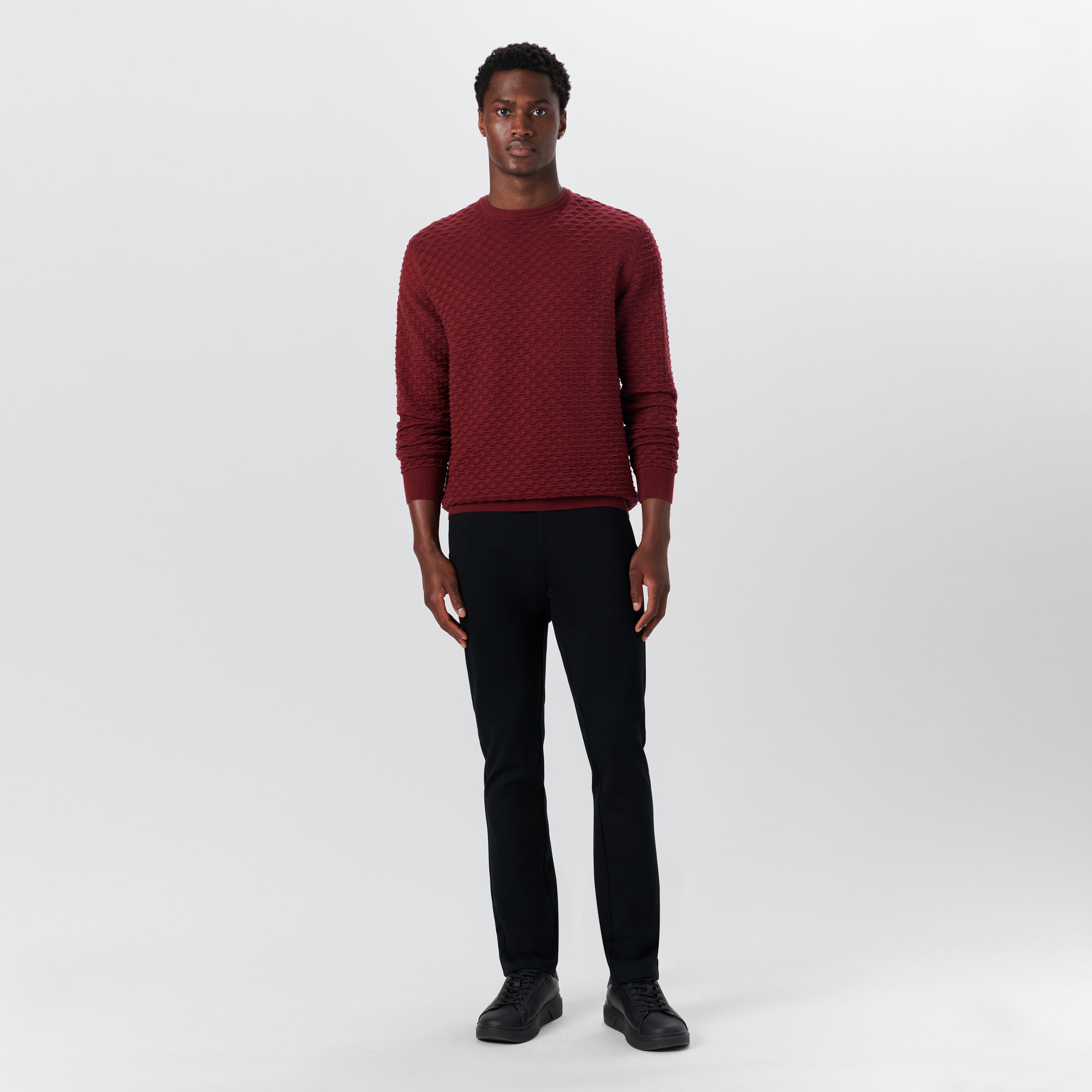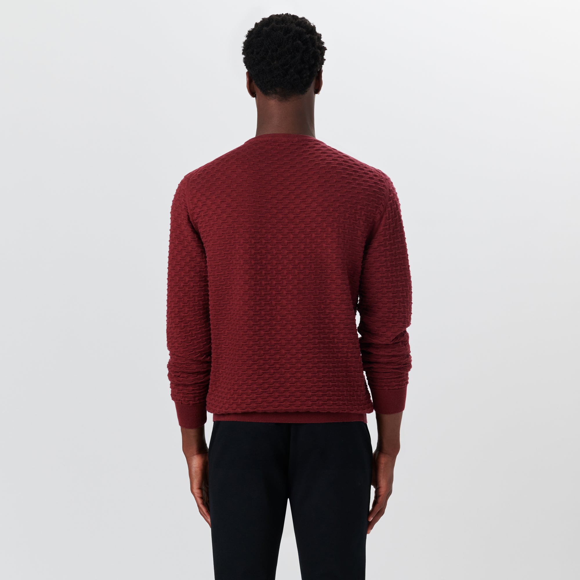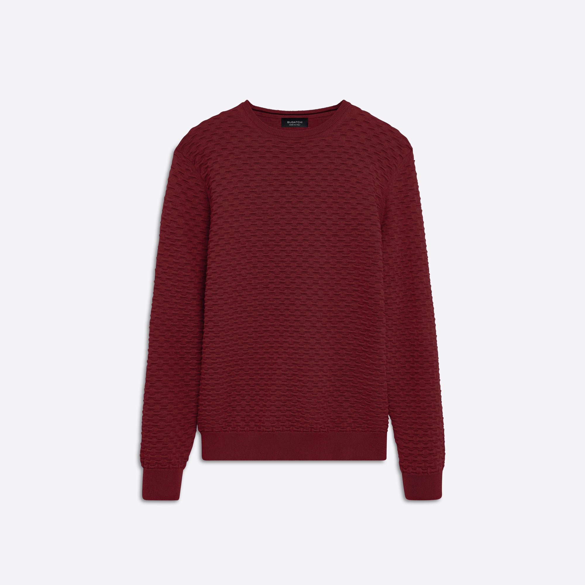 Crew neck sweater in jacquard wave knit cotton and cashmere blend with ribbed collar, cuffs and waistband. Made in Italy.