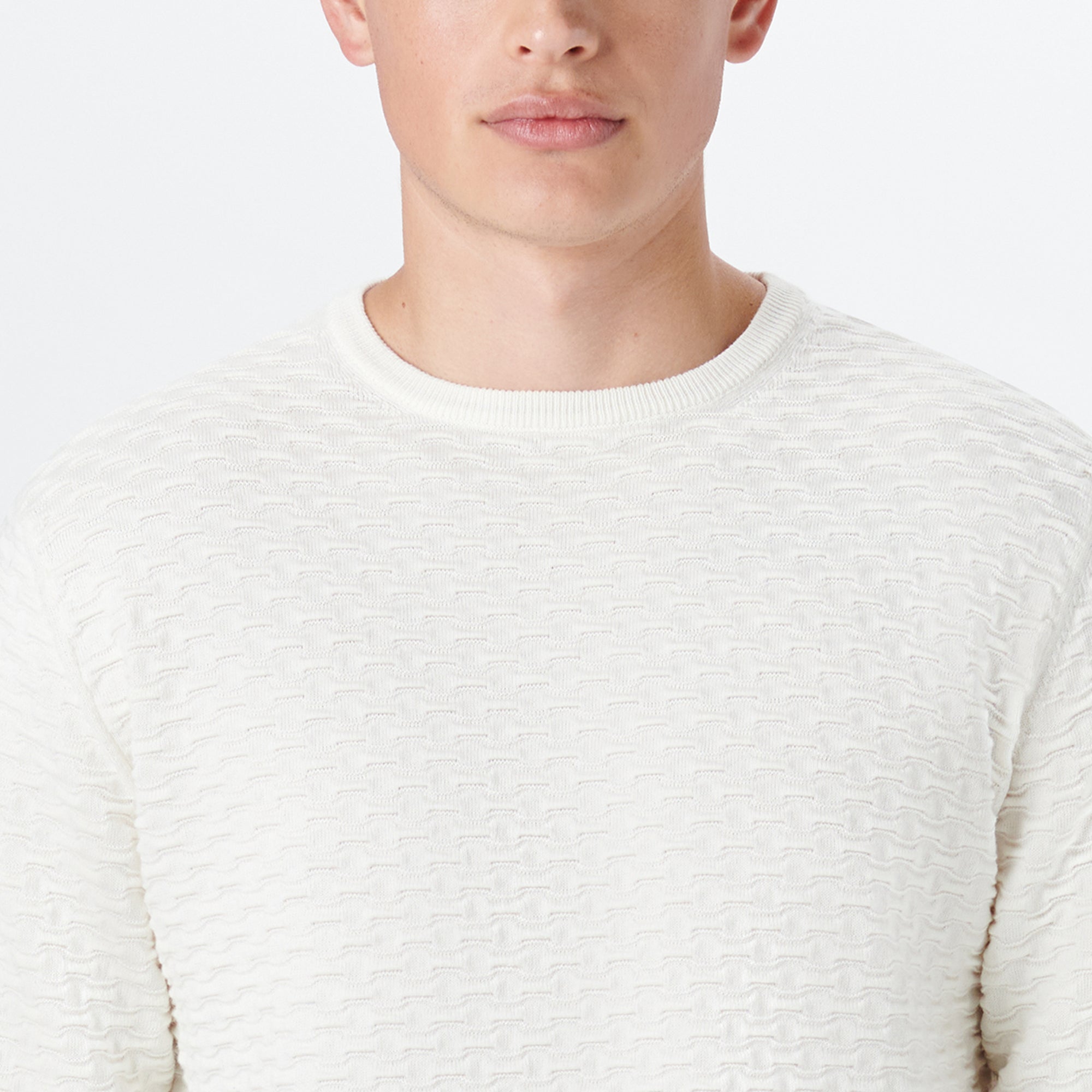 Crew Neck Jacquard Wave Sweater