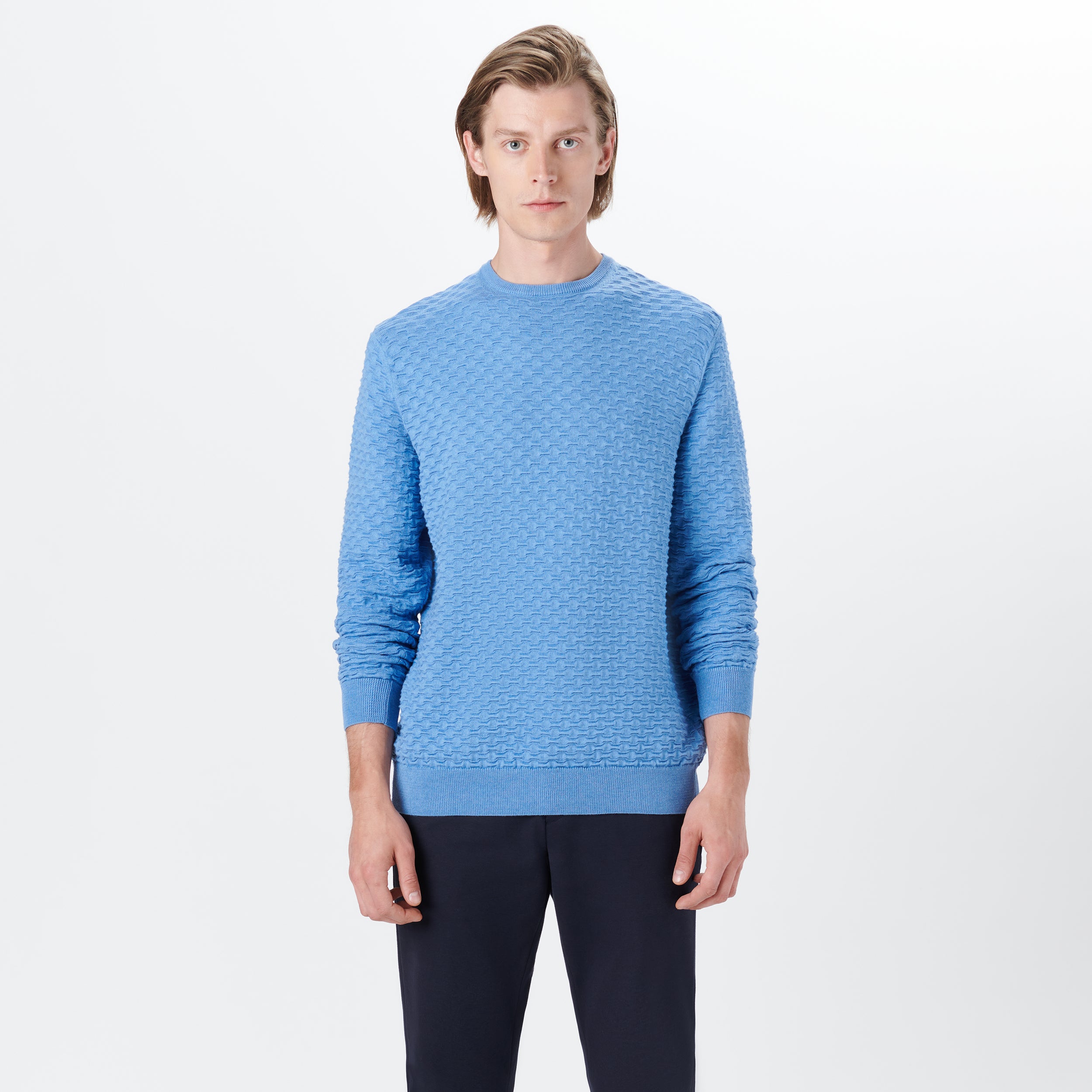 Crew neck sweater in jacquard wave knit cotton and cashmere blend with ribbed collar, cuffs and waistband. Made in Italy.