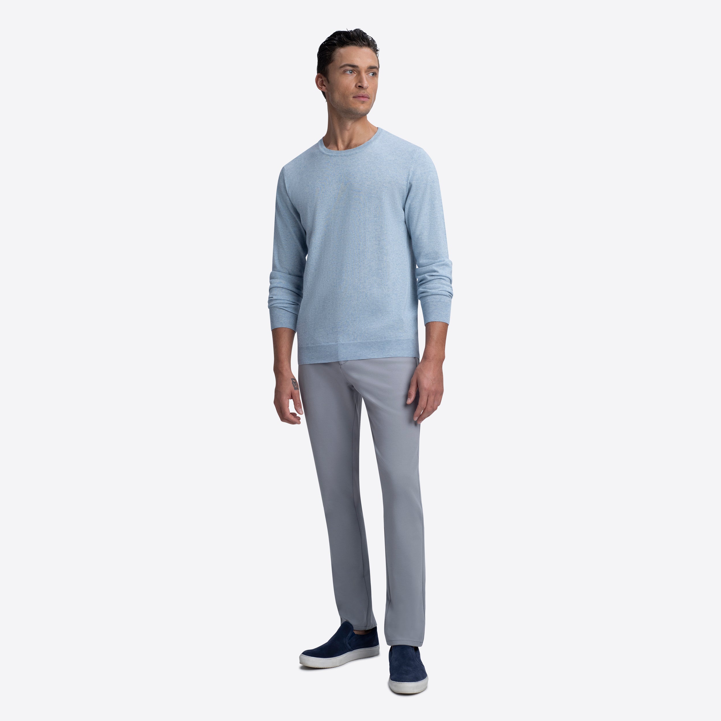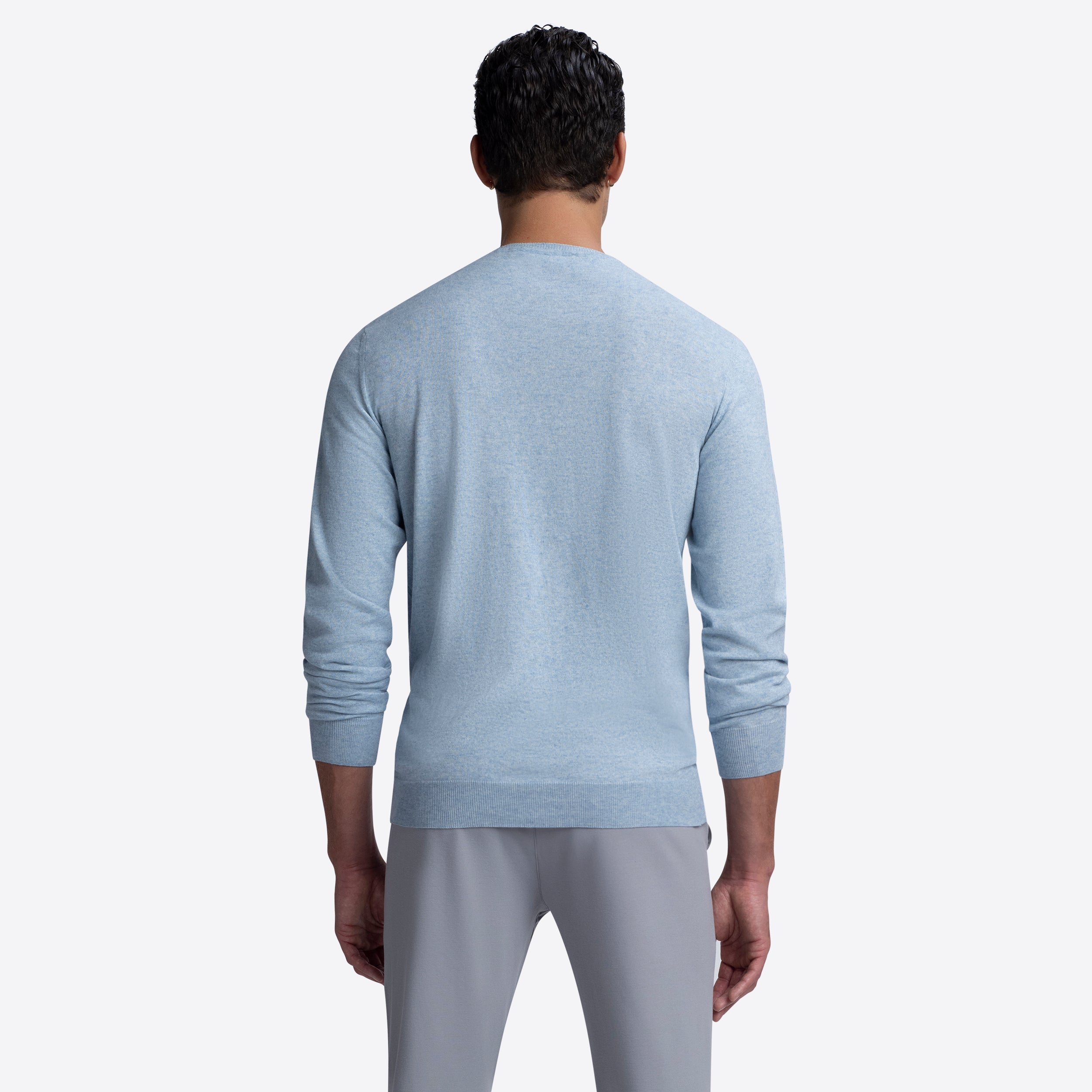 Crew neck sweater in melange cotton and cashmere blend with ribbed collar, cuffs and waistband. Made in Italy.