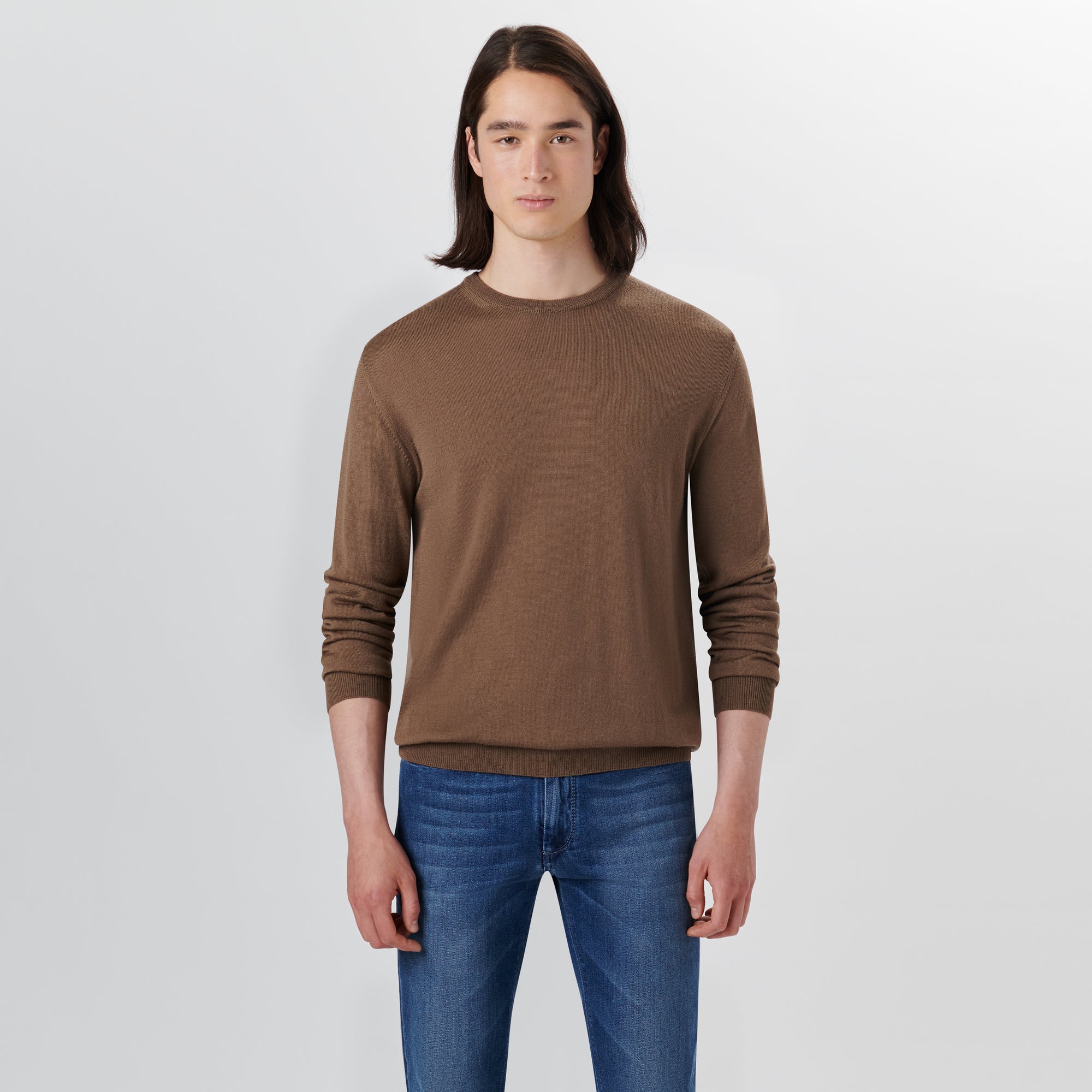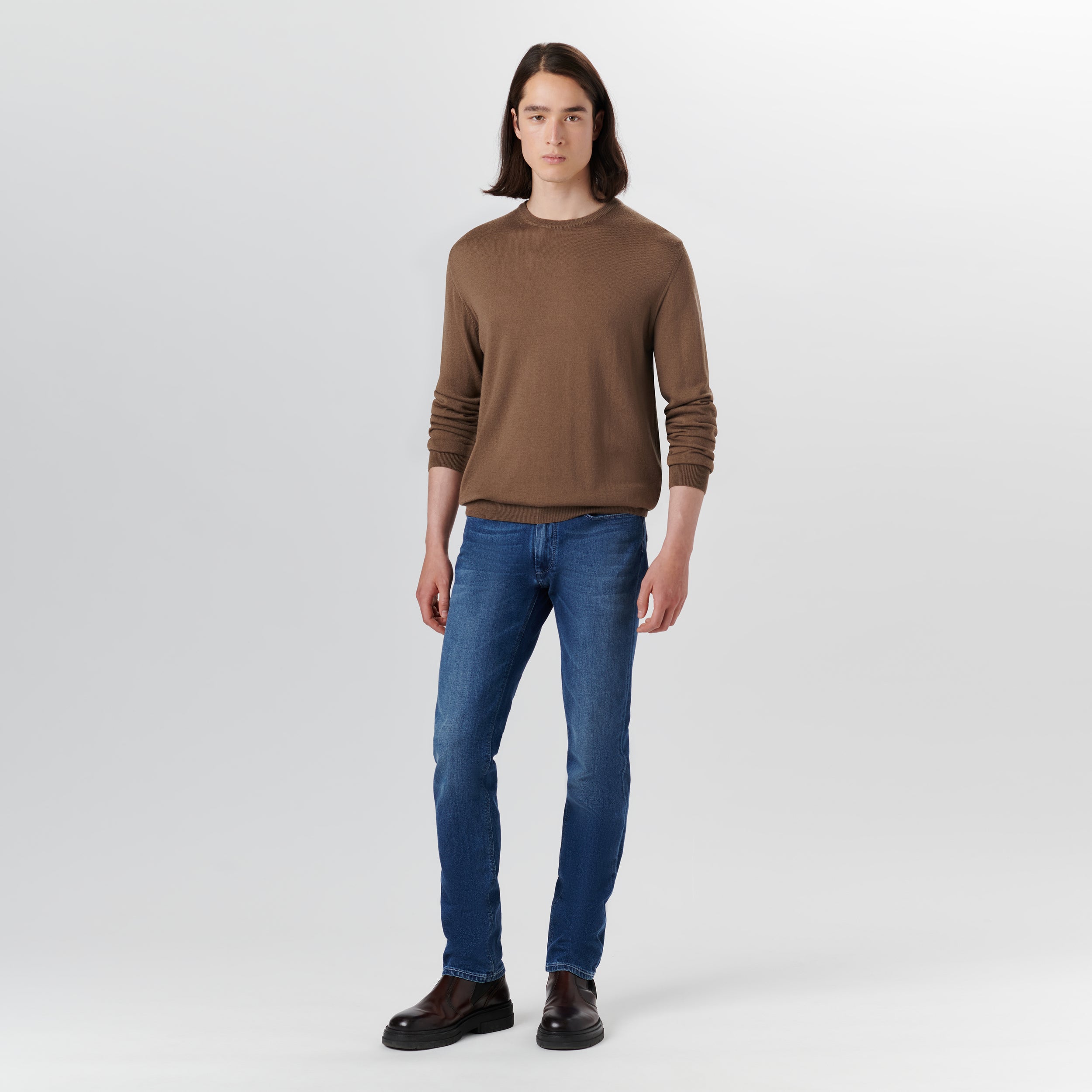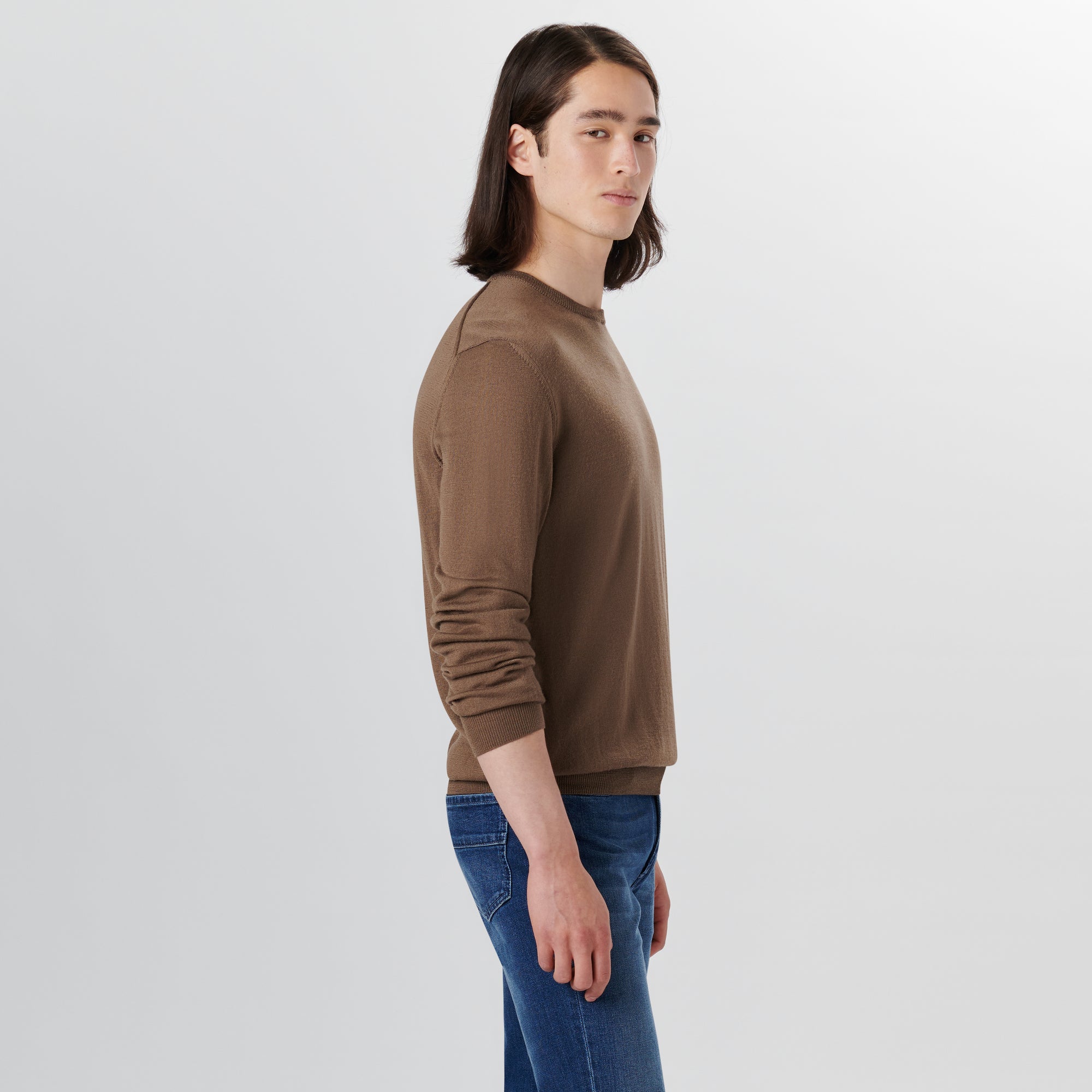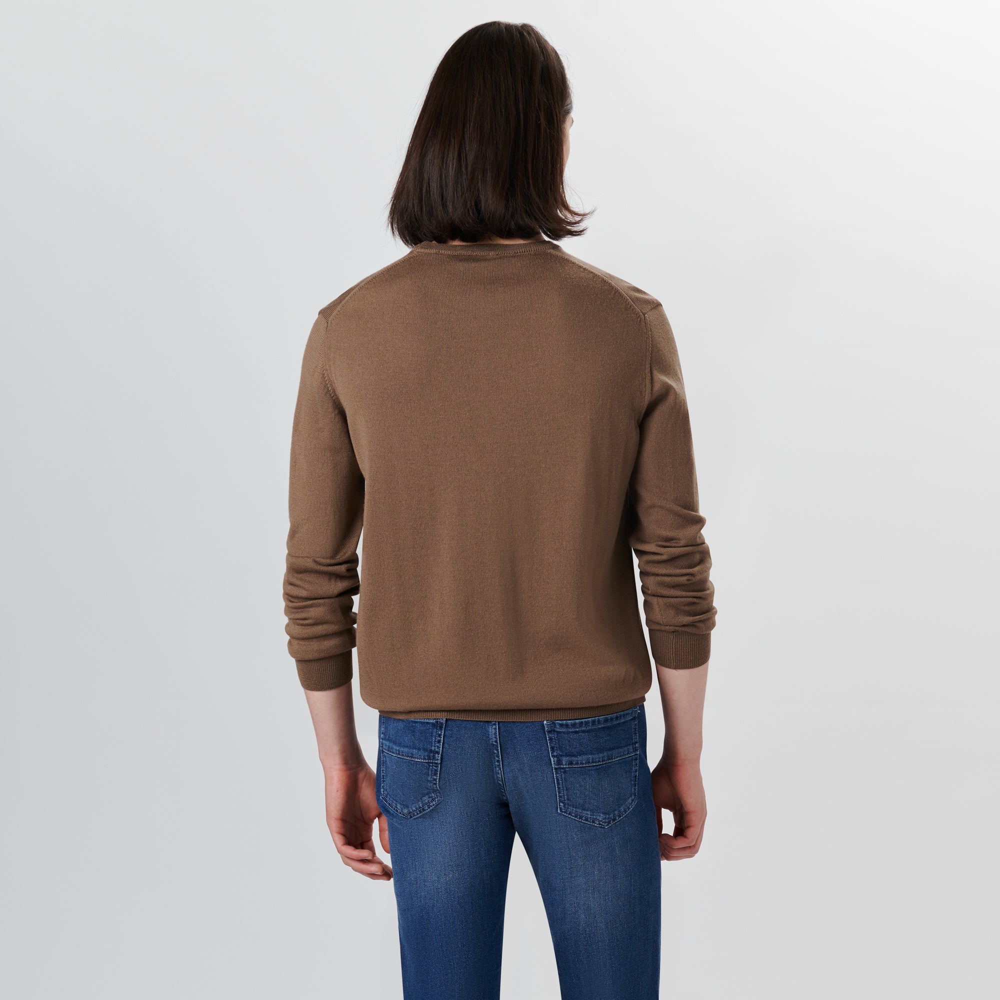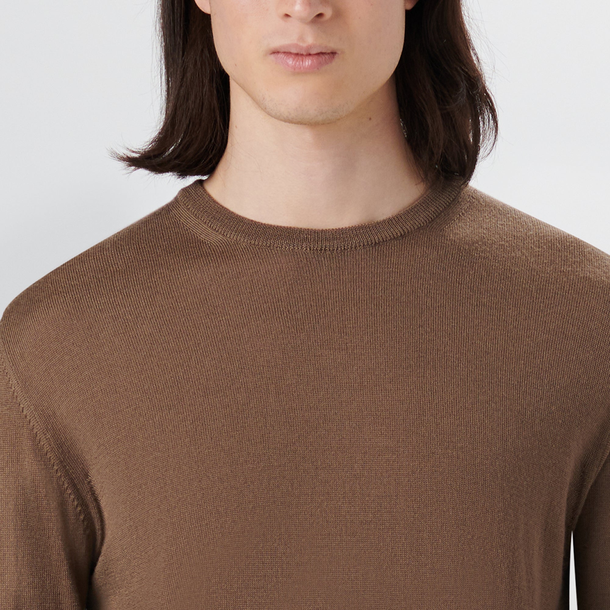 Crew neck sweater in solid 100% extra fine merino wool with Harmony 4.0 special finishing. This sweater is made with a high twist yarn that is breathable, hygroscopic, water repellent, machine washable and crease proof for long lasting performance wash after wash. Made in Italy.