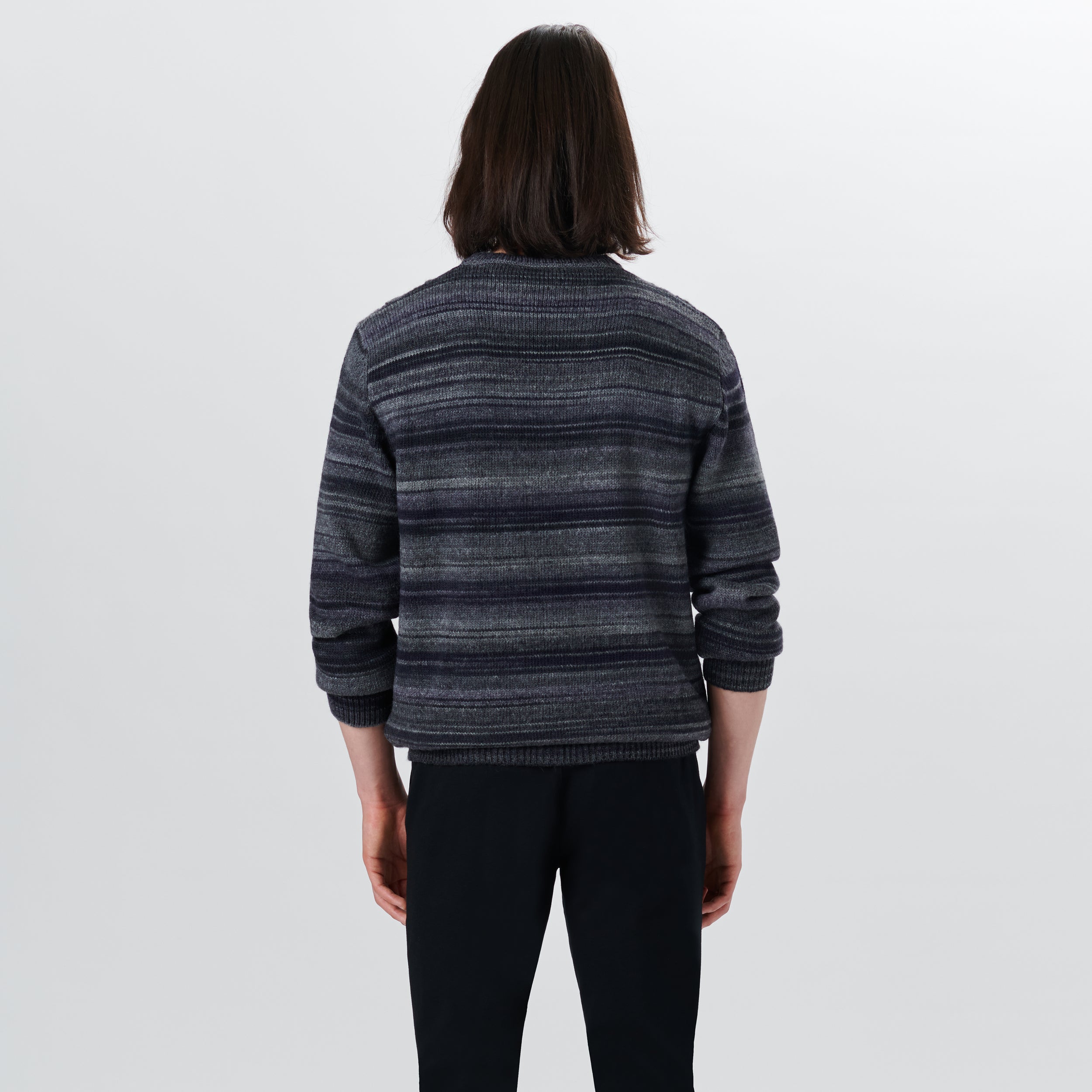 Crew Neck Striped Jacquard Sweater