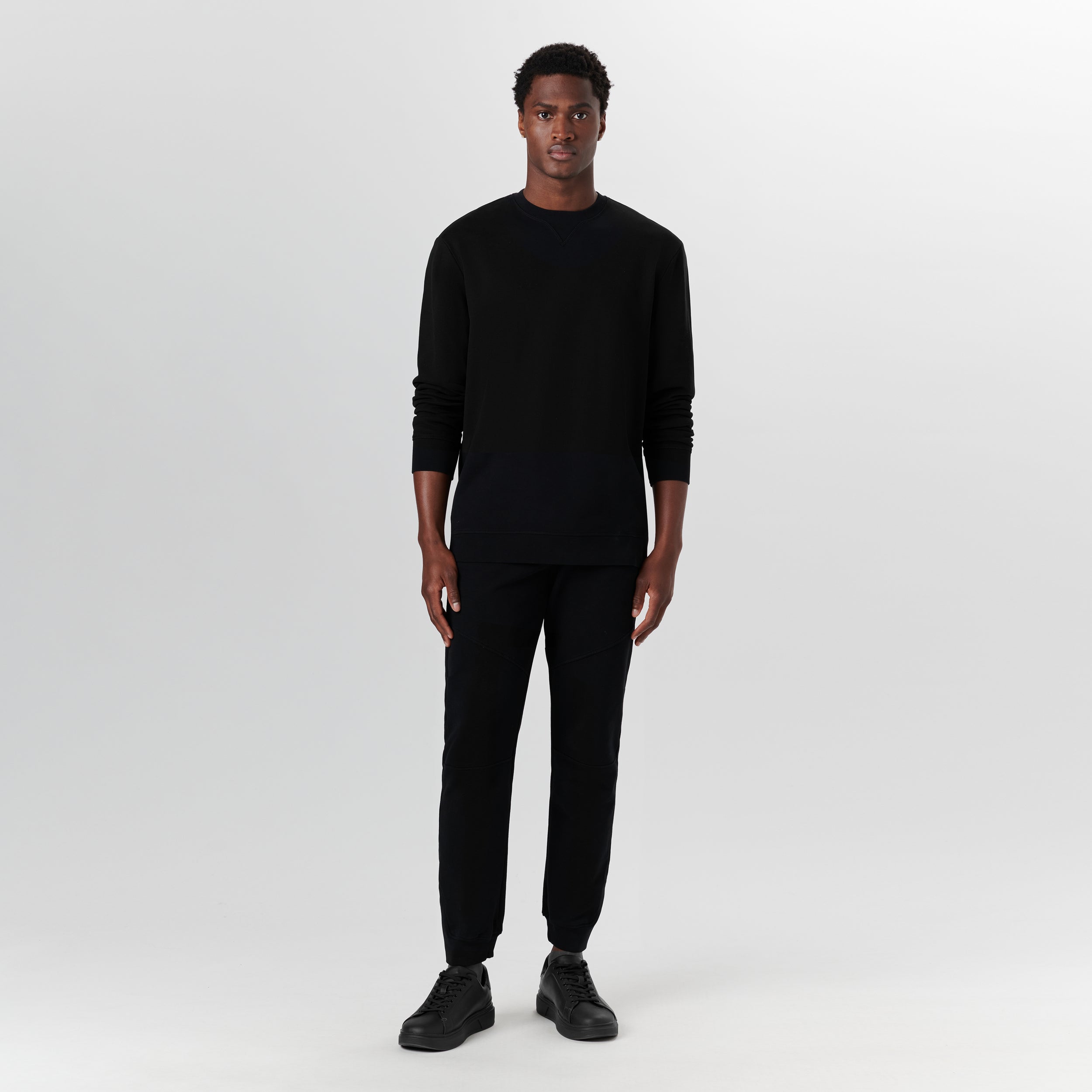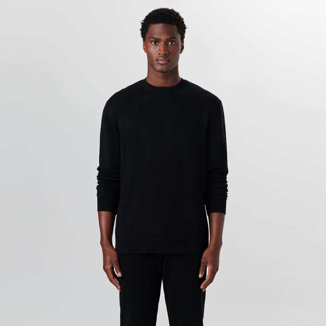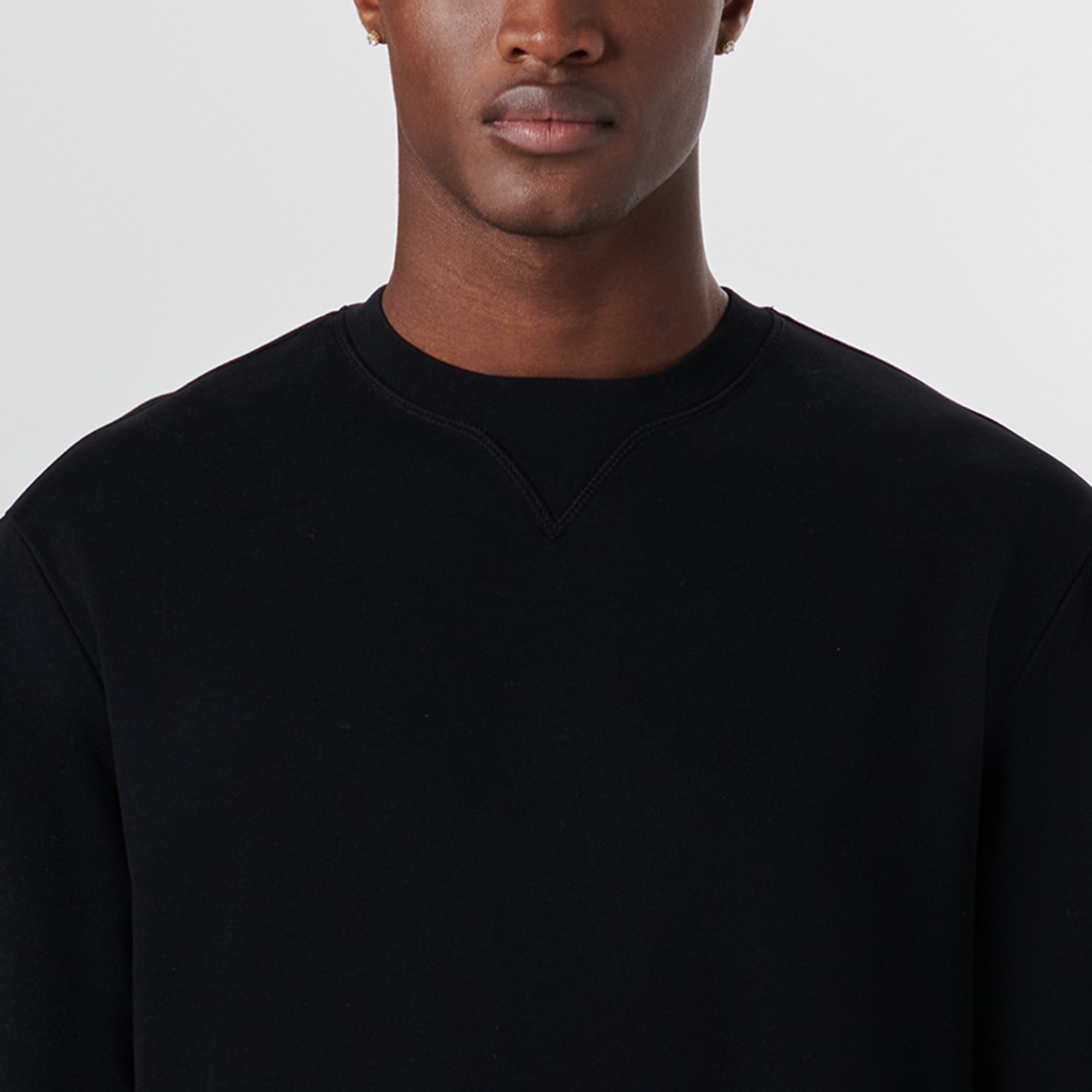 Long sleeve crew neck sweatshirt in 100% organic cotton with overlock stitch detail, and ribbed neck, cuffs and waistband. Made in Portugal.