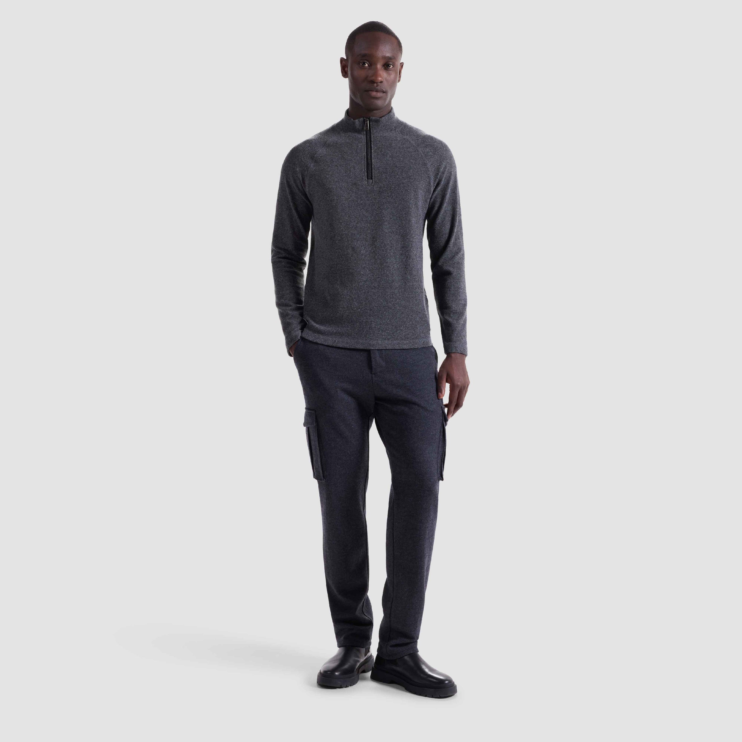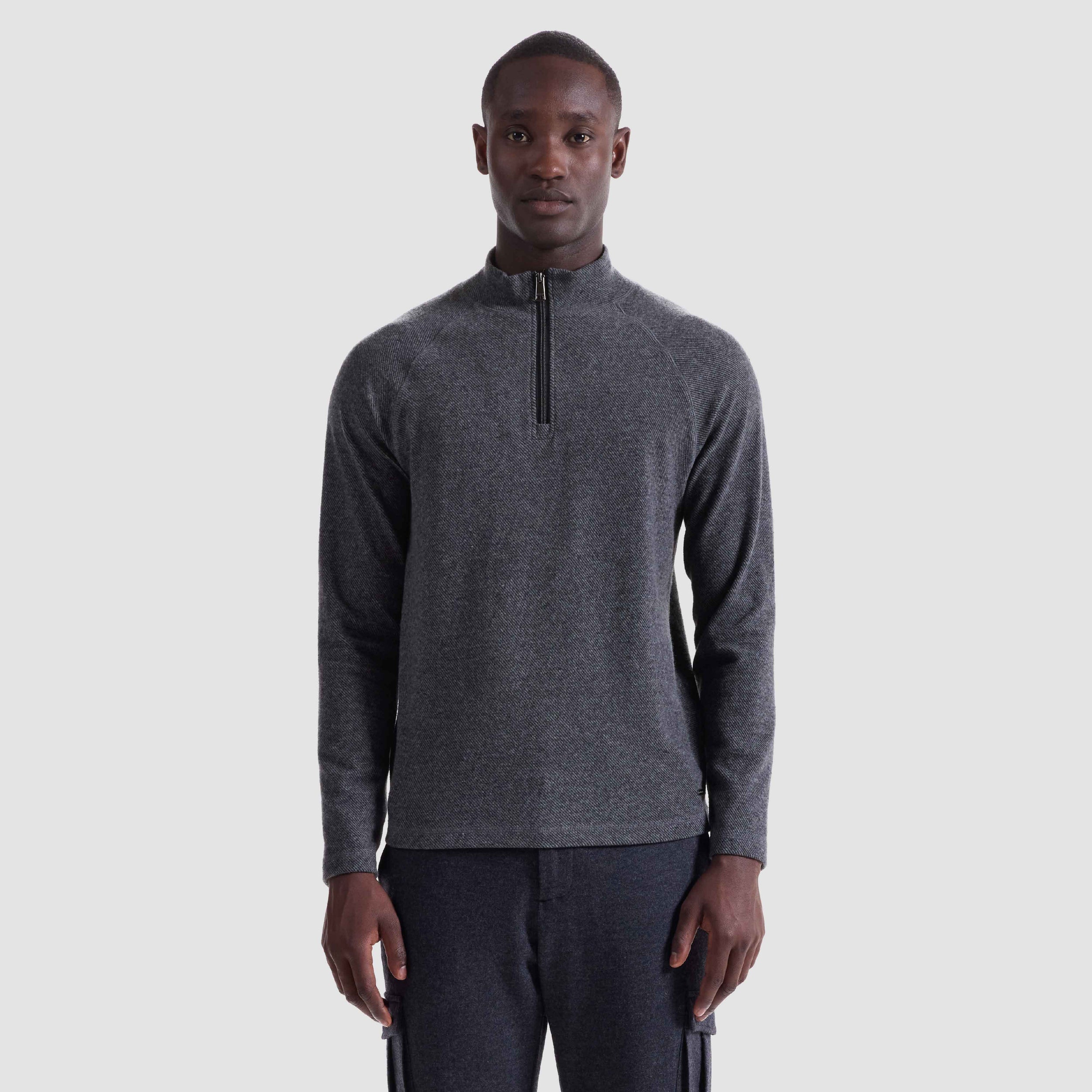Crafted from ultra-soft Comfort Stretch fabric, this quarter zip features raglan sleeves and a distinct diagonal pattern for a refined, textured look. Tonal overlock stitching enhances the design throughout, adding subtle structure and visual interest. Finished with a mock neck, straight hem, and straight cuffs for a clean, contemporary silhouette.