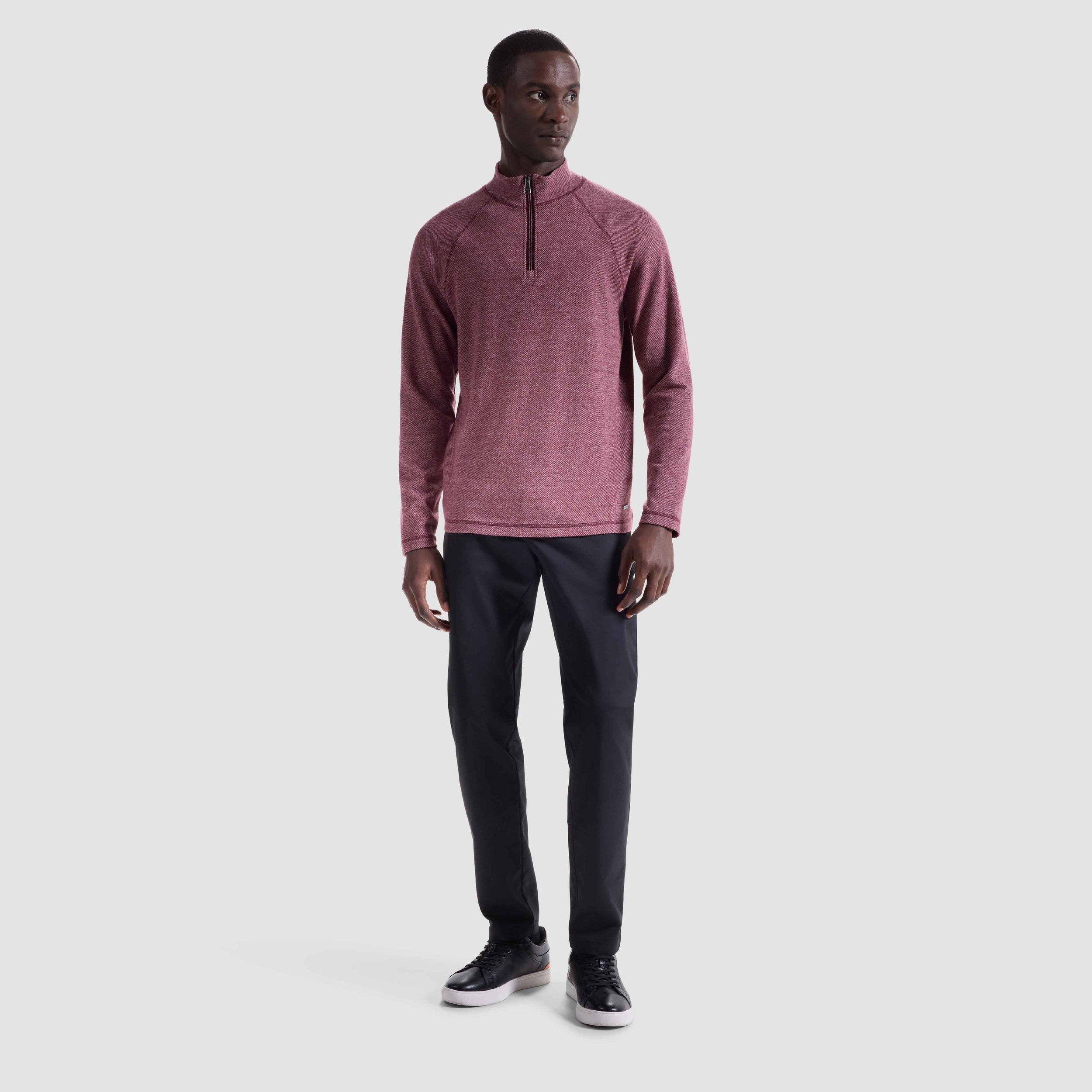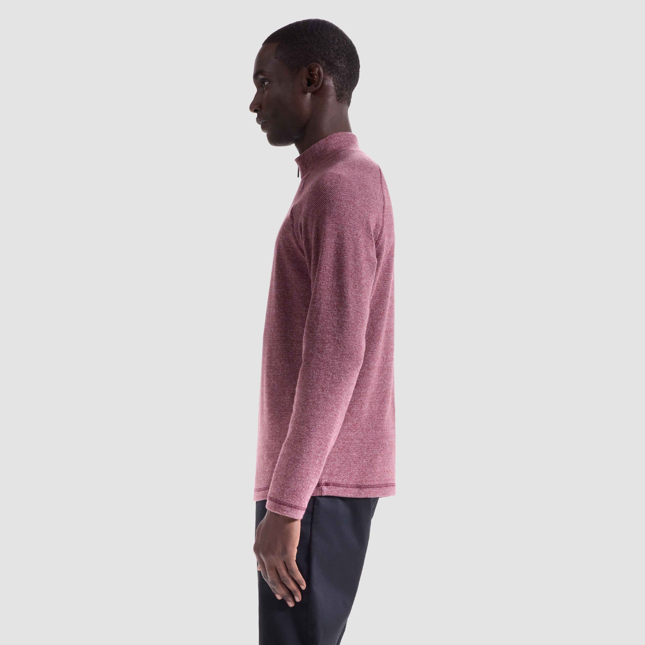 Crafted from ultra-soft Comfort Stretch fabric, this quarter zip features raglan sleeves and a distinct diagonal pattern for a refined, textured look. Tonal overlock stitching enhances the design throughout, adding subtle structure and visual interest. Finished with a mock neck, straight hem, and straight cuffs for a clean, contemporary silhouette.