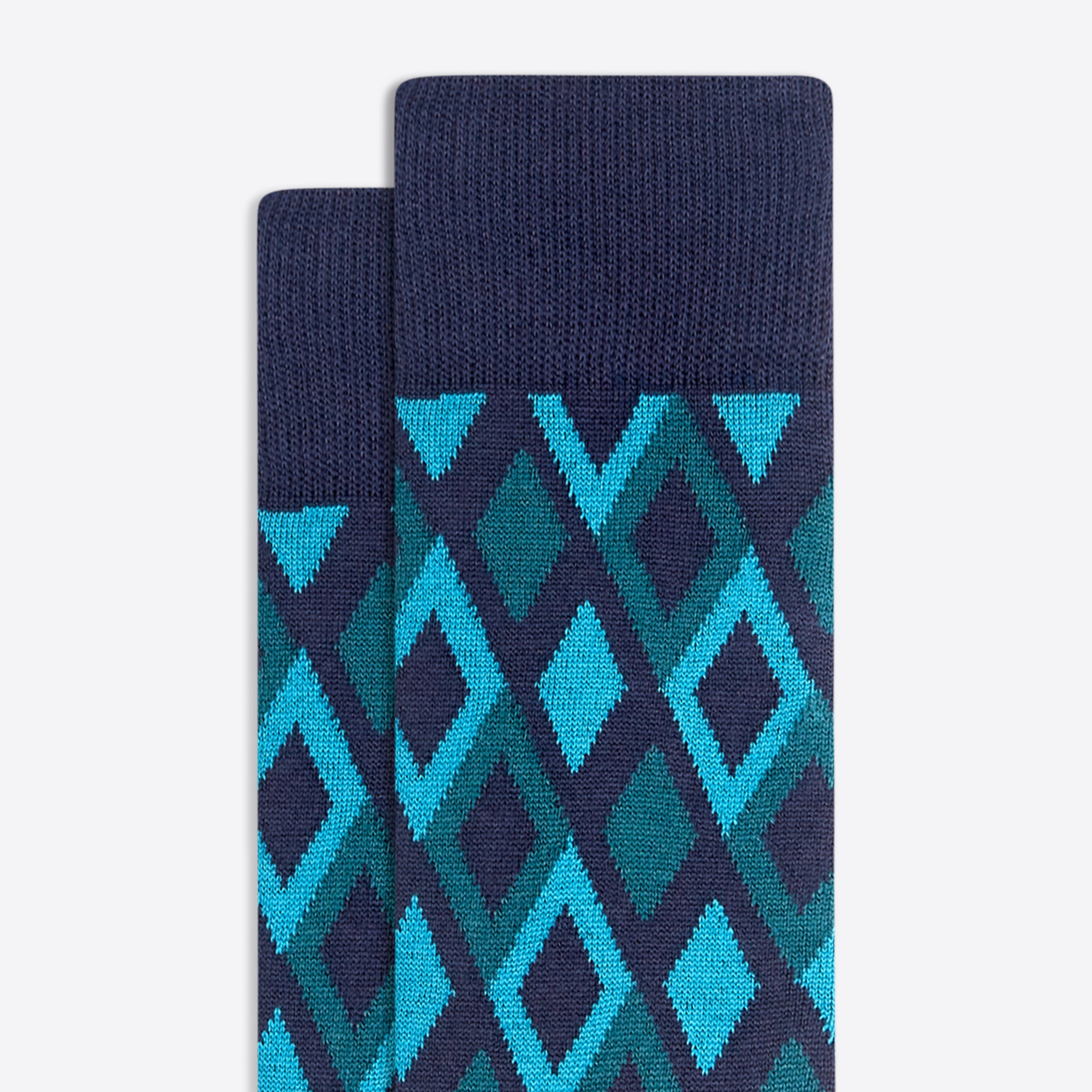 Diamond check mid-calf socks in fine cotton and cashmere blend with rib knit cuff band, hand linked toe and reinforced heel seams. Made in Italy.