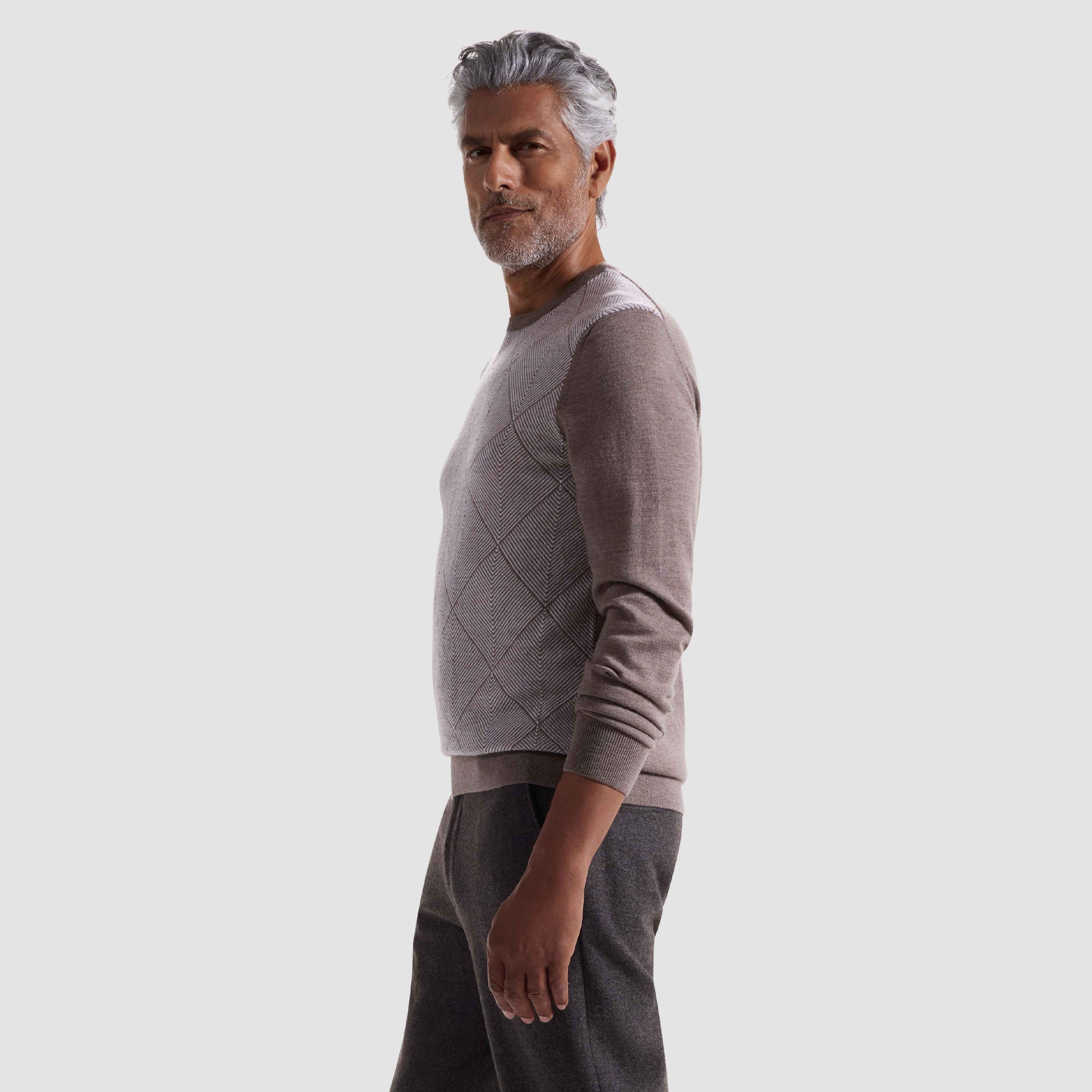 Crafted from 100% extrafine merino woo, this long sleeve crewneck sweater features a striking diamond pattern on the front for a textured, refined look. The neck, sleeves, back, and hem are crafted in a solid rib knit, providing a smooth contrast to the patterned front. A versatile piece that combines understated style with exceptional comfort.