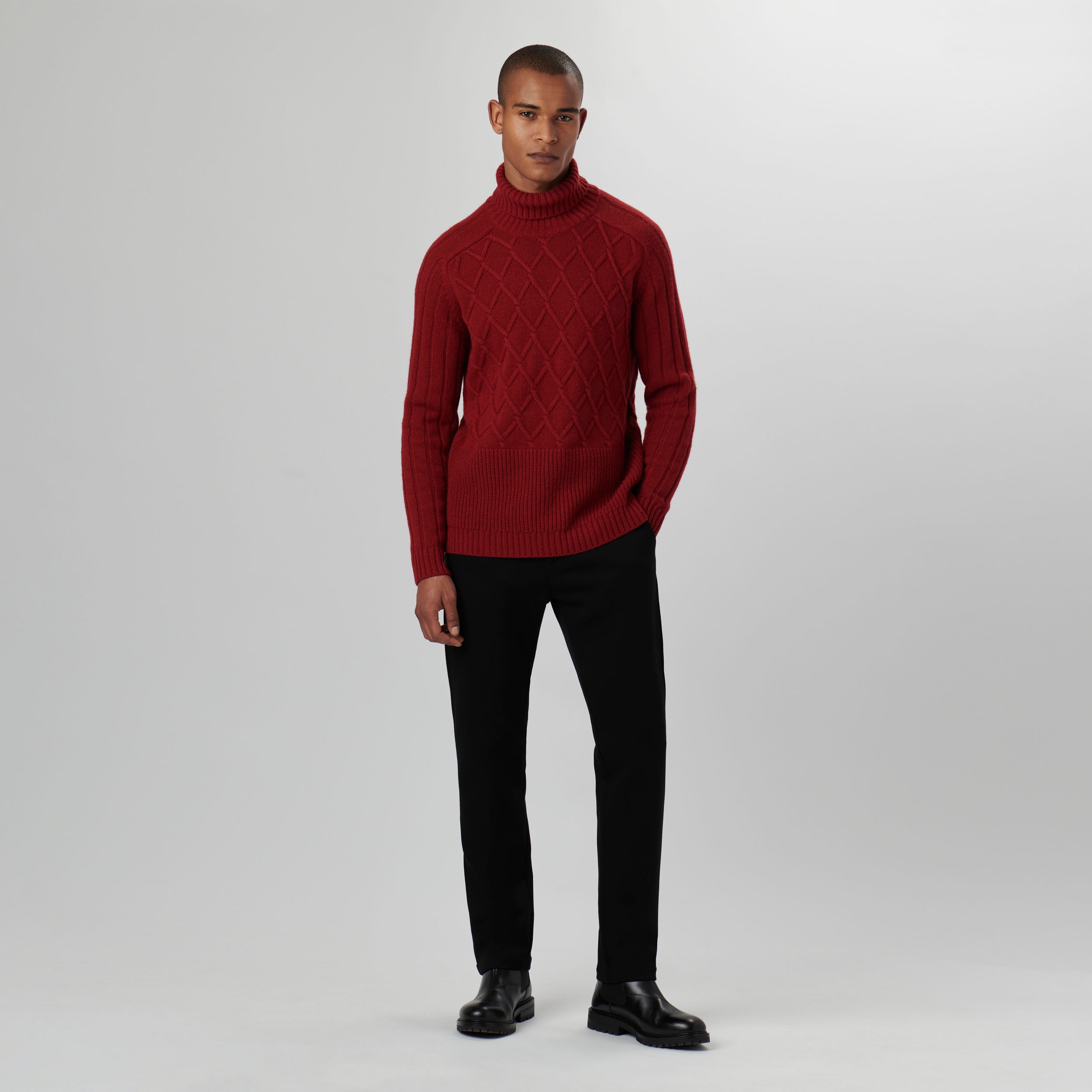 Diamond stitch turtleneck sweater in wool and cashmere blend. Made in Italy.