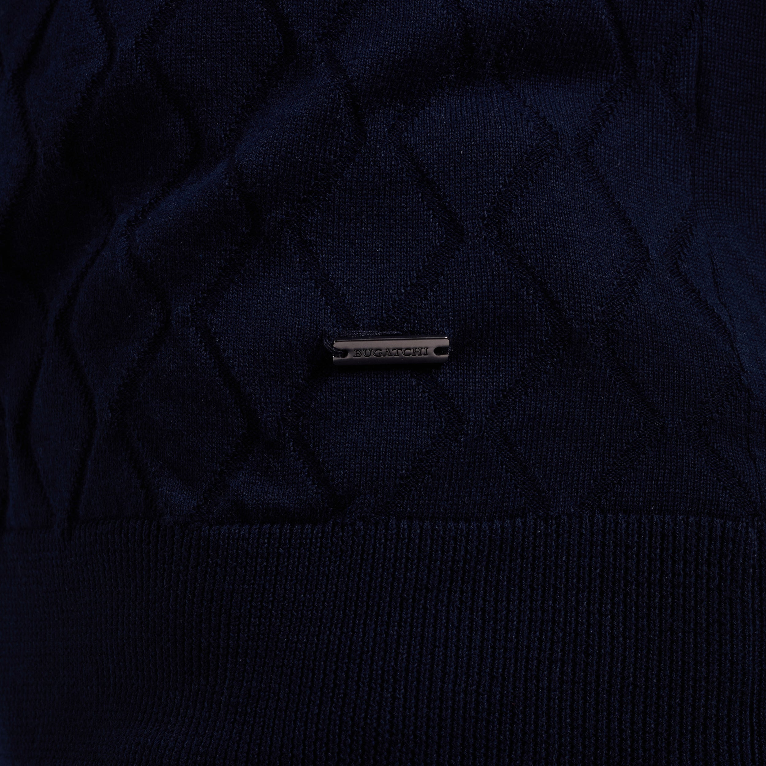 Made in Italy from 100% cotton, this short-sleeve polo sweater features an embossed wave-knit pattern across the front for subtle dimension and a refined textural look. The back and sleeves remain clean and plain, complemented by tonal rib trims. Finished with genuine mother-of-pearl buttons, it delivers an elevated take on a classic knit polo.