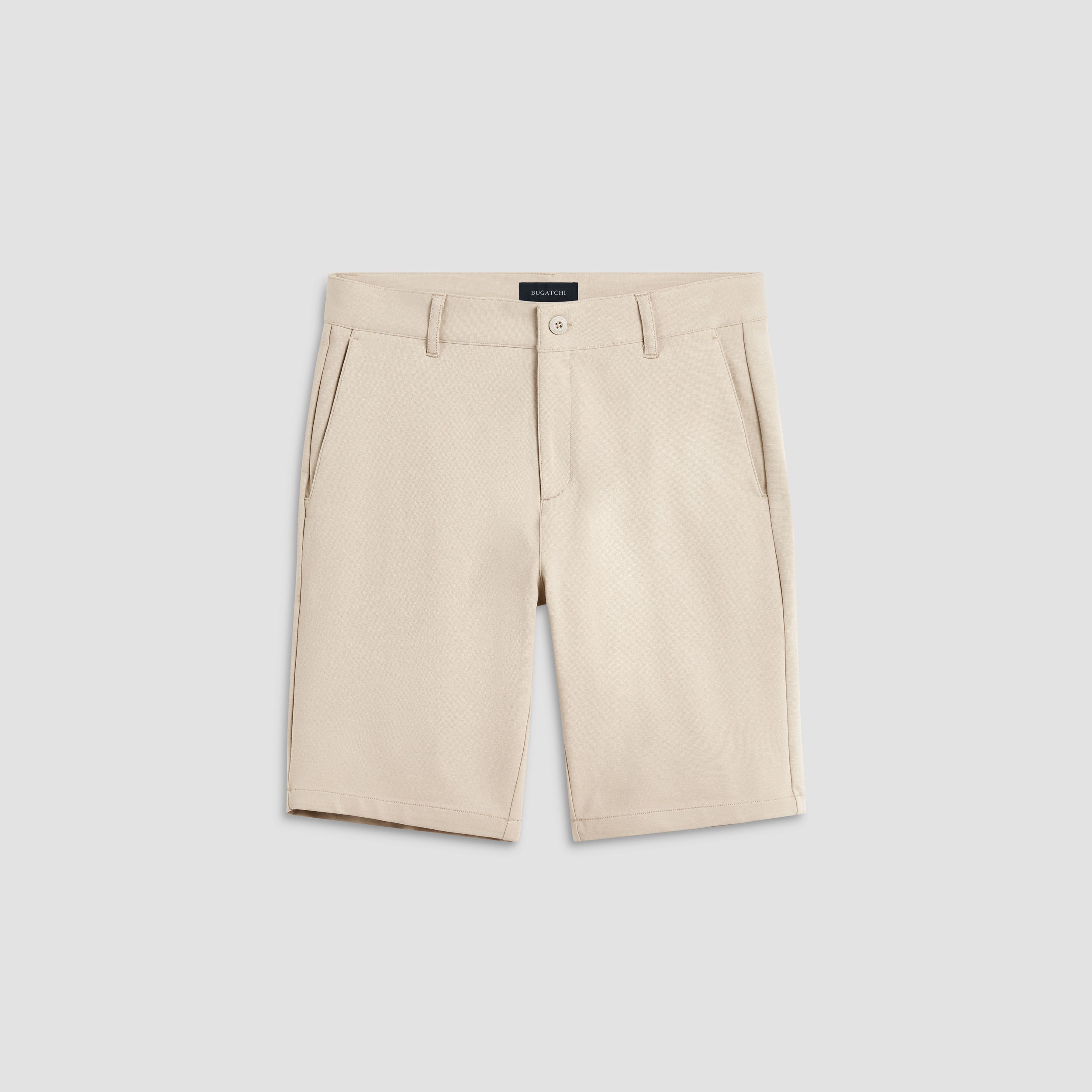 Crafted from easy-care, stretch performance knit fabric, these solid Bermuda shorts provide both comfort and style. Key features include a zipper and button fly, a tailored looped waistband, side pockets, and buttoned back pockets. Ideal for any casual outings, these shorts combine functionality with a sleek, modern look and are perfect for staying comfortable and stylish all day long.