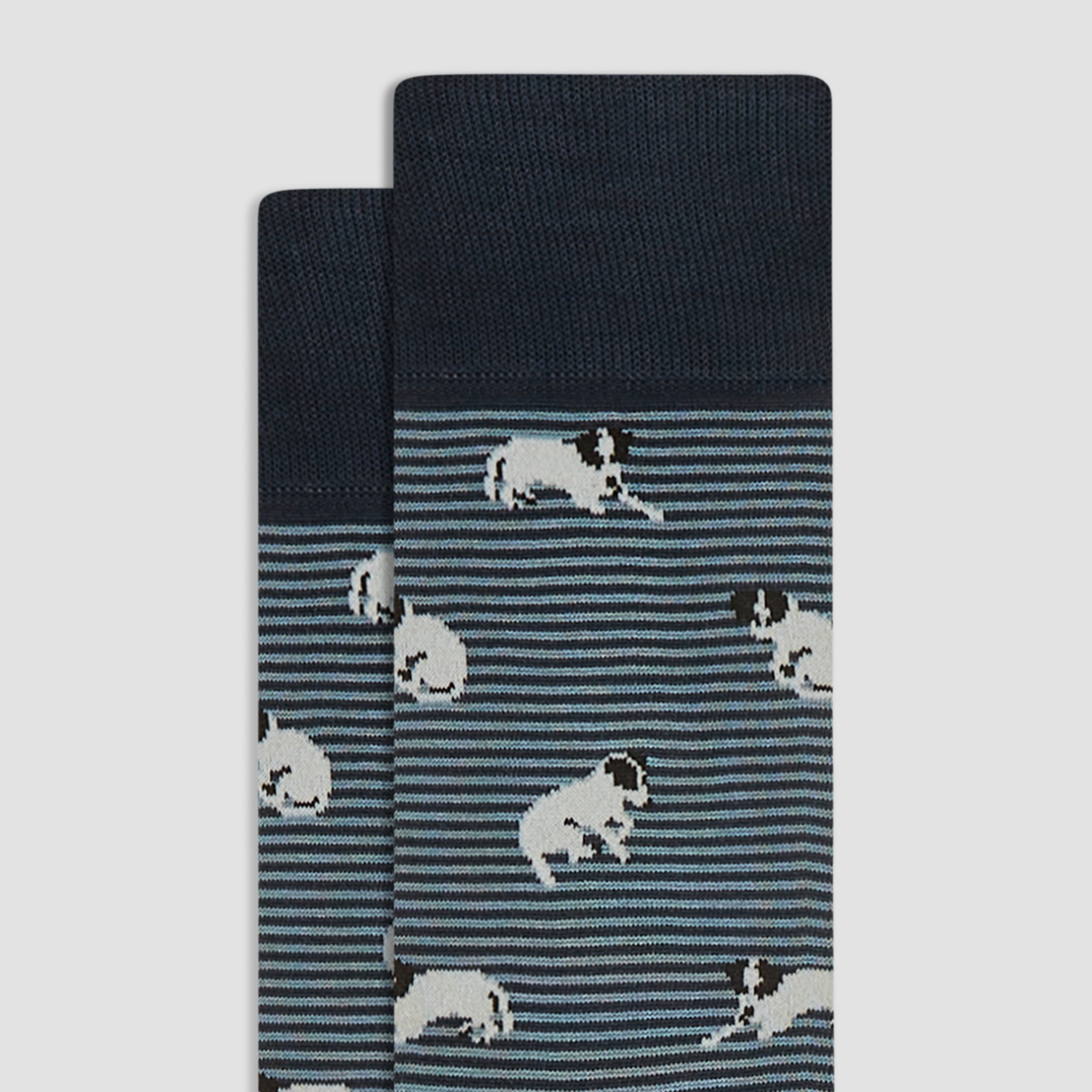 Fido mid-calf socks in fine gauge mercerized cotton blend with rib knit cuff band, hand linked toe and reinforced heel seams. Made in Italy.
