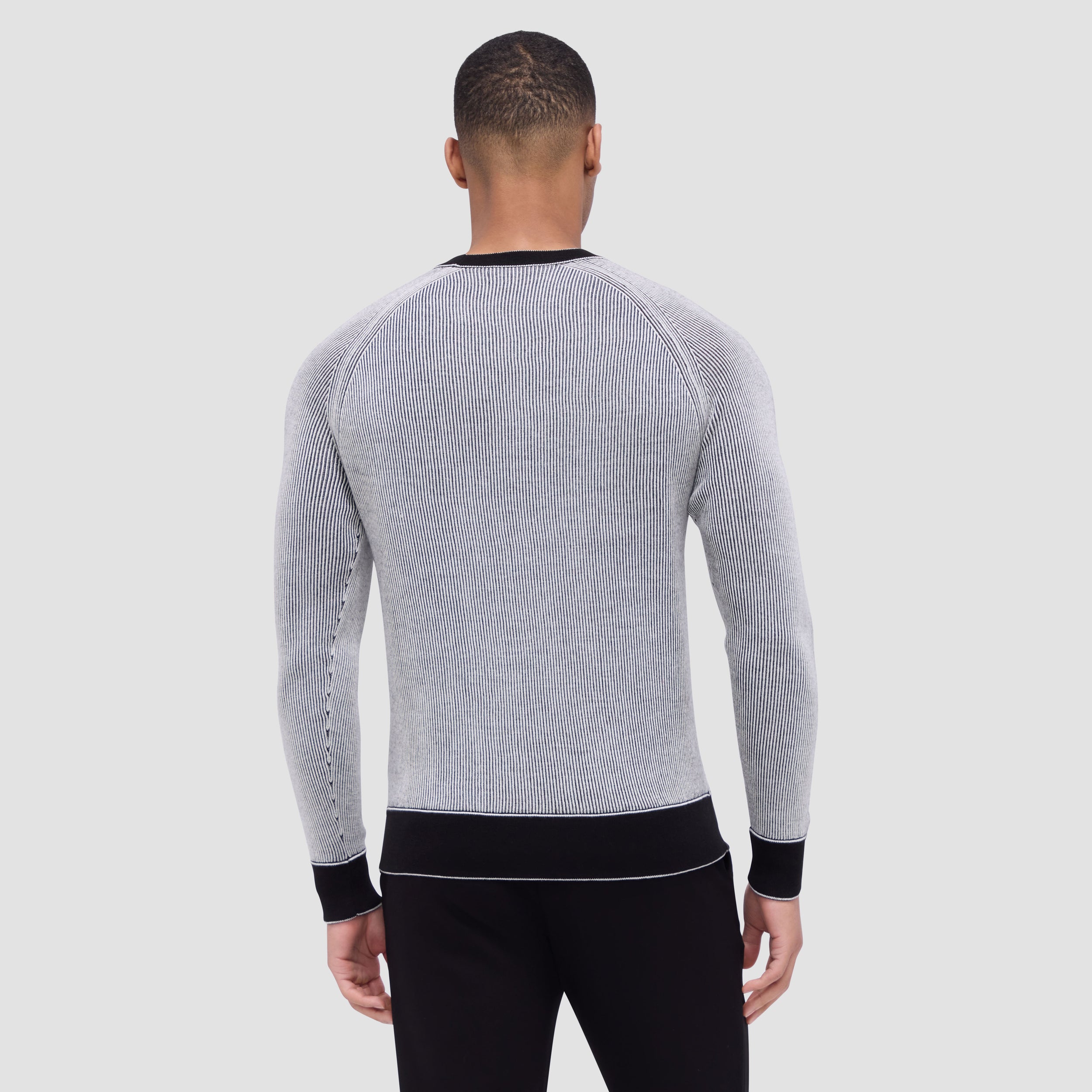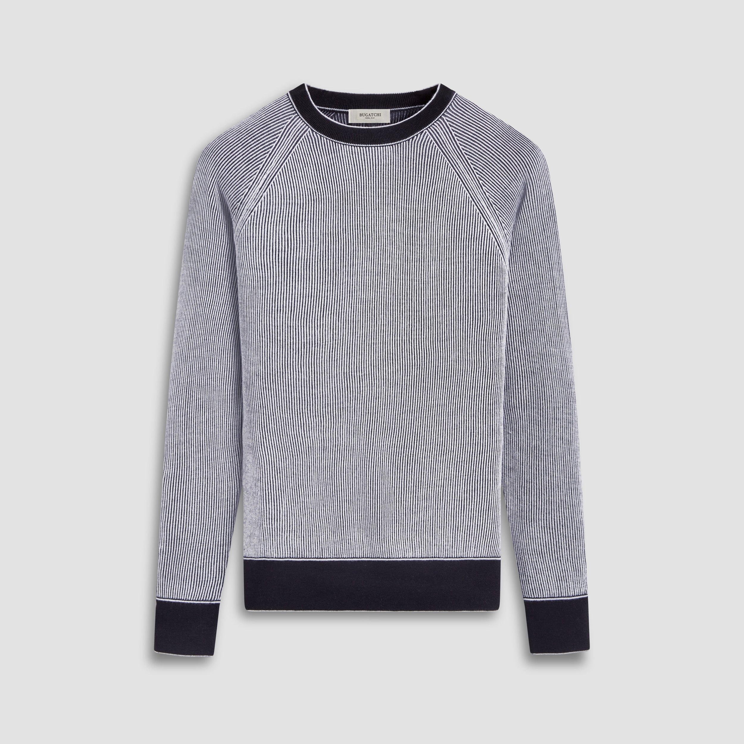Indulge in luxury, unparalleled softness and warmth with our premium crew neck sweater in extra fine Merino wool and silk. The fisherman rib jacquard stitch adds depth and texture while contrasting neckline, cuffs, and hem with subtle double tipping detail give a refined modern twist to this classic silhouette. Versatile and timeless, perfect for any occasion, dressed up or casual.