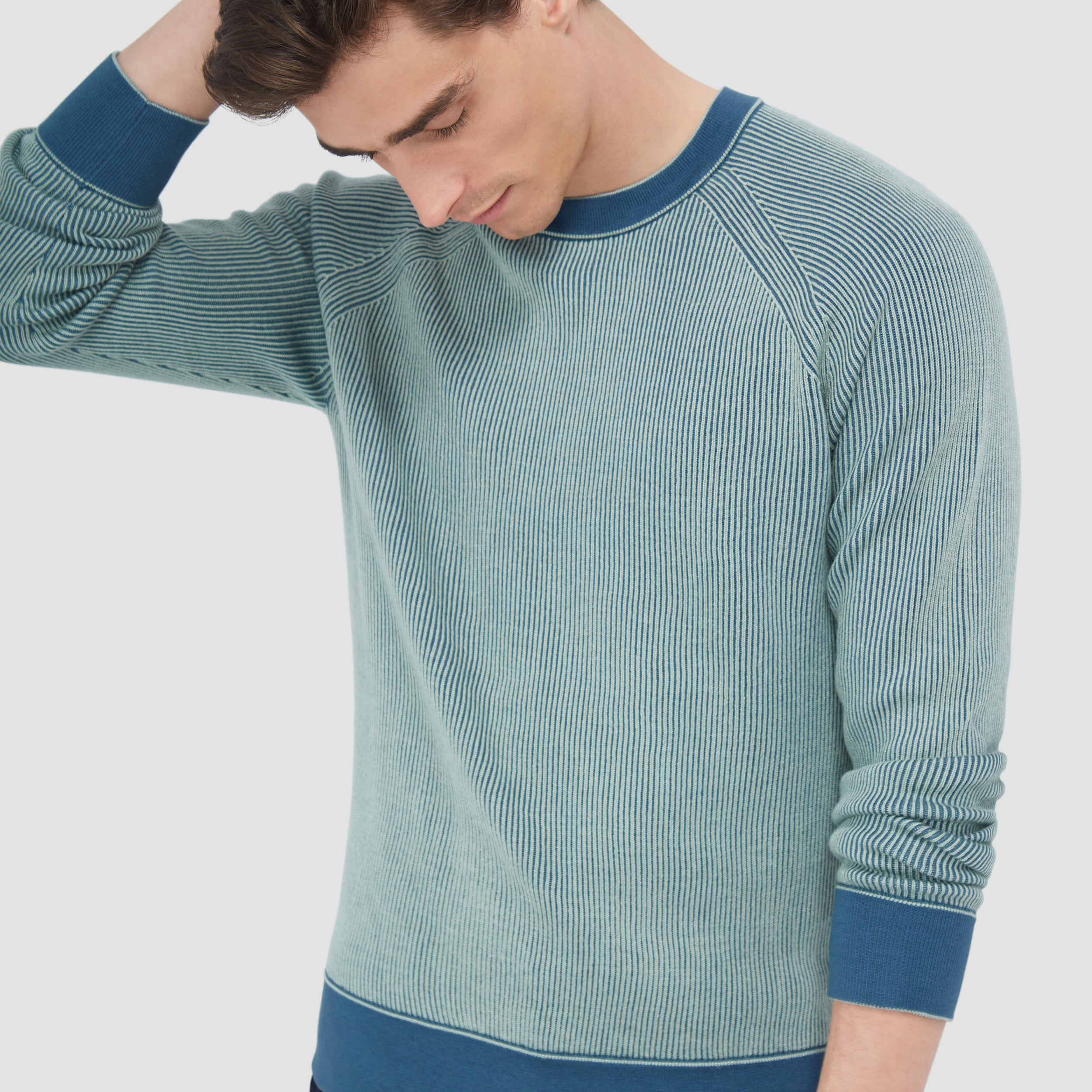 Indulge in luxury, unparalleled softness and warmth with our premium crew neck sweater in extra fine Merino wool and silk. The fisherman rib jacquard stitch adds depth and texture while contrasting neckline, cuffs, and hem with subtle double tipping detail give a refined modern twist to this classic silhouette. Versatile and timeless, perfect for any occasion, dressed up or casual.