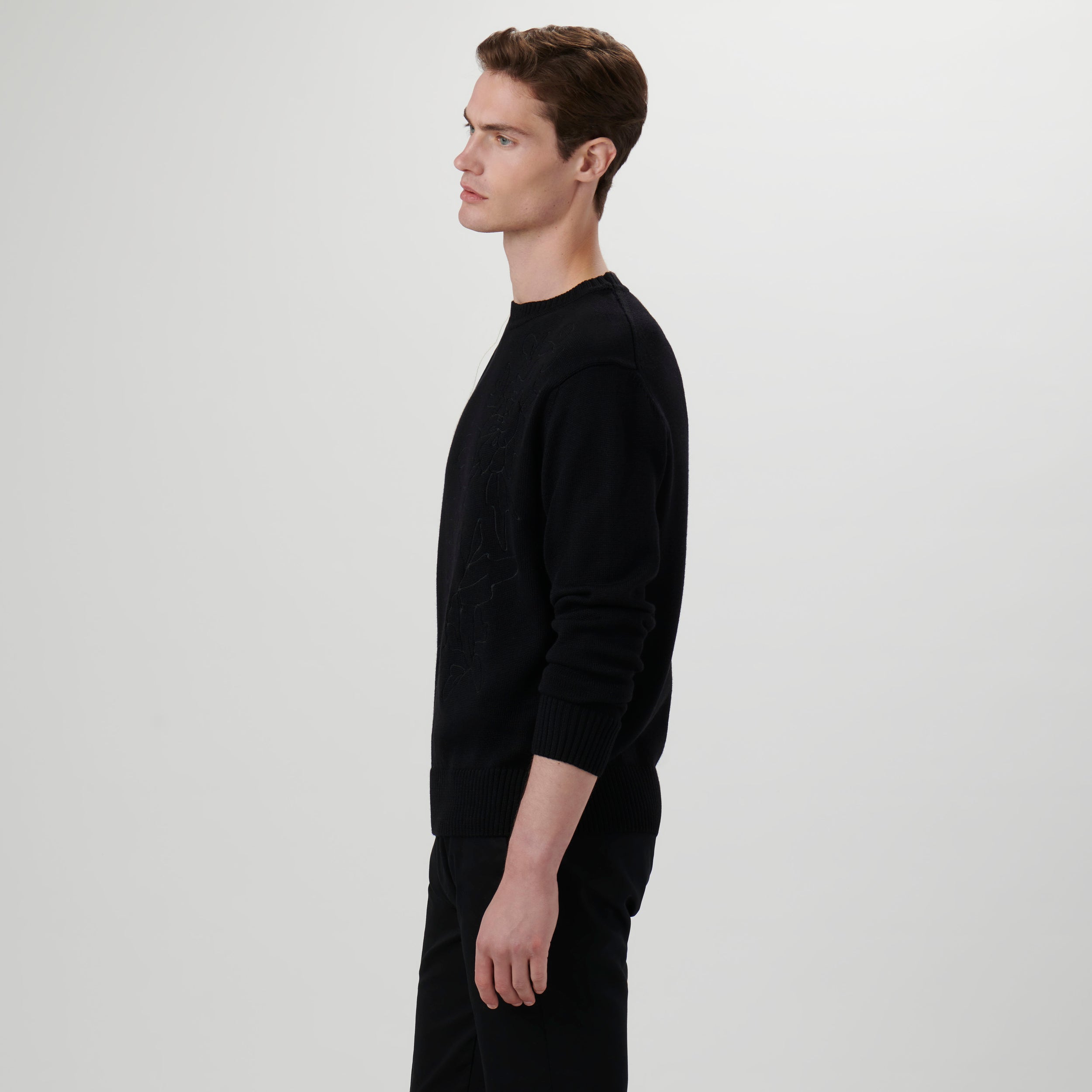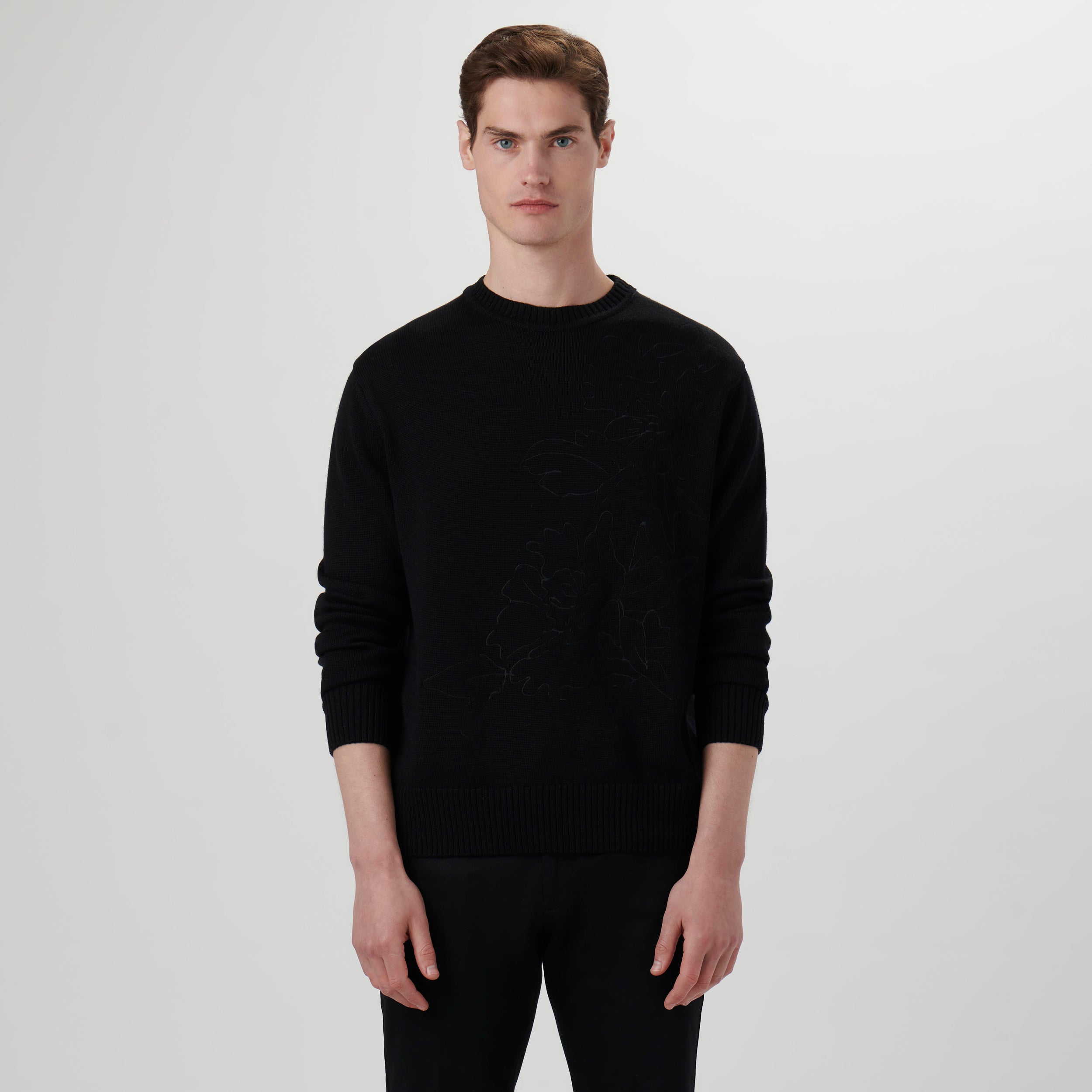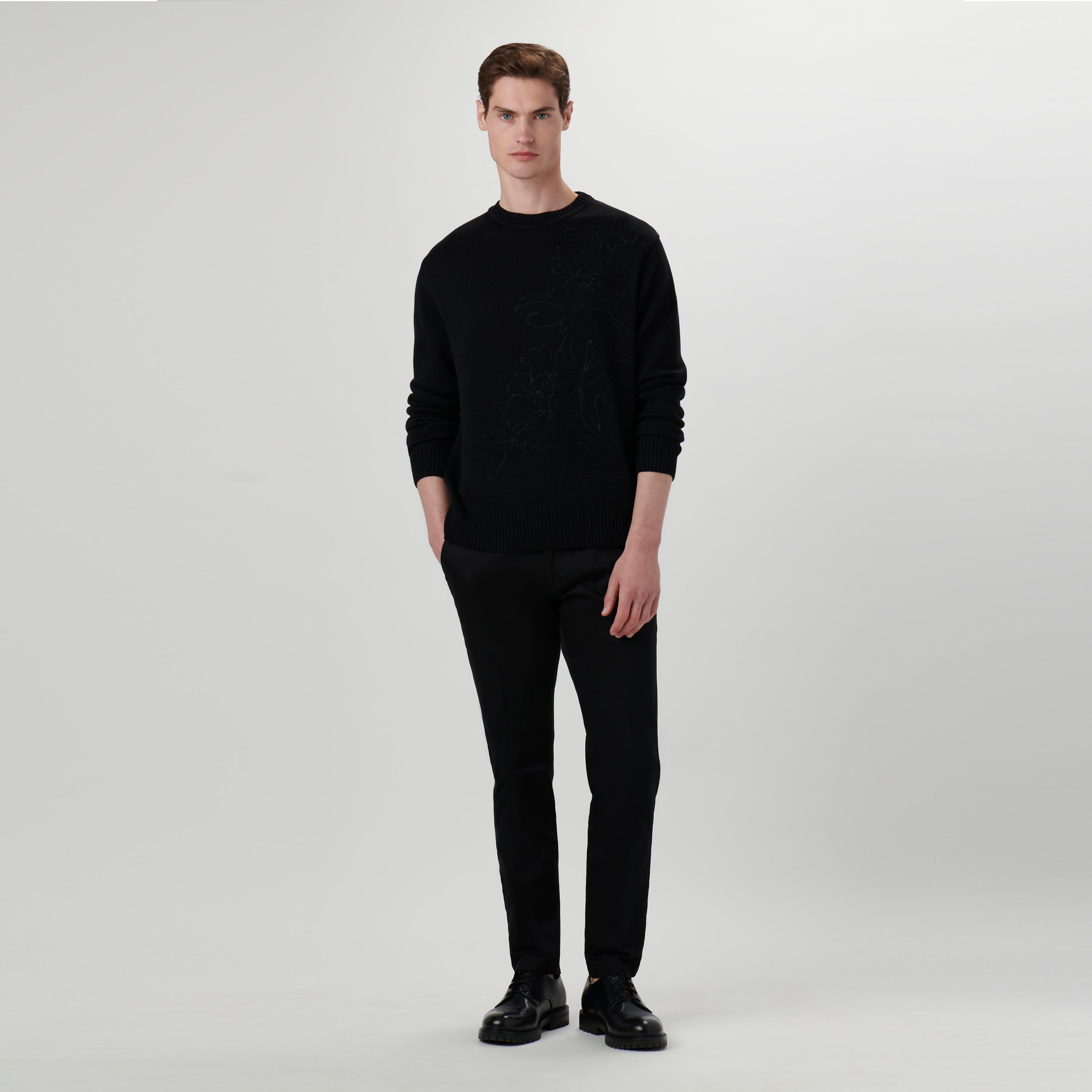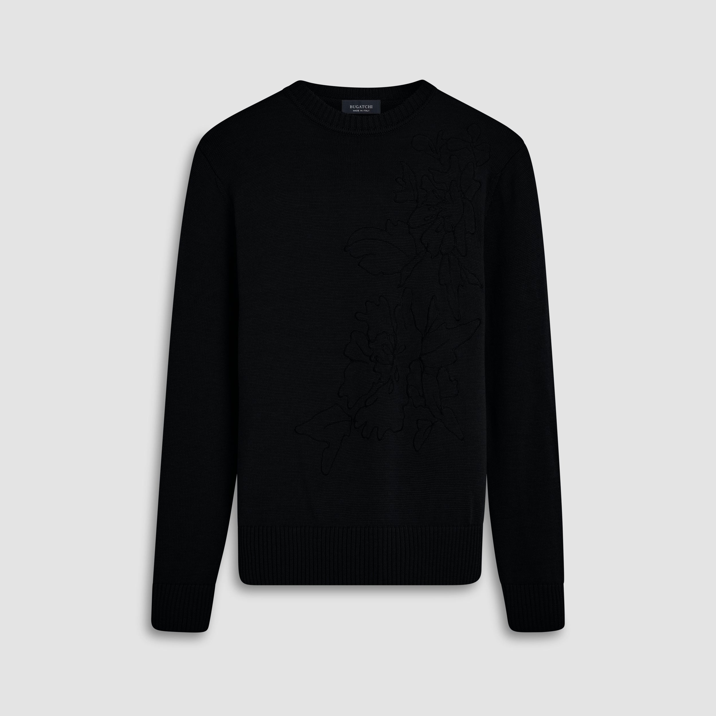 Floral embroidered crew neck sweater in 100% merino wool. Made in Italy.
