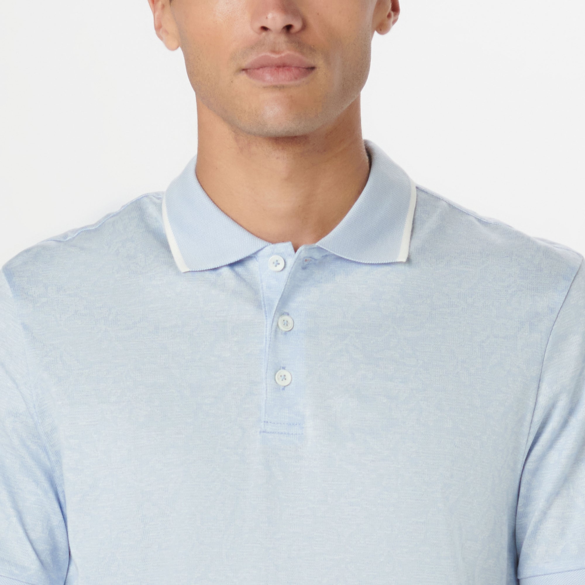 This short-sleeved polo shirt in Soft Touch cotton blend features a floral jacquard pattern, a three button placket and a touch of contrast with tipping detail on the two-tone bird's eye collar and armbands. Versatile and refined, this polo shirt balances casual and elegant and is perfect for any occasion.